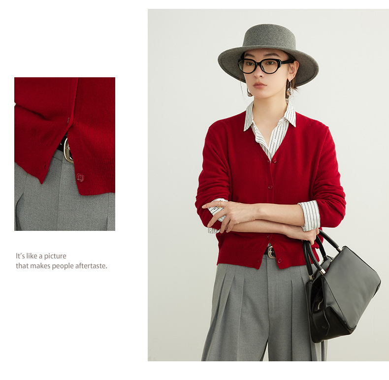 심플한 100% 울 가디건 V넥 니트 자켓 여성복 26 신상 슬림핏 스웨터 아우터 다용도 초봄 상의스토어 가기