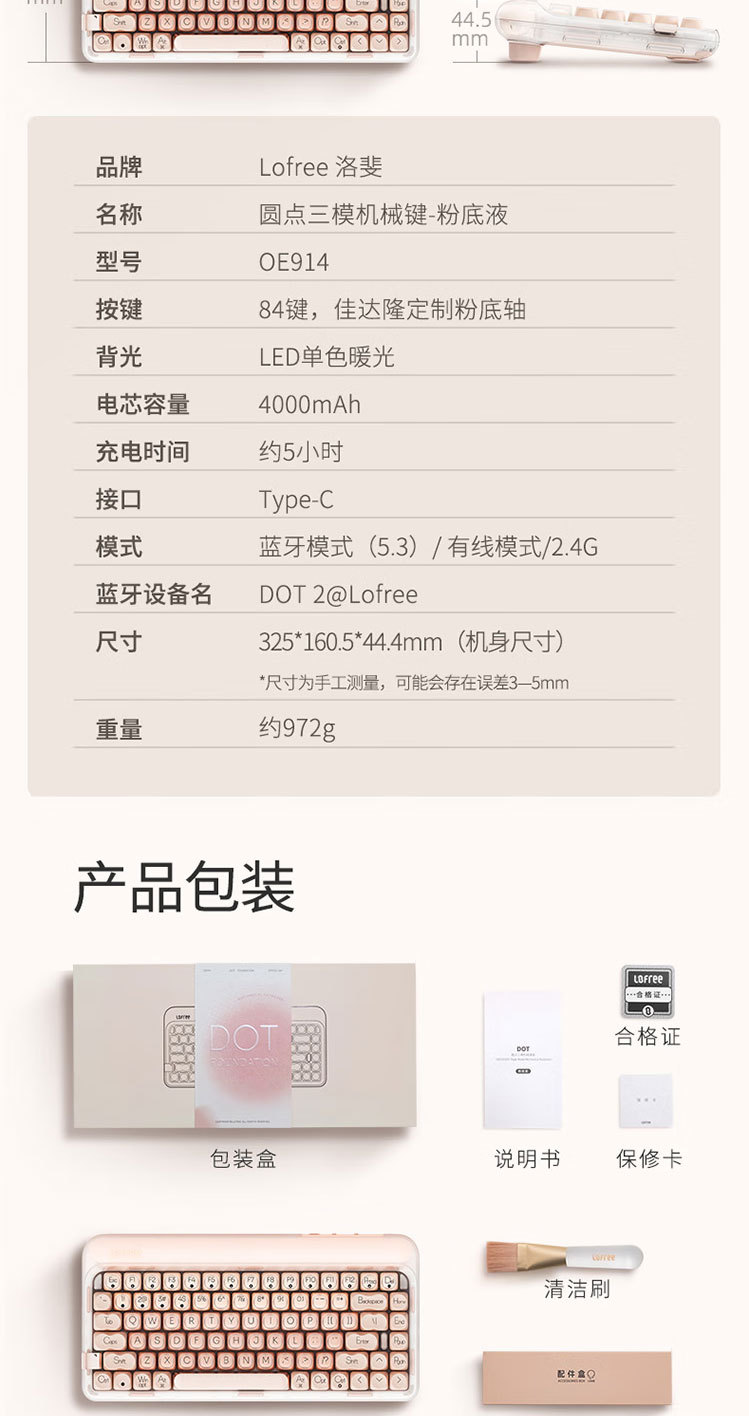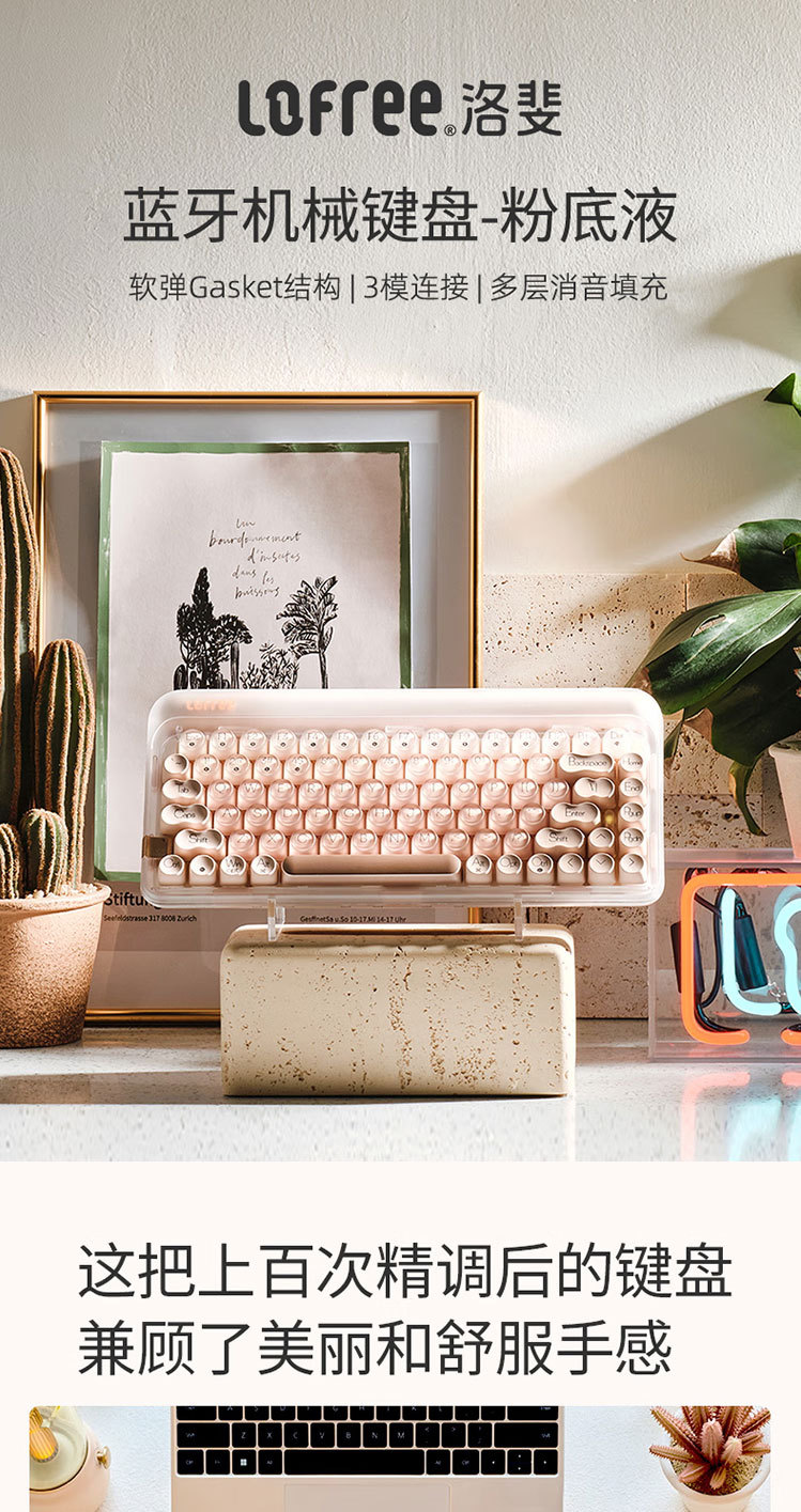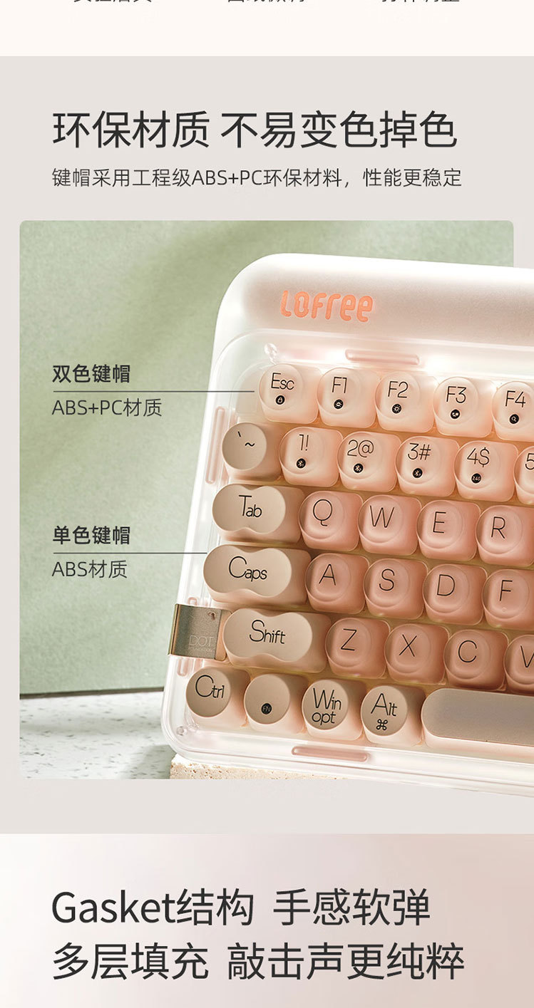 LOFREE 리퀴드 파운데이션 투명 키캡 키보드 블루투스 3모드 핫스왑 가능 소녀 사무실 컴퓨터 84키