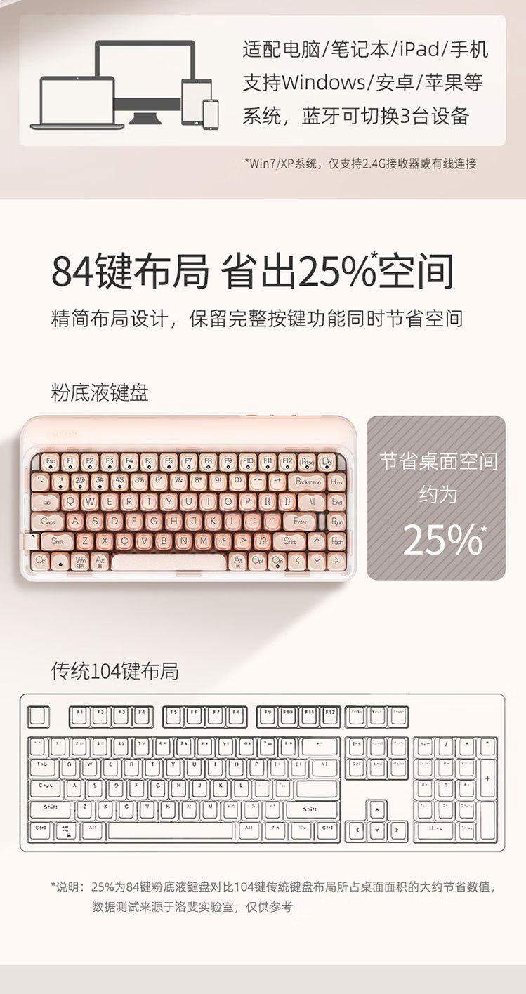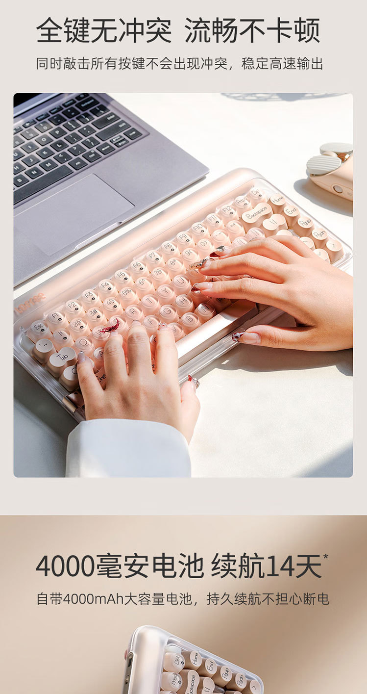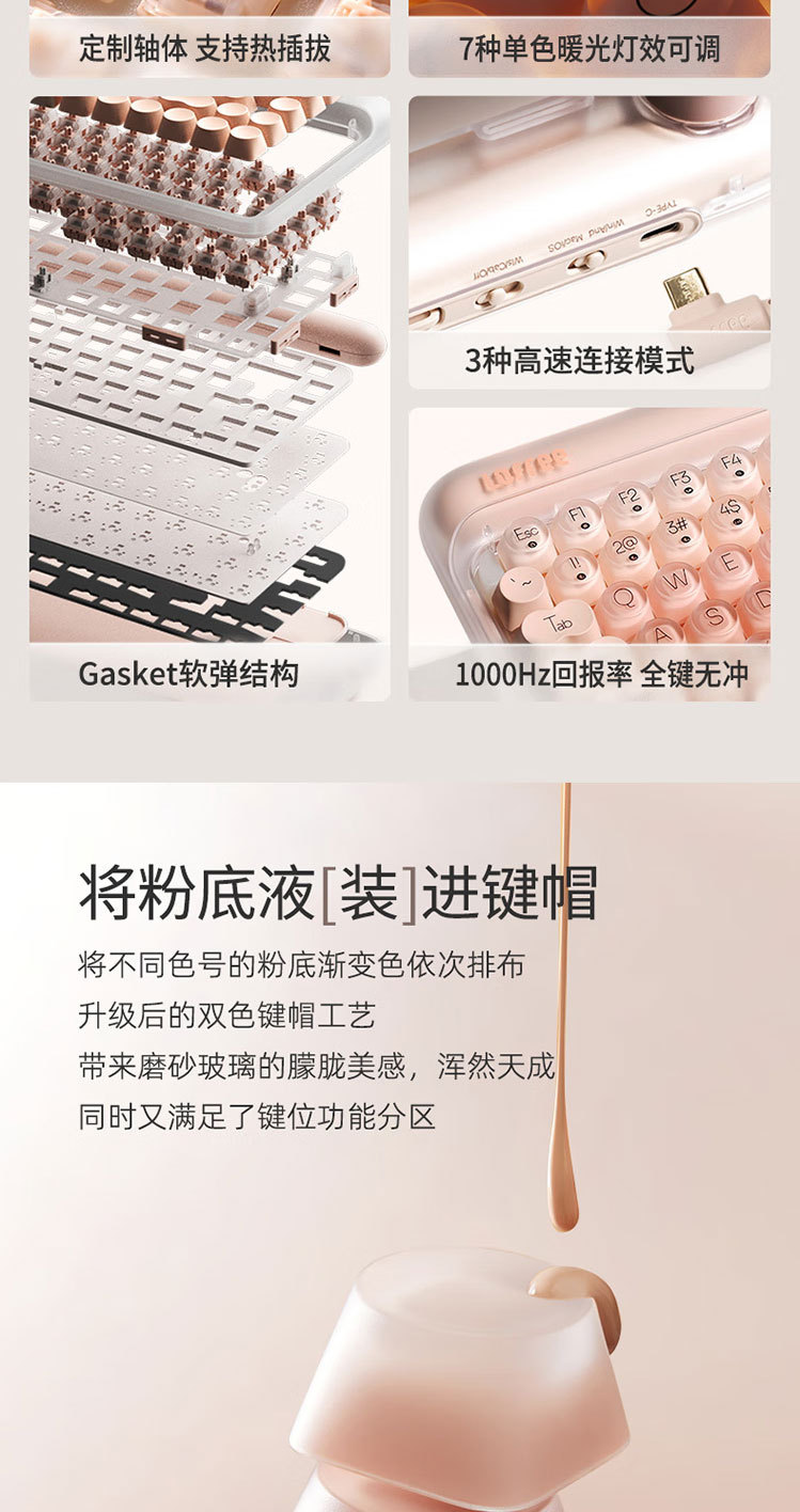 LOFREE 리퀴드 파운데이션 투명 키캡 키보드 블루투스 3모드 핫스왑 가능 소녀 사무실 컴퓨터 84키