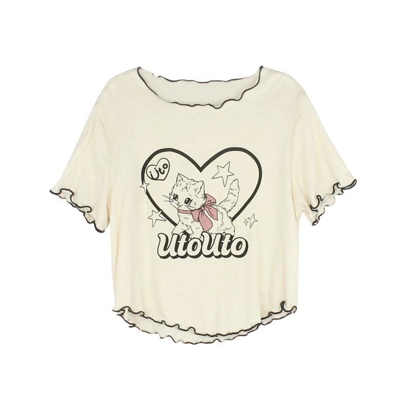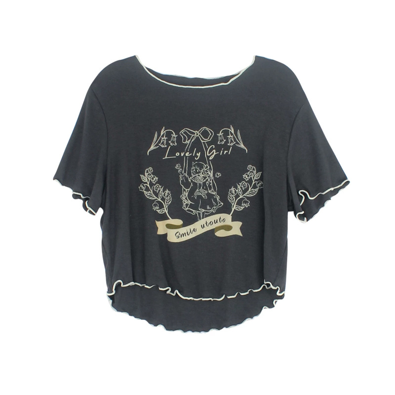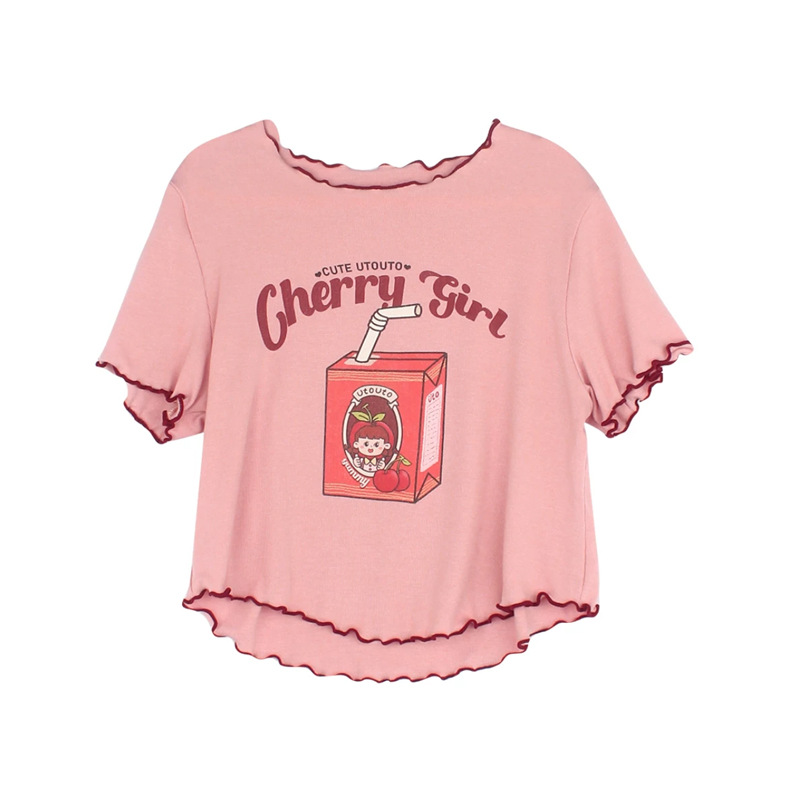 소녀의 시원한 얇은 프린트 티셔츠 여름 새로운 한국 스타일 소녀의 짧은 귀여운 반팔 베이비 스타일상의
