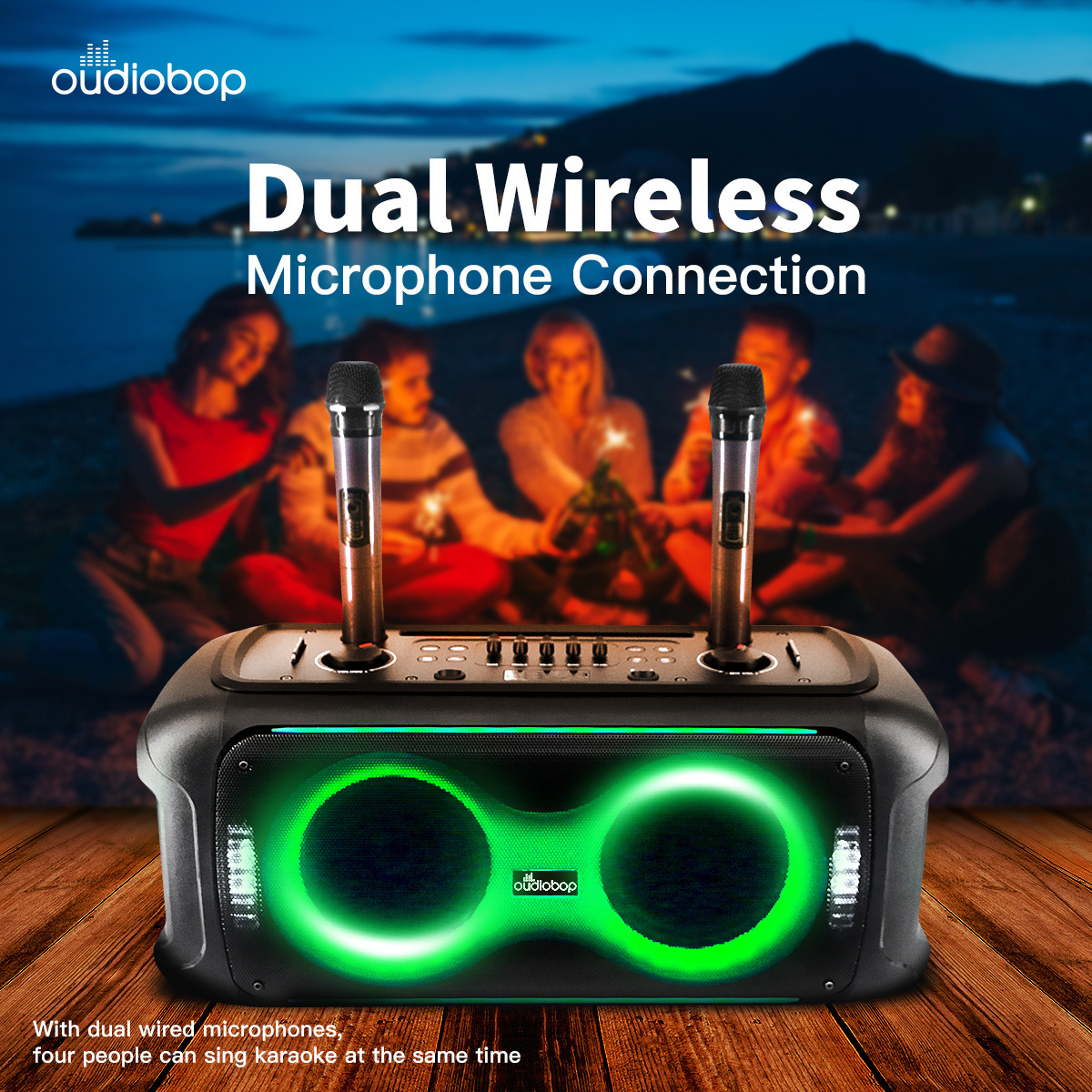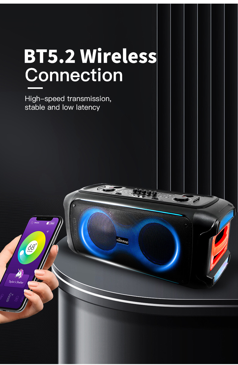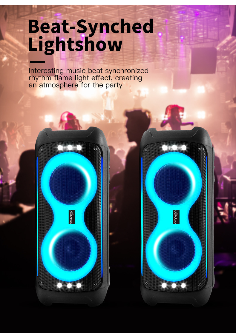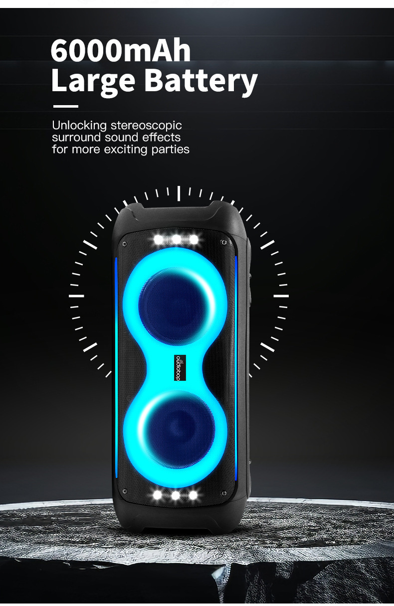BK-2366 더블 6.5 인치 무선 블루투스 스피커 다채로운 조명 노래방 야외 가족 휴대용 서브 우퍼 오디오
