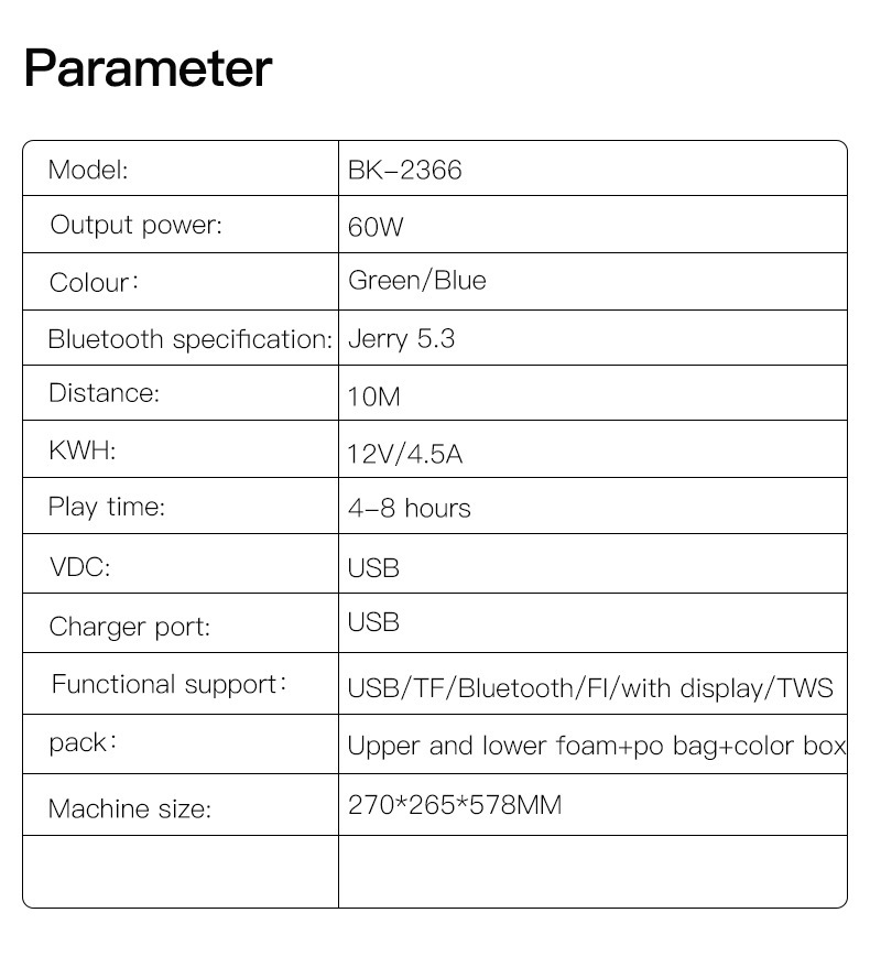 功能:USB,TF卡,带蓝牙,带显示,FM,TWS