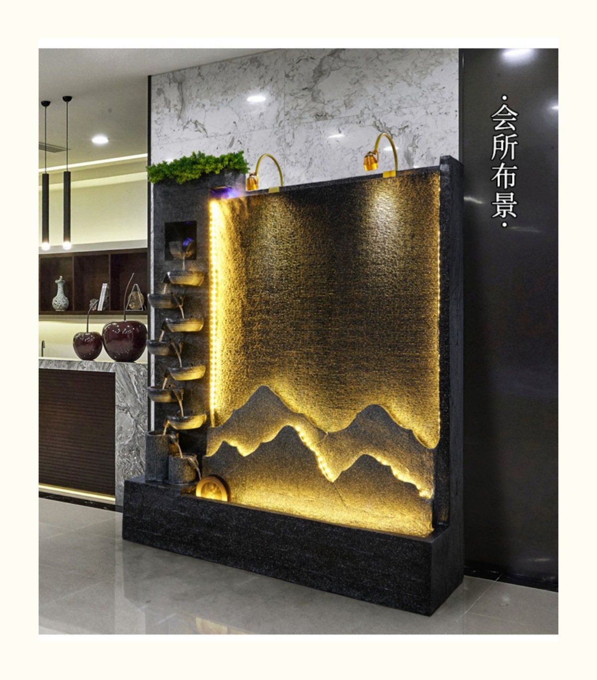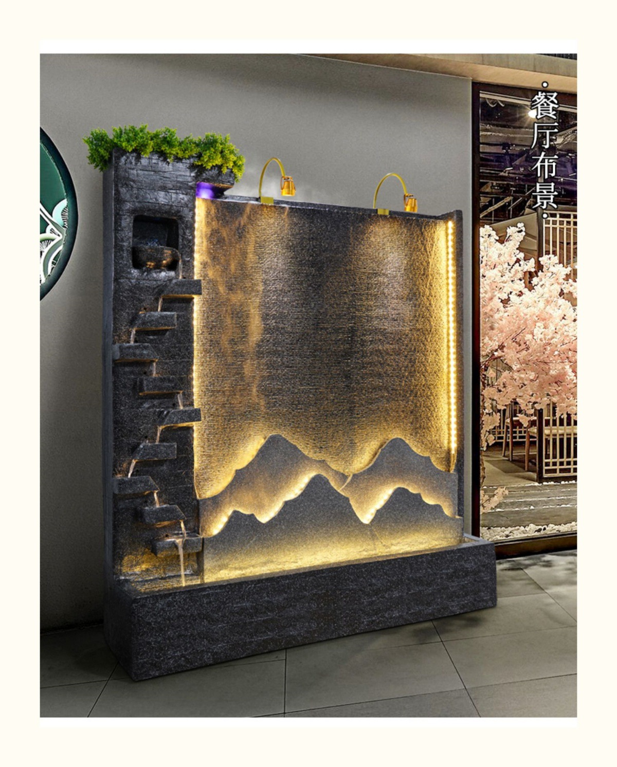 물 커튼 월 흐르는 물 스크린 순환 물 기능 물고기 연못 바위 분수 폭포 풍경 안뜰 물고기 탱크 조경 장식품스토어 가기