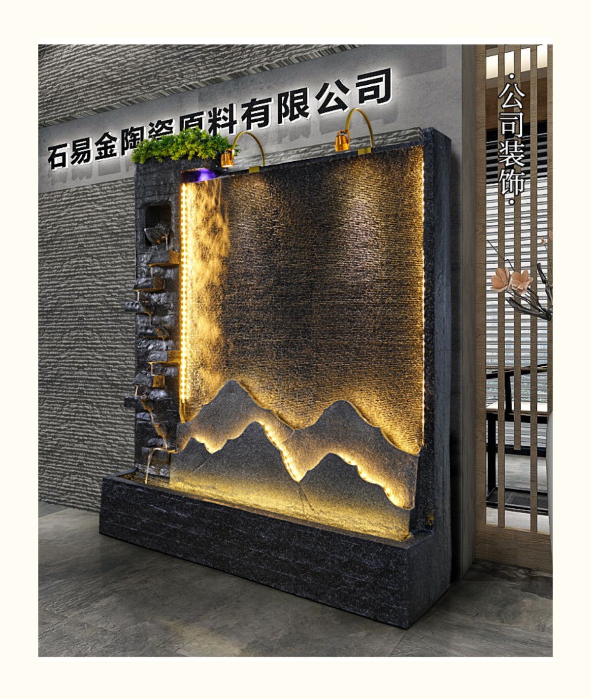 물 커튼 월 흐르는 물 스크린 순환 물 기능 물고기 연못 바위 분수 폭포 풍경 안뜰 물고기 탱크 조경 장식품