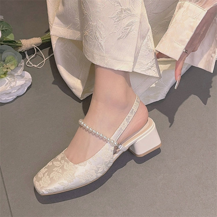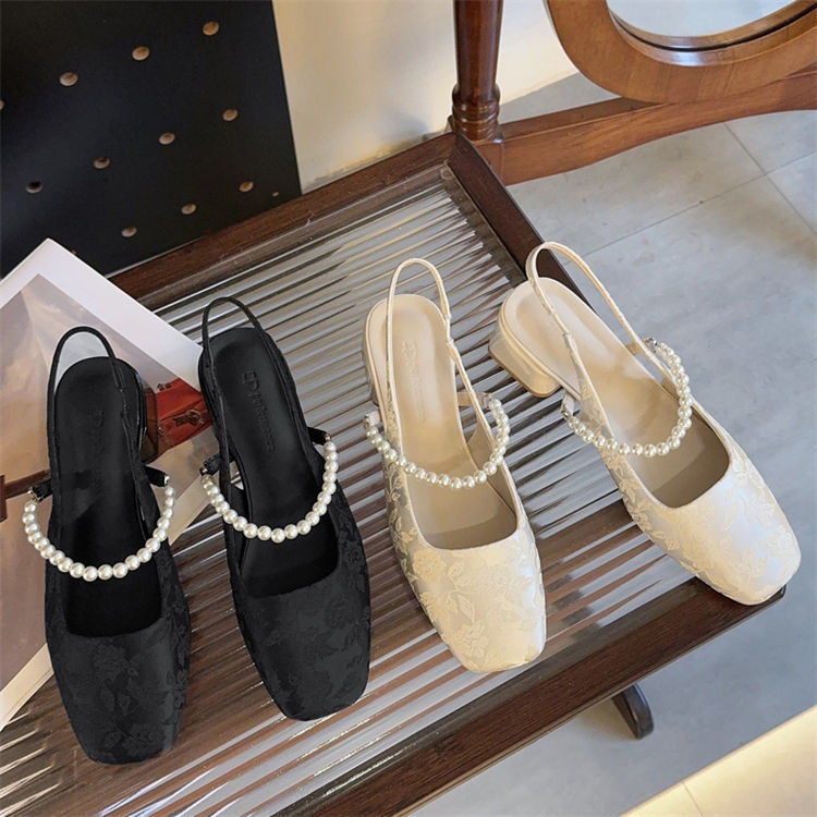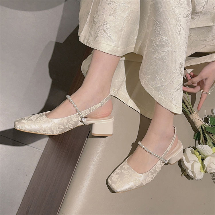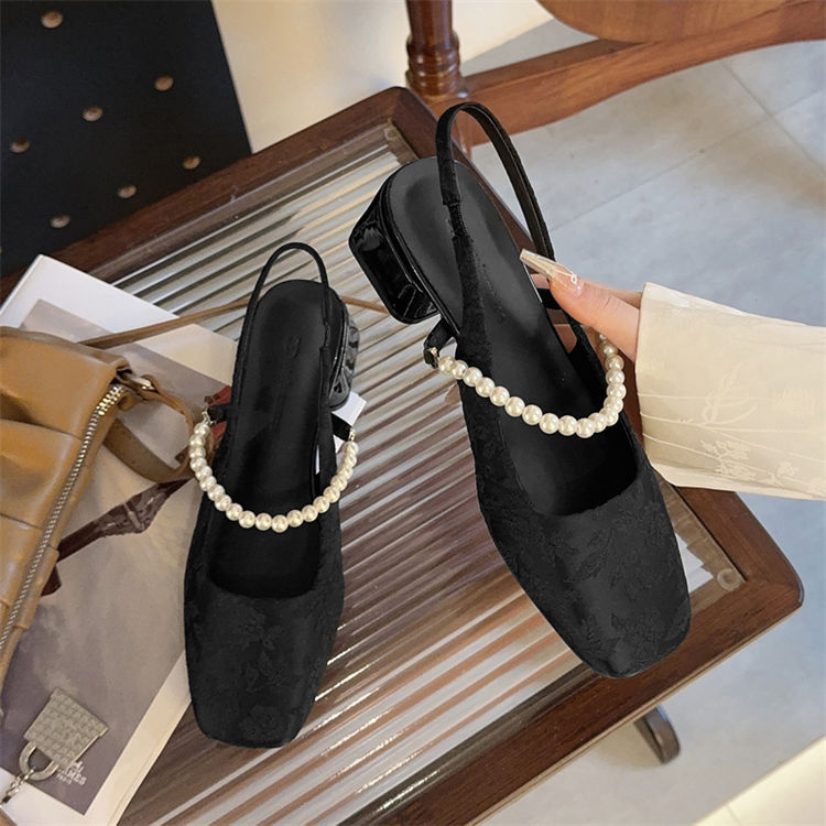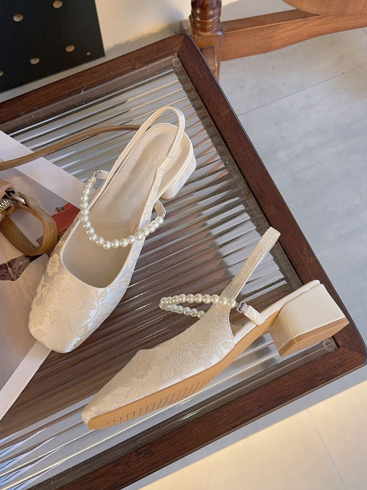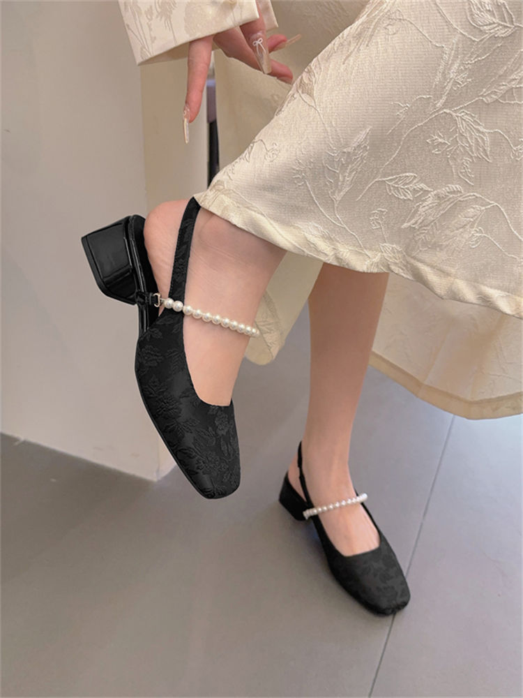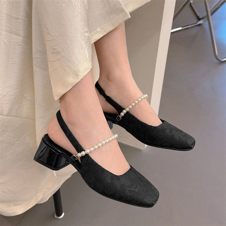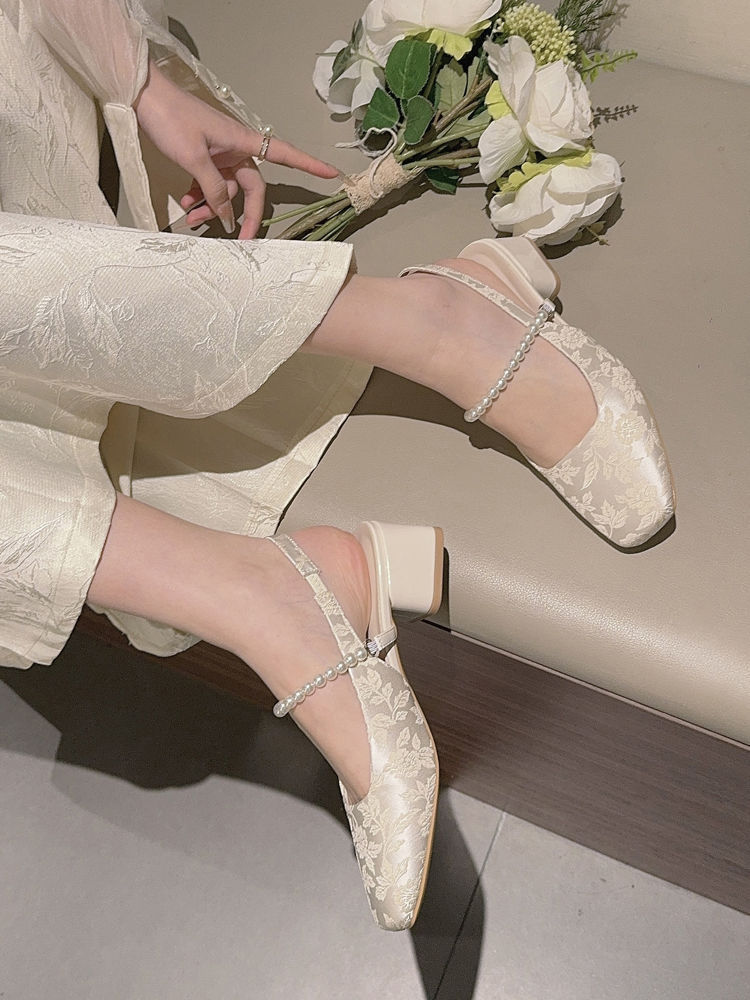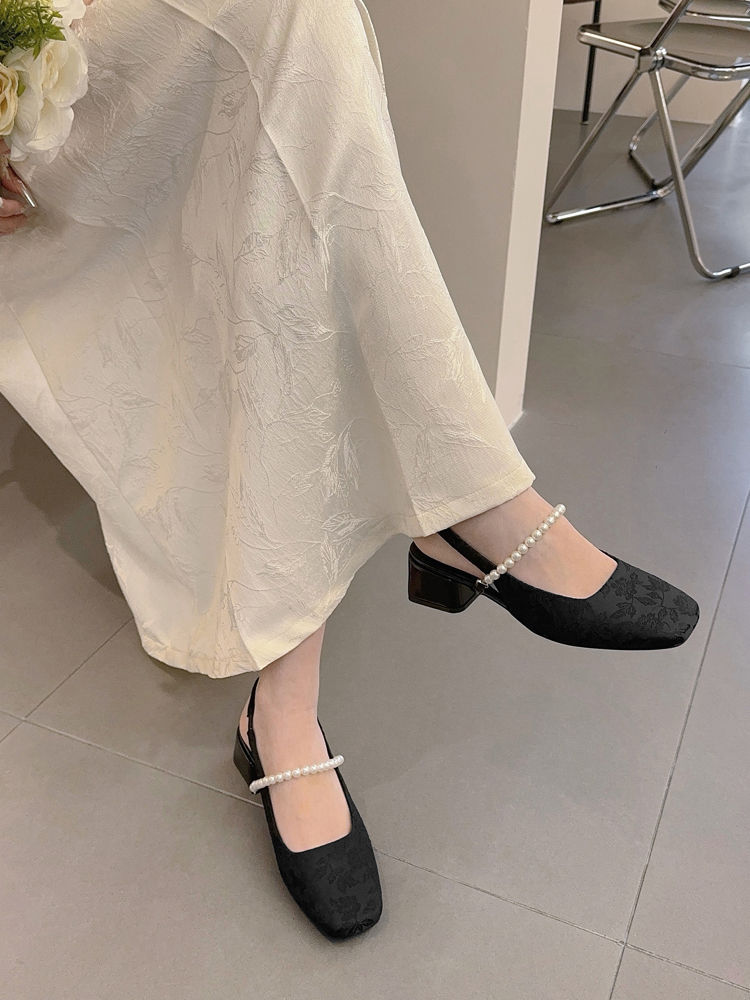 발가락 샌들 여성용 2025 년 여름 새로운 두꺼운 힐 얕은 입 싱글 레이어 신발 프렌치 펄 메리 제인 신발 스퀘어 발가락 하이힐