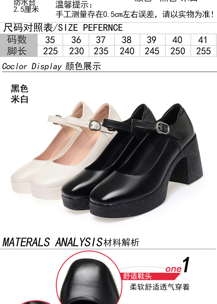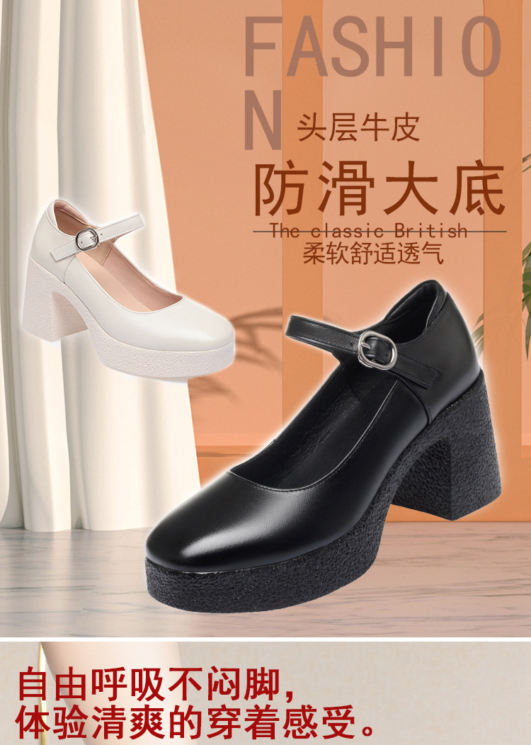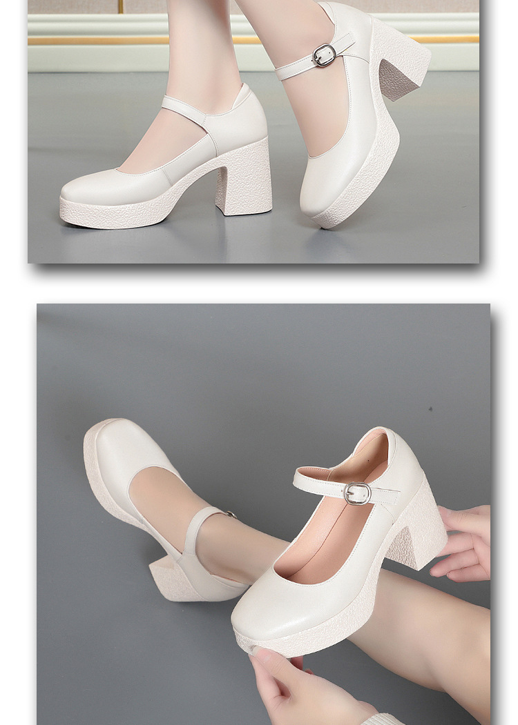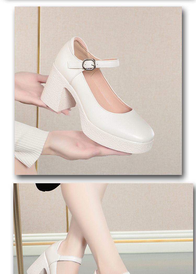 모델 플랫폼 화이트 쇼 하이힐 여성 신발 피곤하지 않은 부드러운 가죽 싱글 신발 두꺼운 힐 여성용 가죽스토어 가기