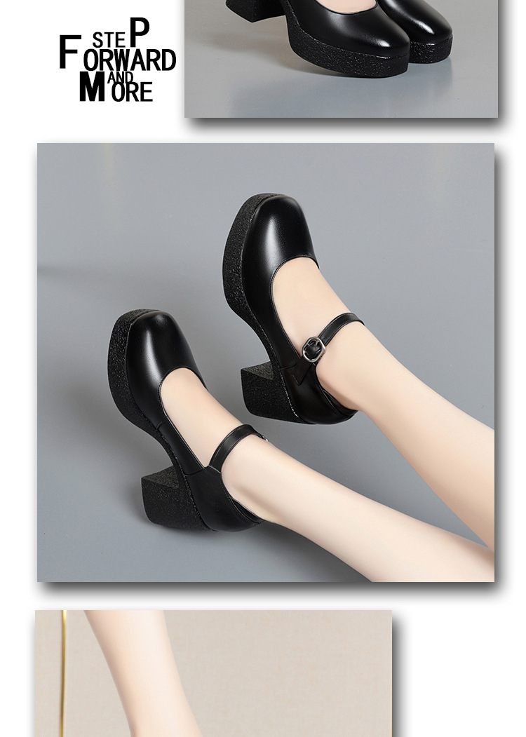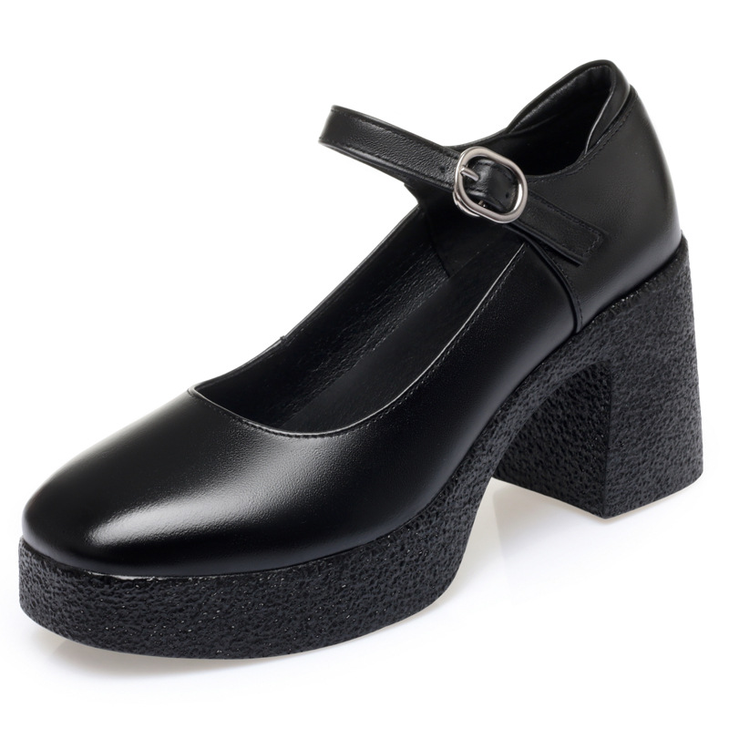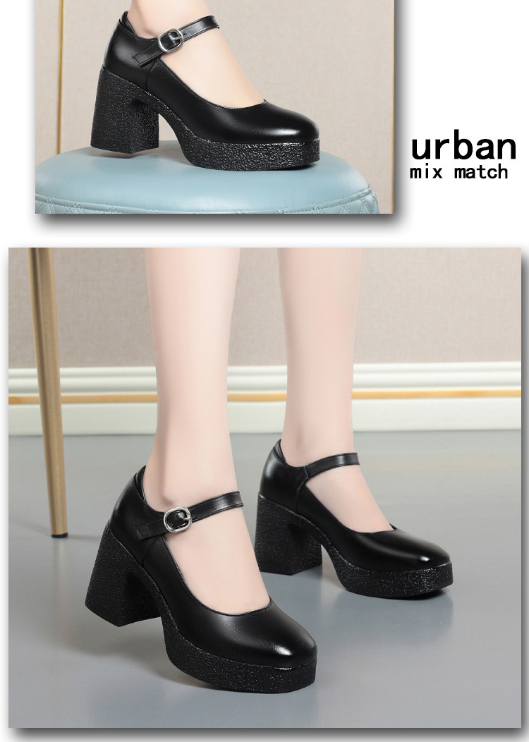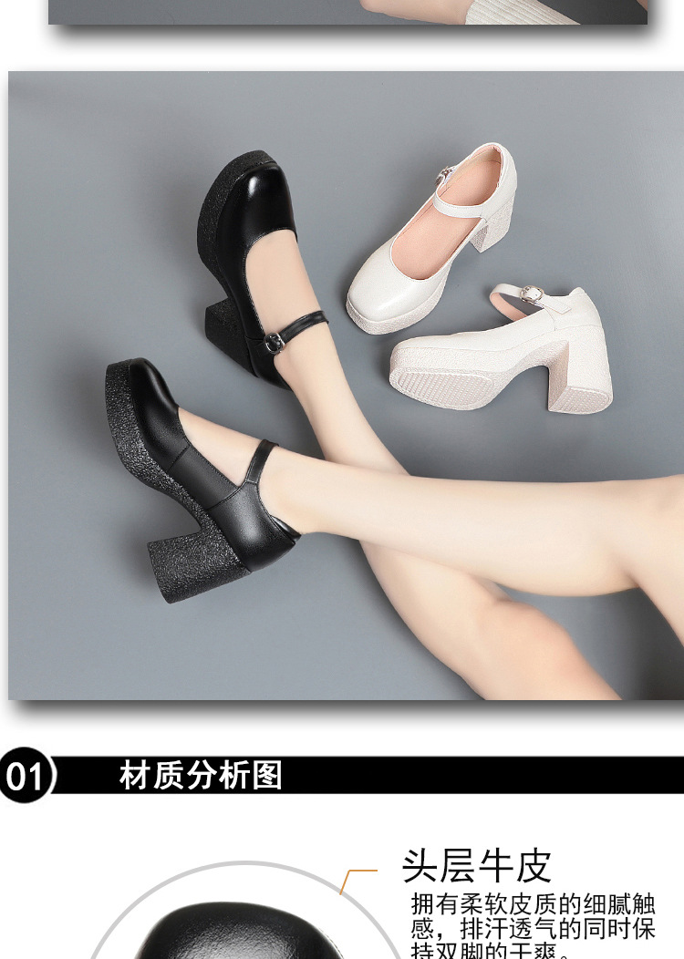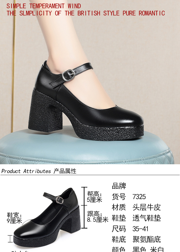 모델 플랫폼 화이트 쇼 하이힐 여성 신발 피곤하지 않은 부드러운 가죽 싱글 신발 두꺼운 힐 여성용 가죽스토어 가기