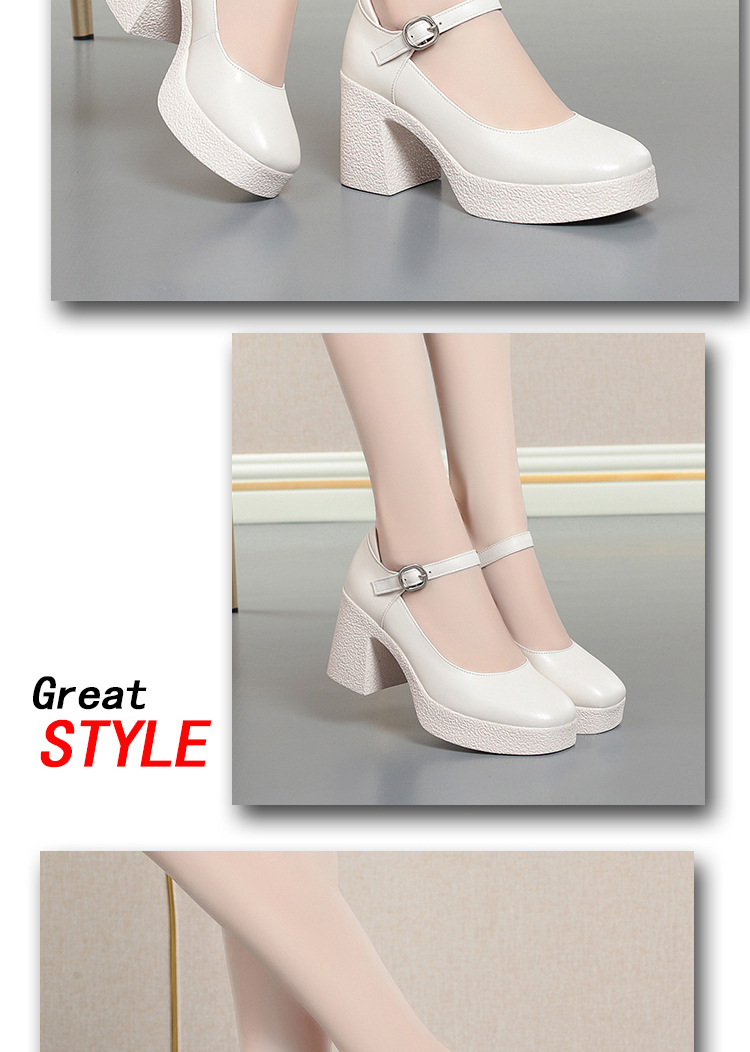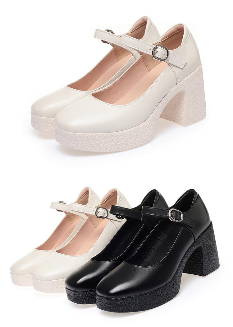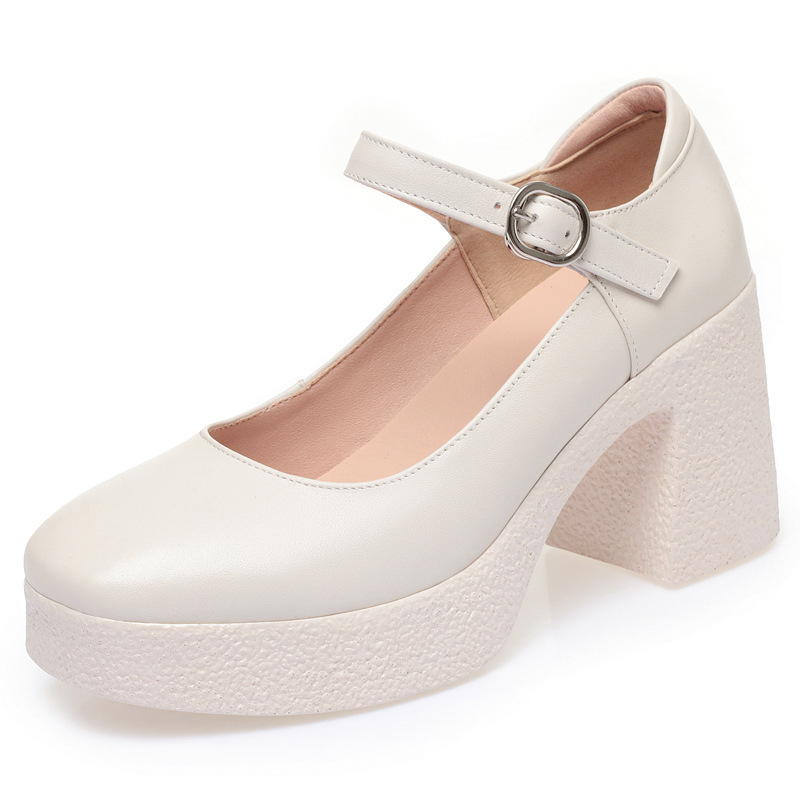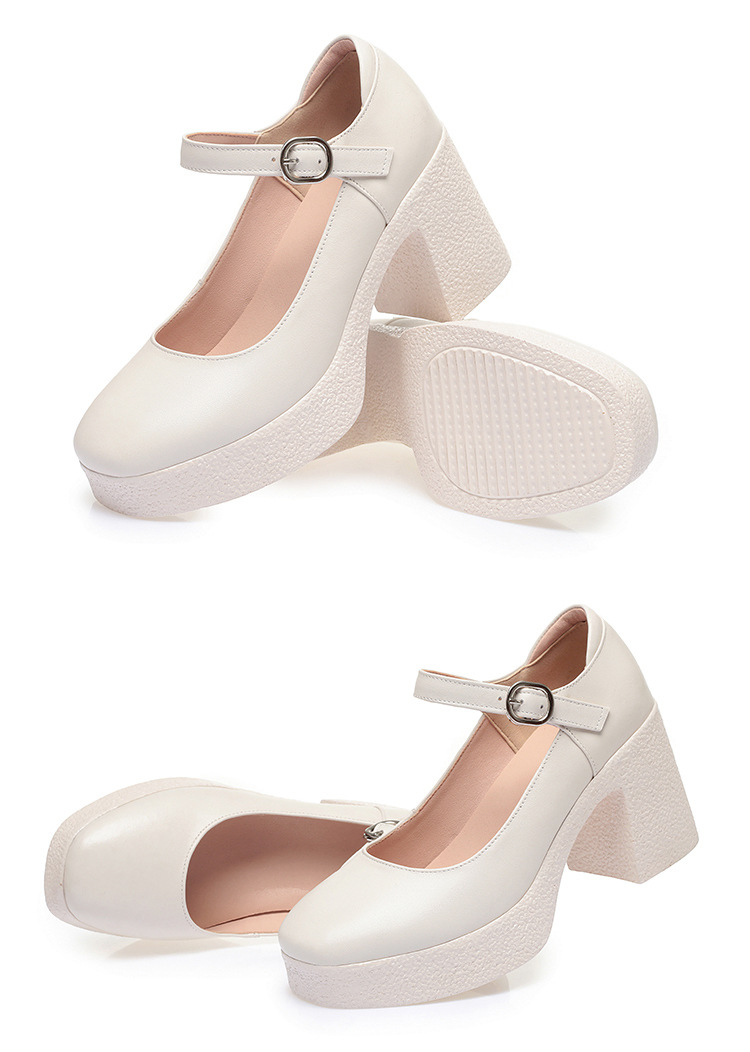 모델 플랫폼 화이트 쇼 하이힐 여성 신발 피곤하지 않은 부드러운 가죽 싱글 신발 두꺼운 힐 여성용 가죽