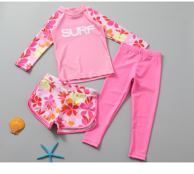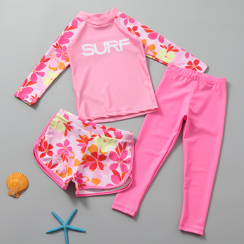 훌루다오 어린이 수영복 2025 소년 소녀 스플릿 3 피스 수영복 온천 비치 다이빙 세트