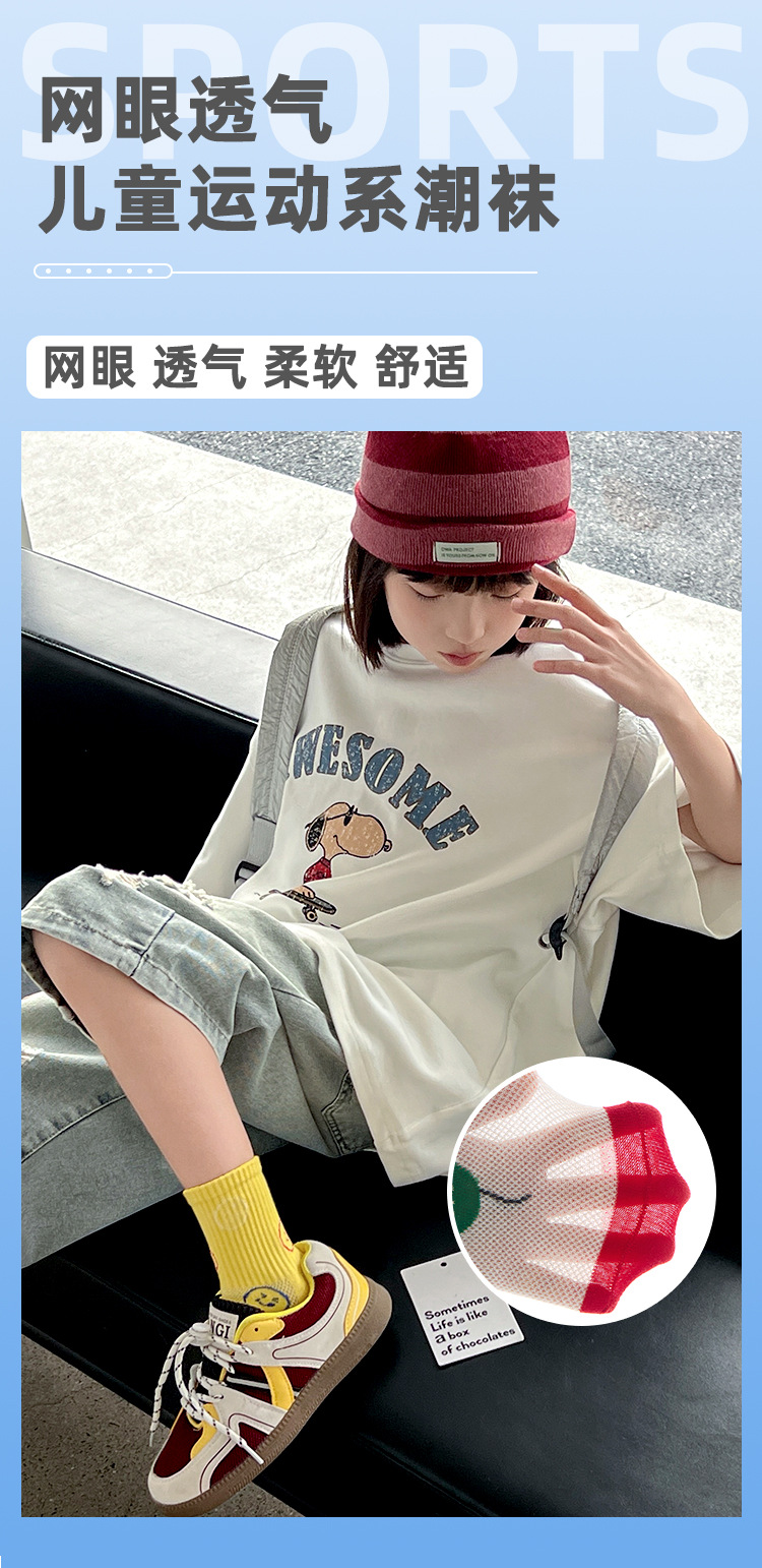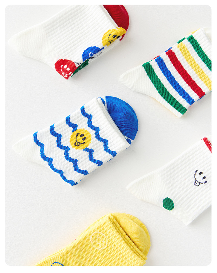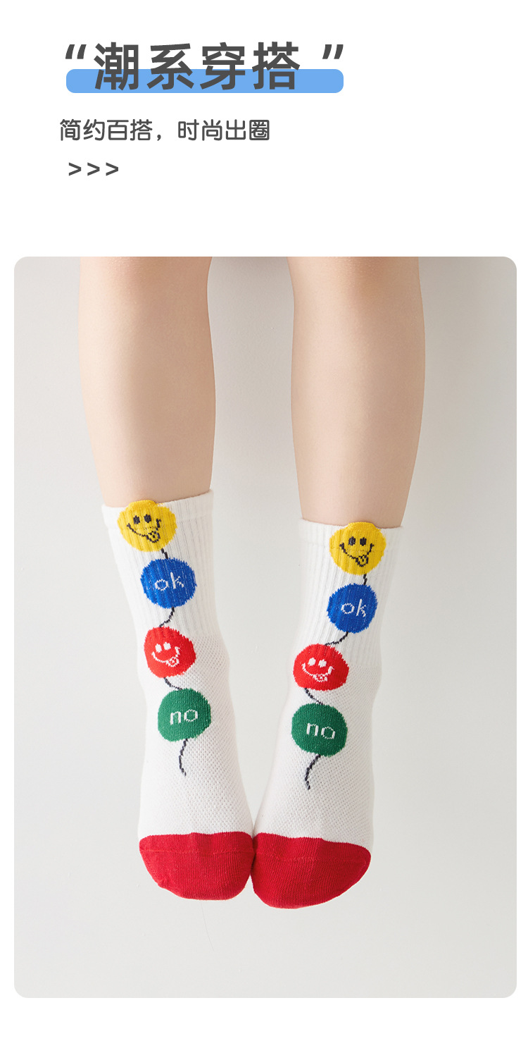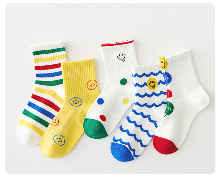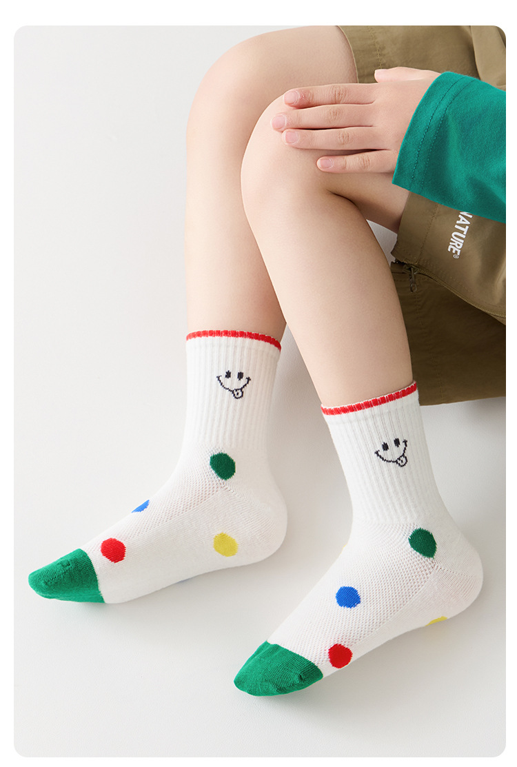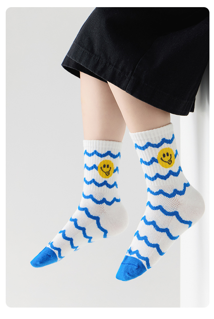 어린이 양말 봄과 여름 통기성 코튼 양말 소년과 소녀 양말 높은 고무 줄무늬 스마일리 유행 양말 메쉬 스포츠 양말