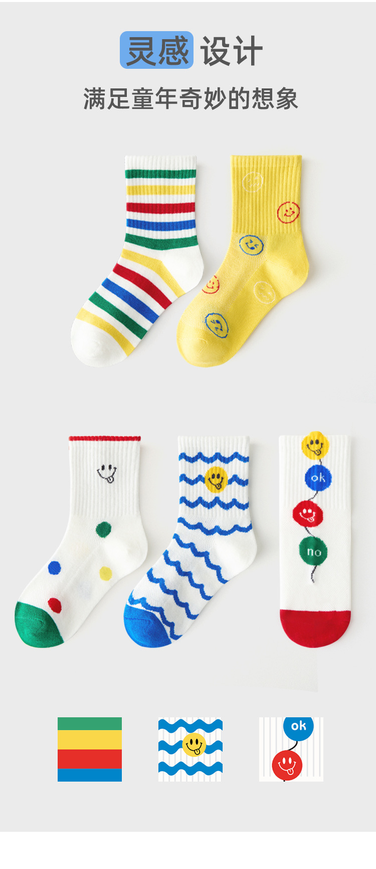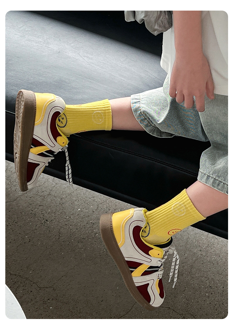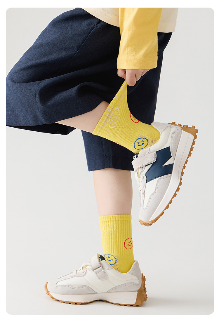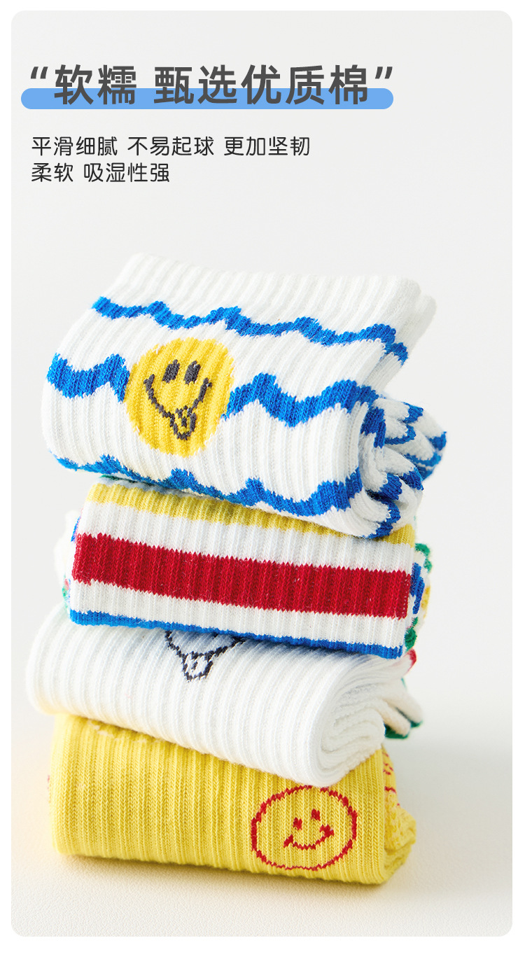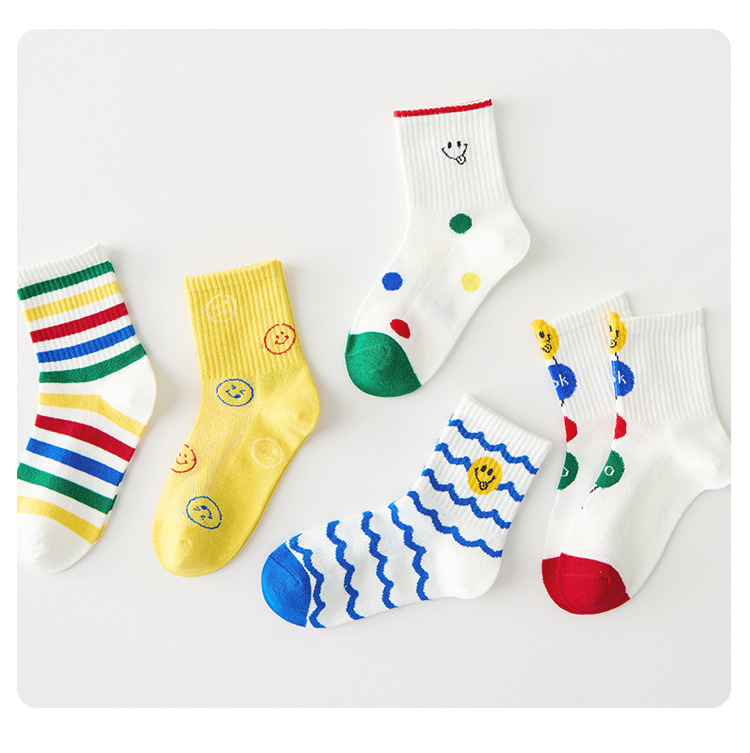 어린이 양말 봄과 여름 통기성 코튼 양말 소년과 소녀 양말 높은 고무 줄무늬 스마일리 유행 양말 메쉬 스포츠 양말