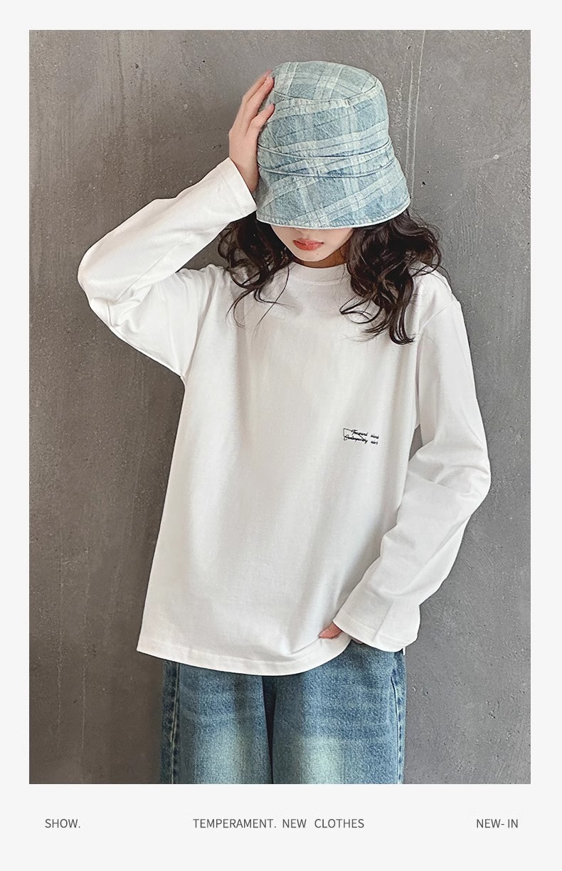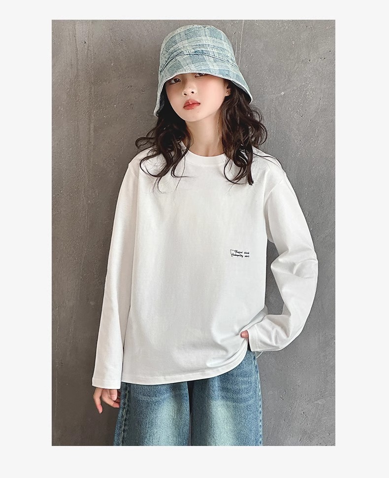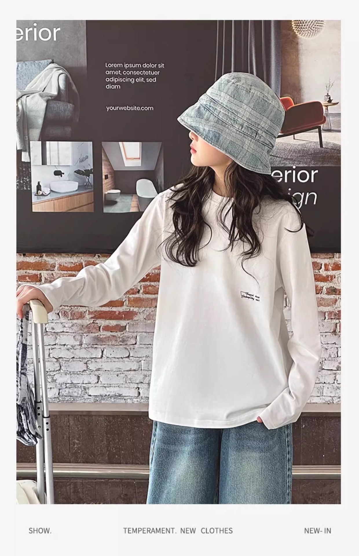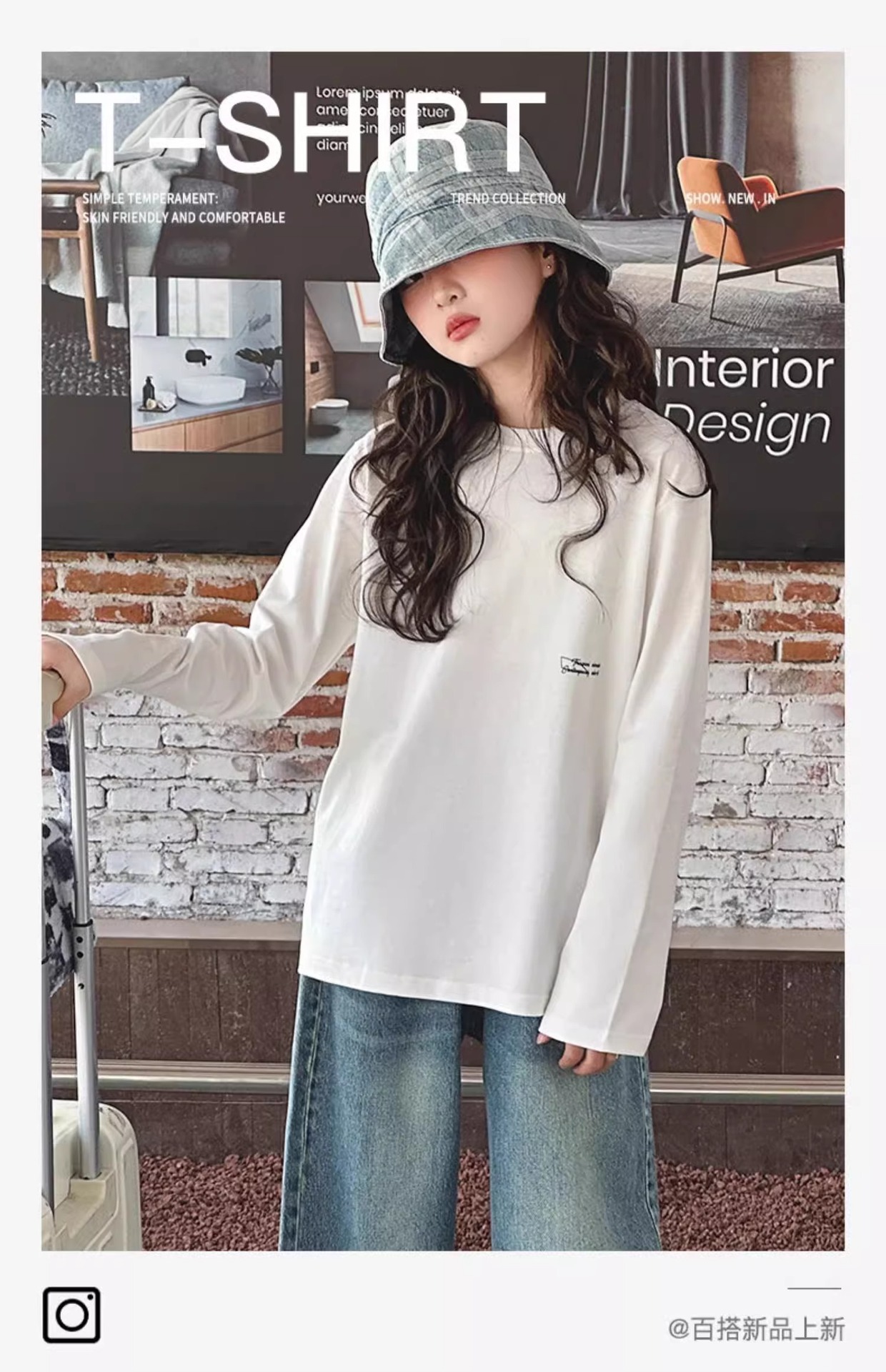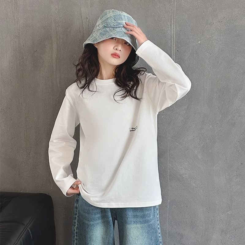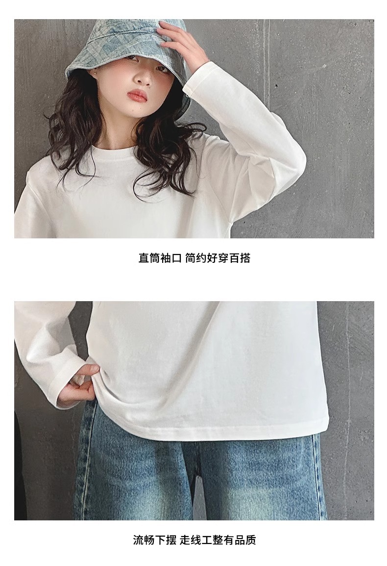 소녀 긴 소매 티셔츠 봄과 가을 2025 새로운 어린이 흰색베이스 셔츠 봄 중간과 큰 어린이 순면 탑스토어 가기