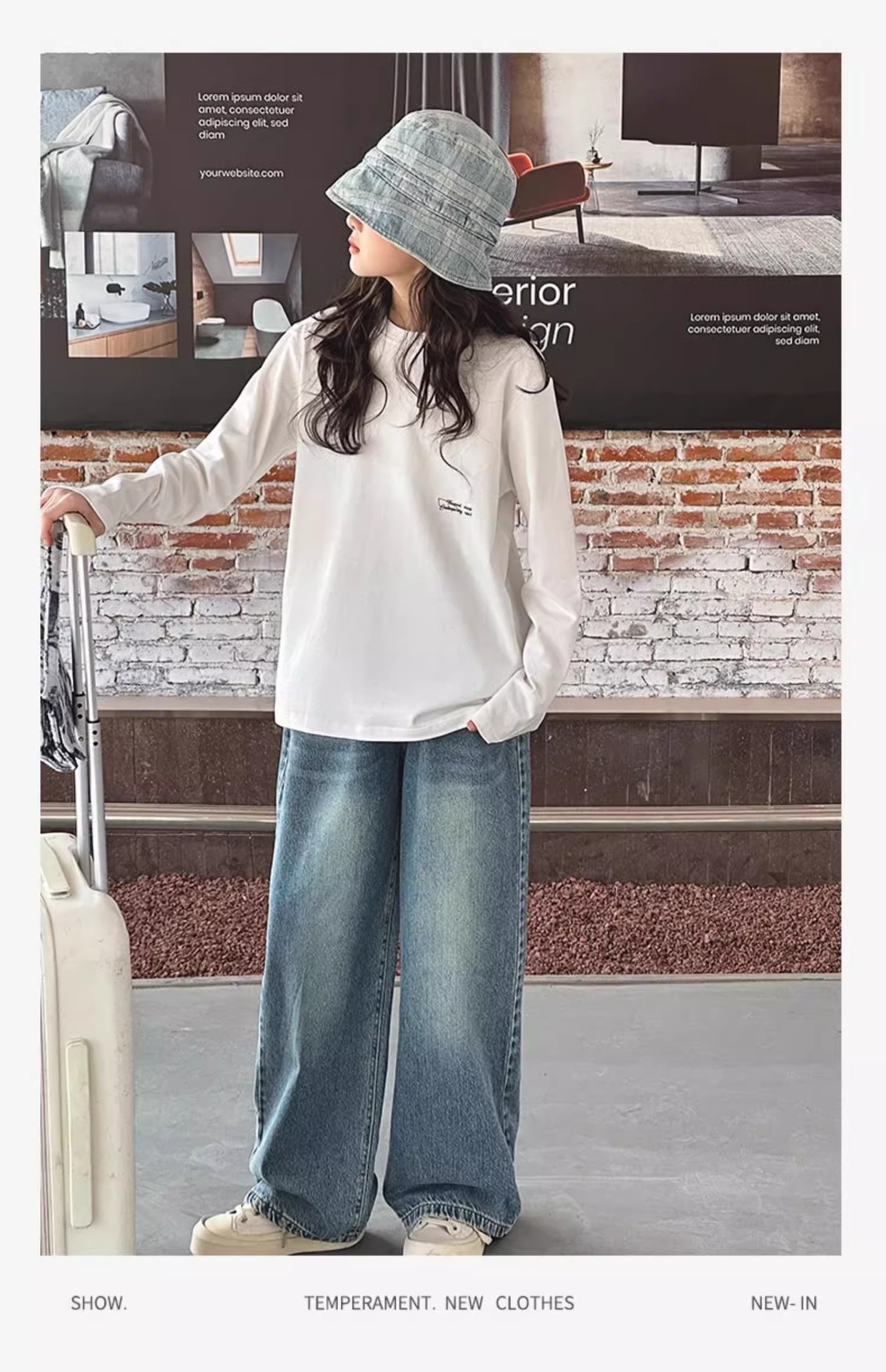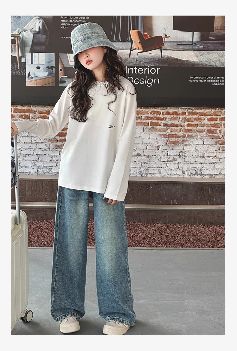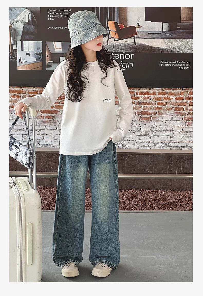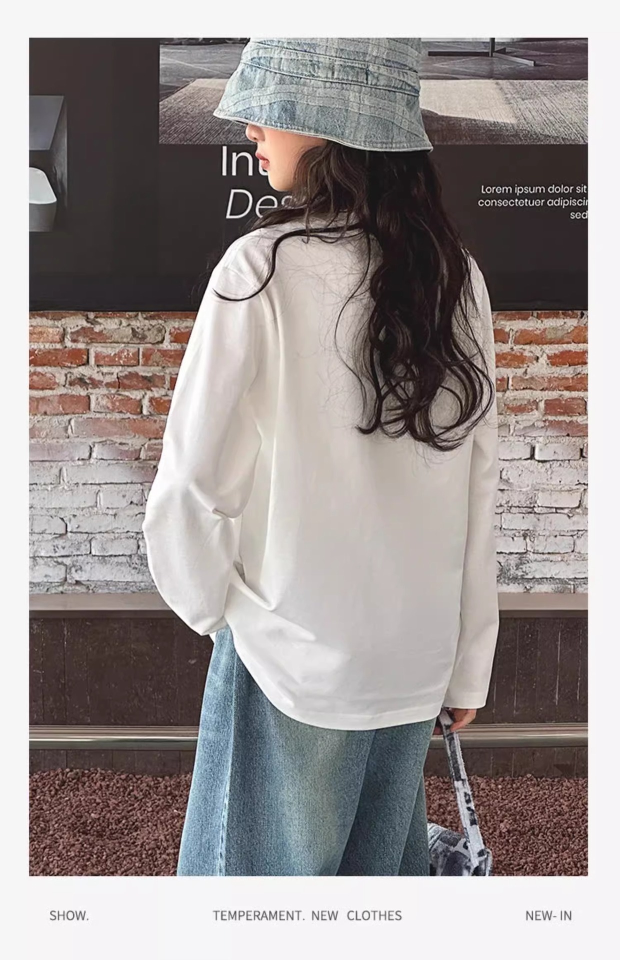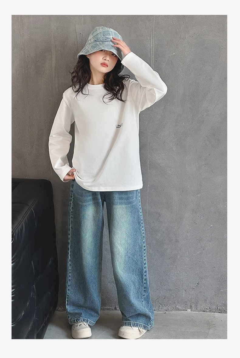 소녀 긴 소매 티셔츠 봄과 가을 2025 새로운 어린이 흰색베이스 셔츠 봄 중간과 큰 어린이 순면 탑스토어 가기