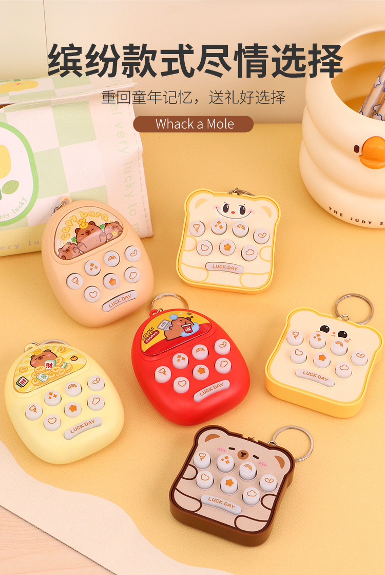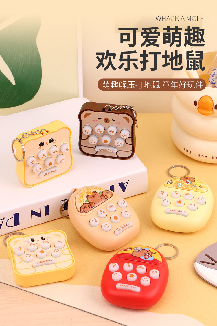 새로운 미니 만화 빵 햄스터 프레스, 어린이 교육 장난감 게임 기계 키 체인 교수형 장식품스토어 가기