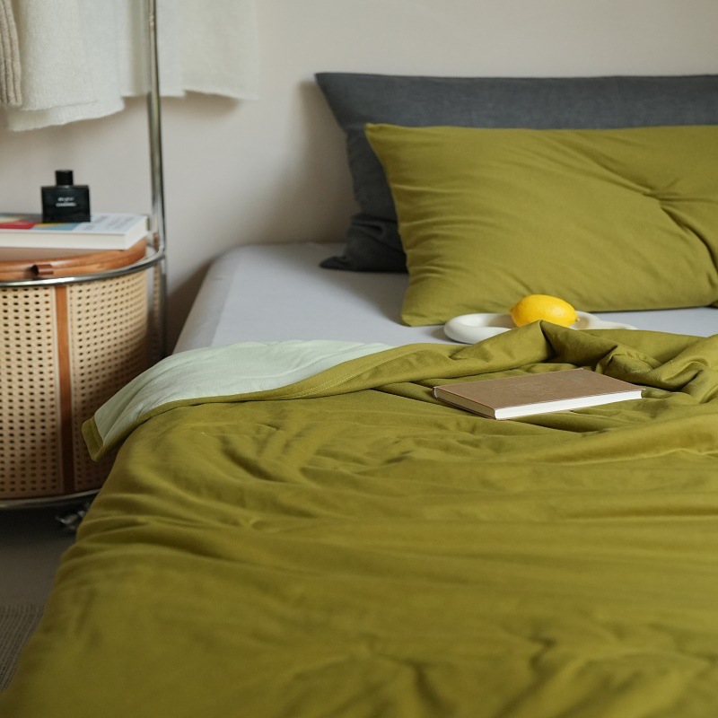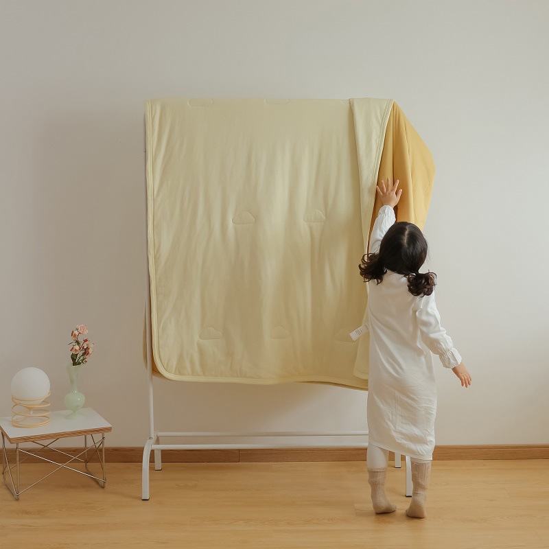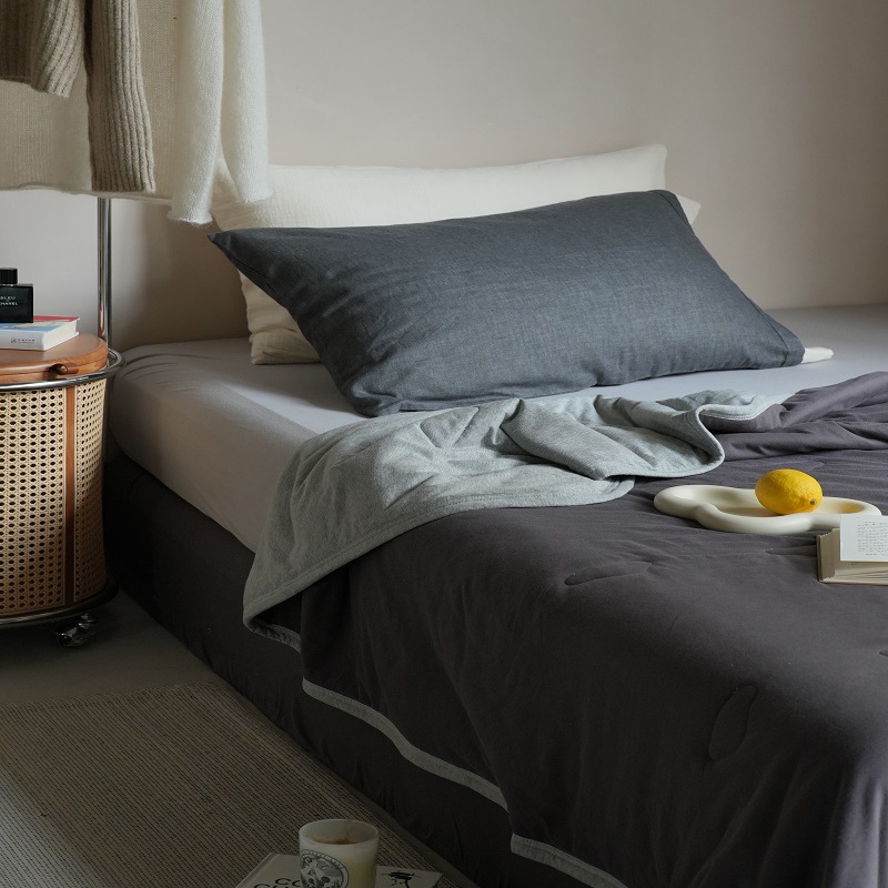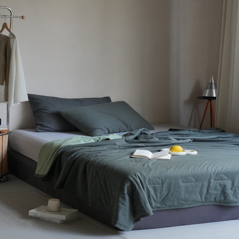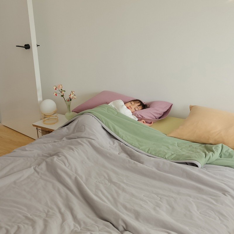 颜色清新,风格简单,12种配色,每一种都有它独特的美,足够多但却并不高调。配上针织棉的软糯,天丝纤维舒适清凉的触感,俨然就是夏日夏被的最优选择了。