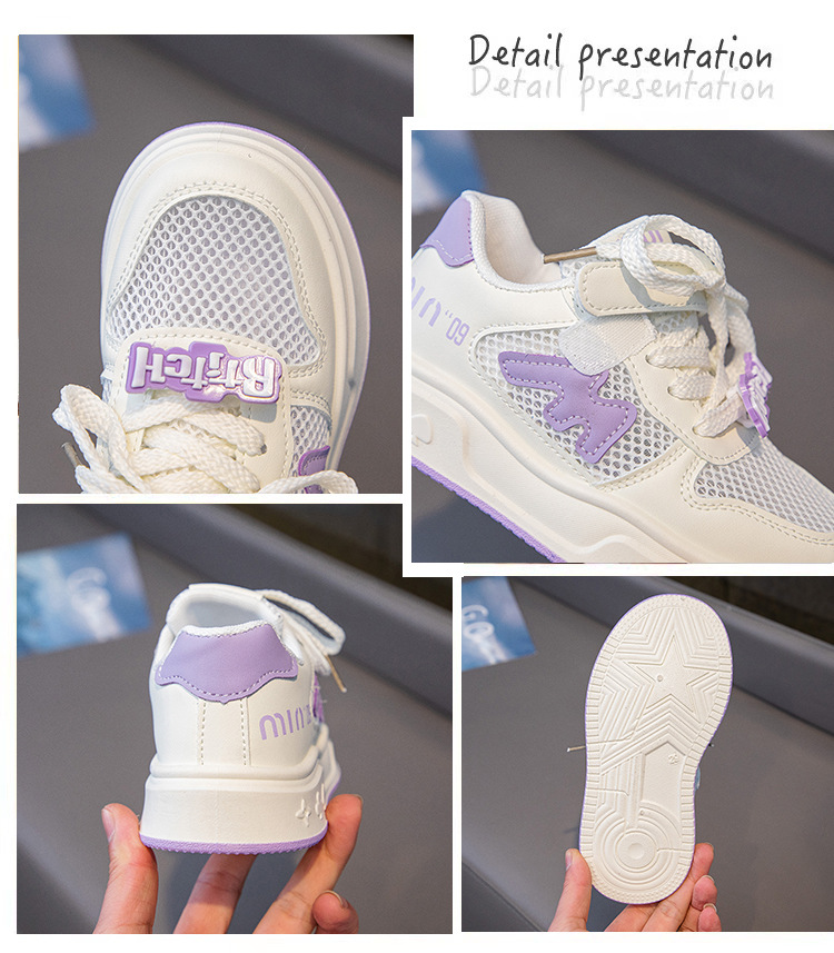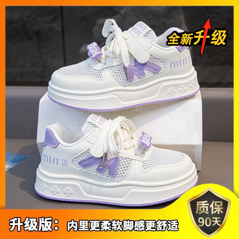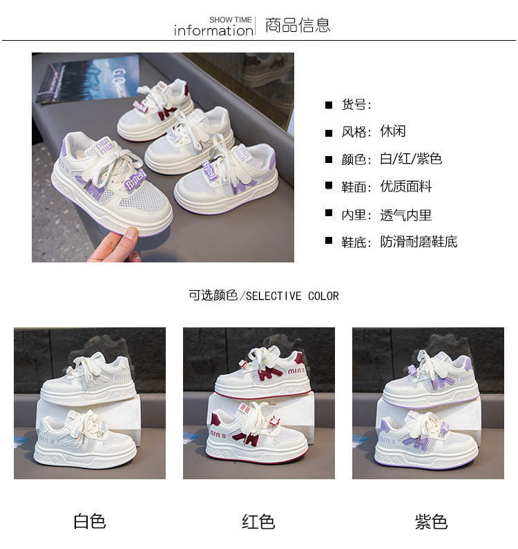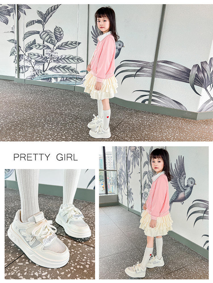 소녀 신발 2025 여름 새로운 어린이 스포츠 흰색 신발 큰 어린이 소녀와 학생 메쉬 통기성 보드 신발스토어 가기