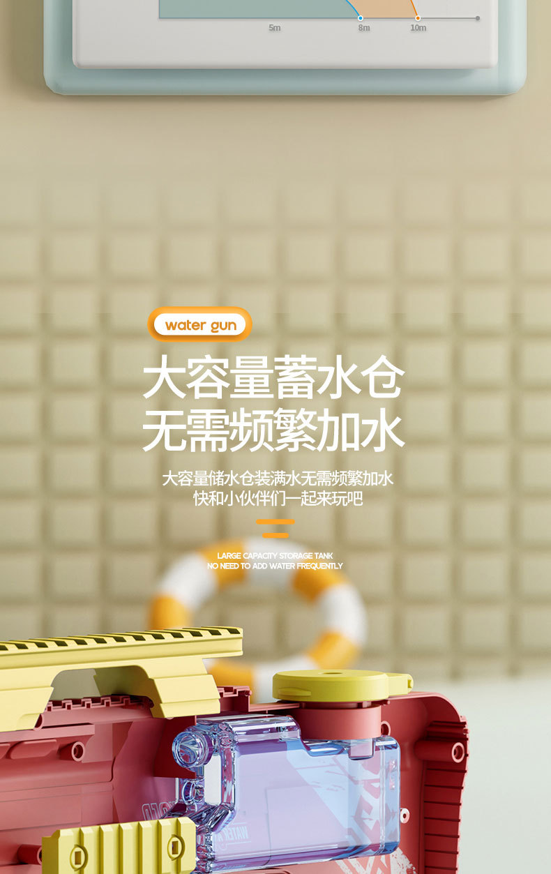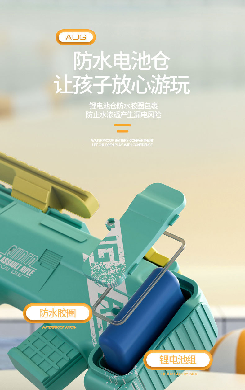 여름 P90 어린이 전기 고속 물 총 AUG 버스트 대형 물 스프레이 건 조명 해변 물 장난감스토어 가기