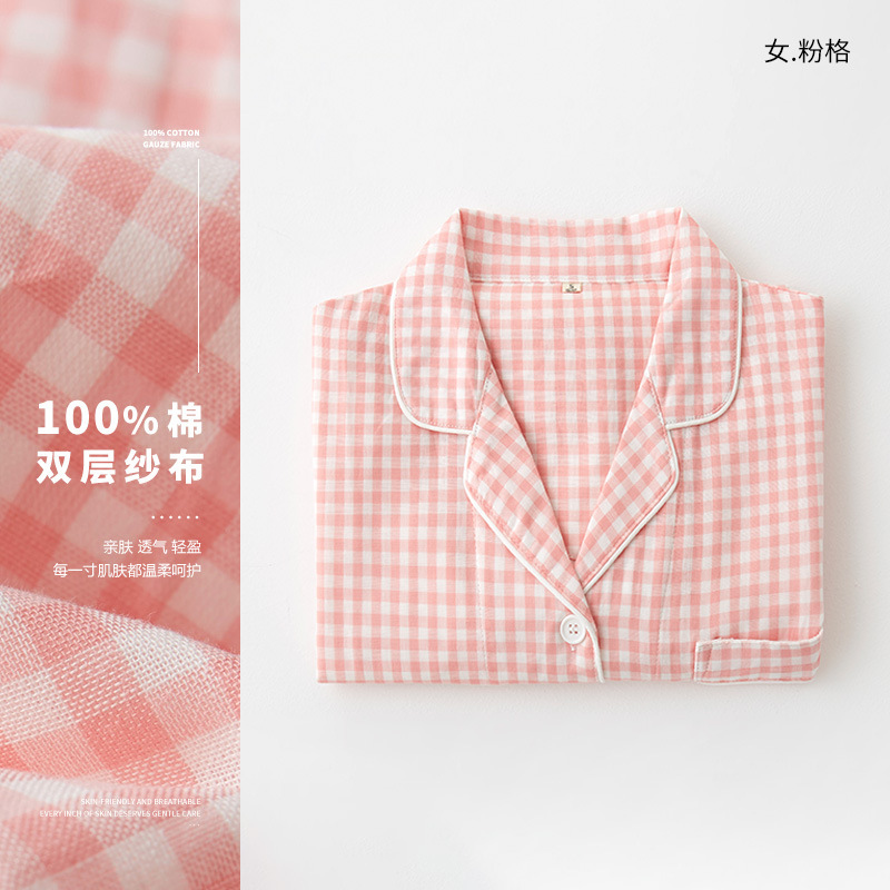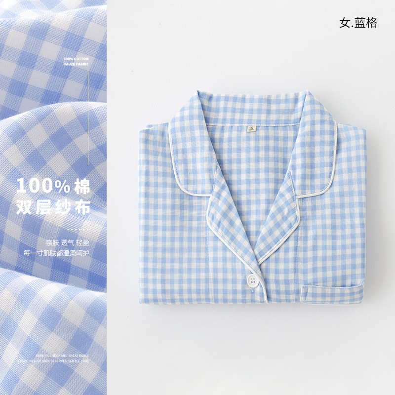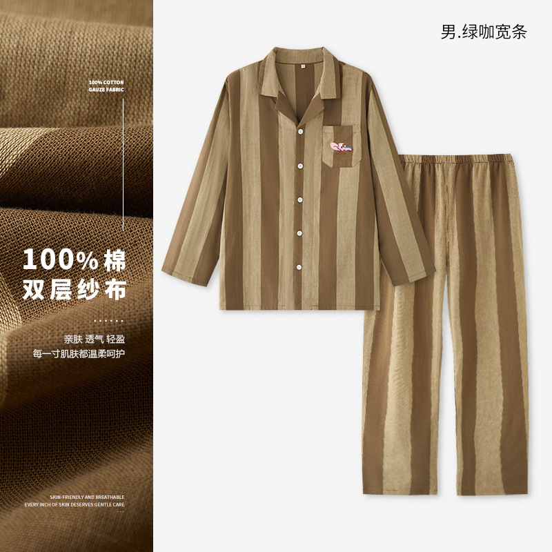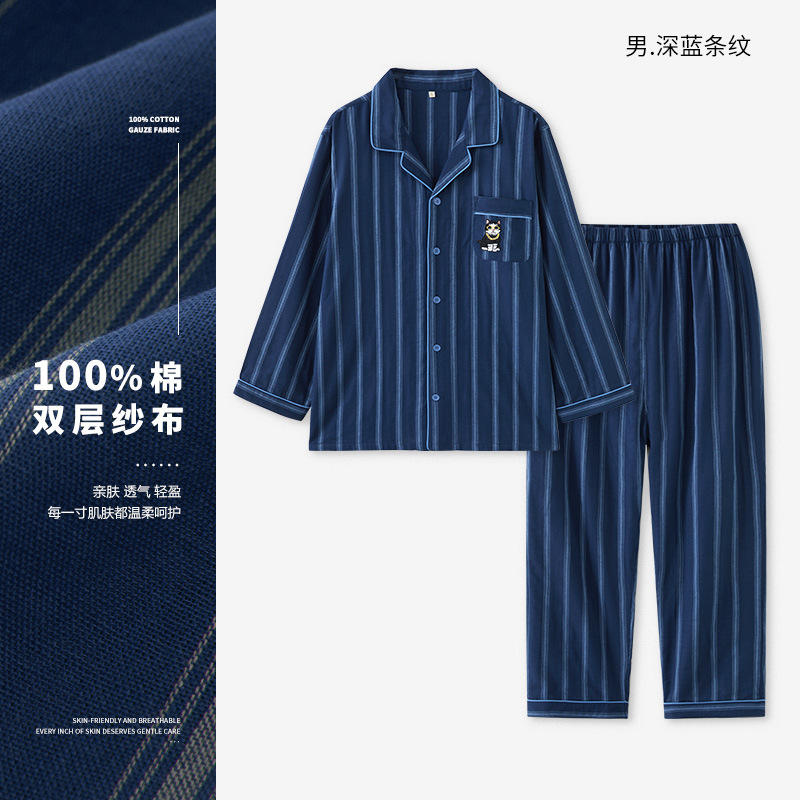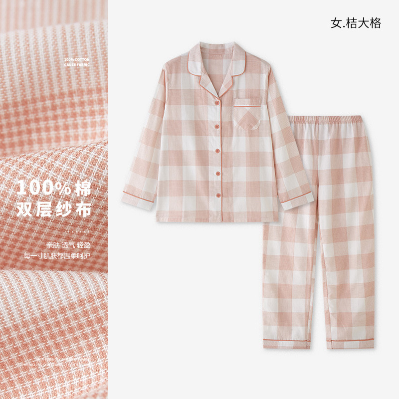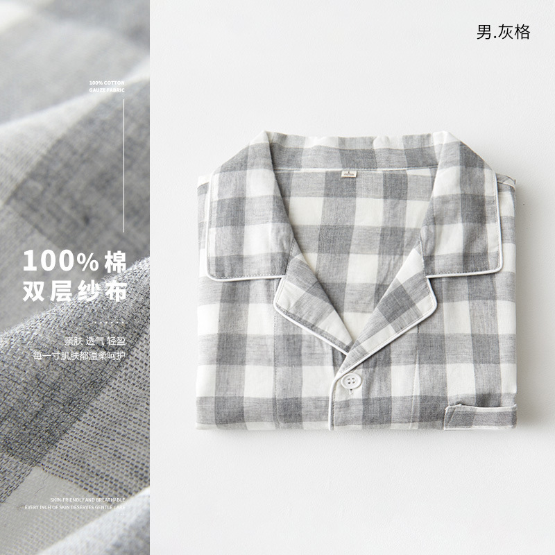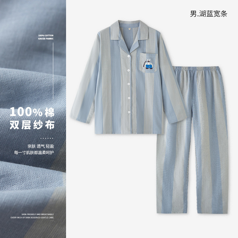 특가-커플 잠옷 여성용 봄, 가을 순면 거즈 남성용 면 긴팔 홈웨어 커플 세트 대형 사이즈스토어 가기