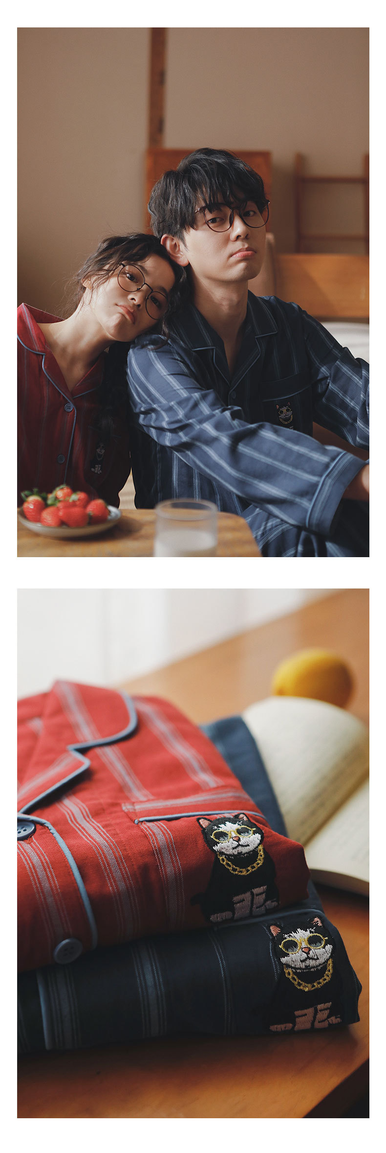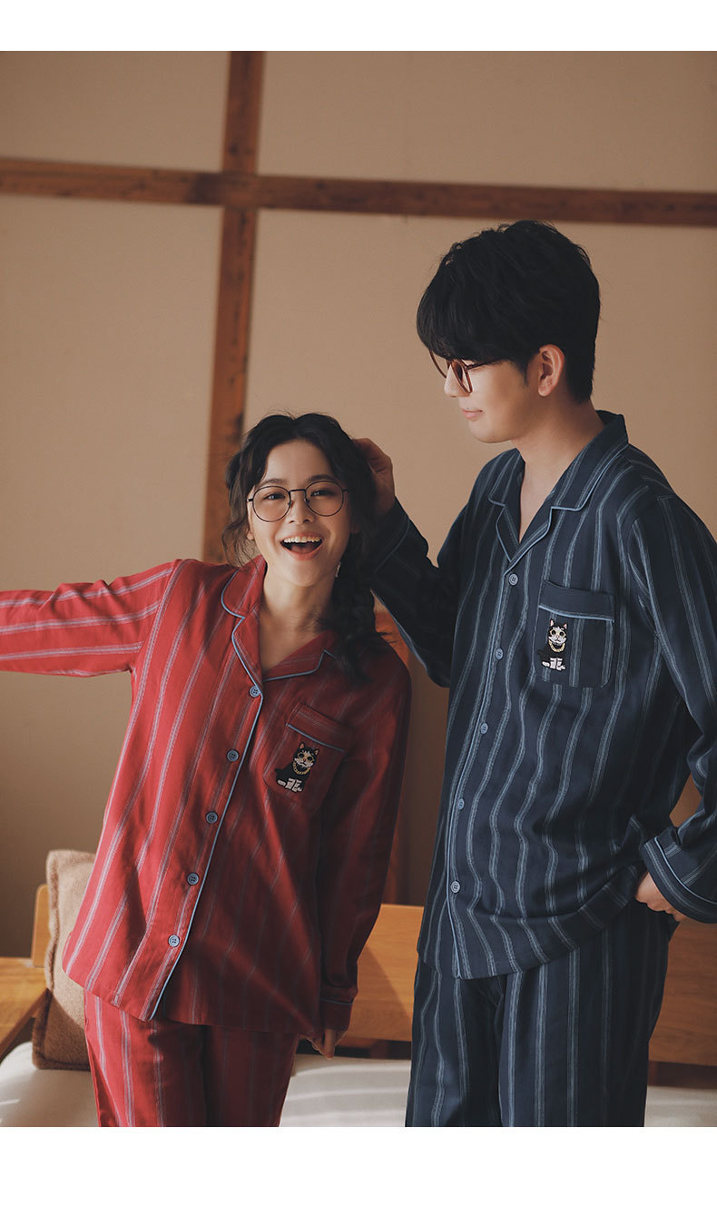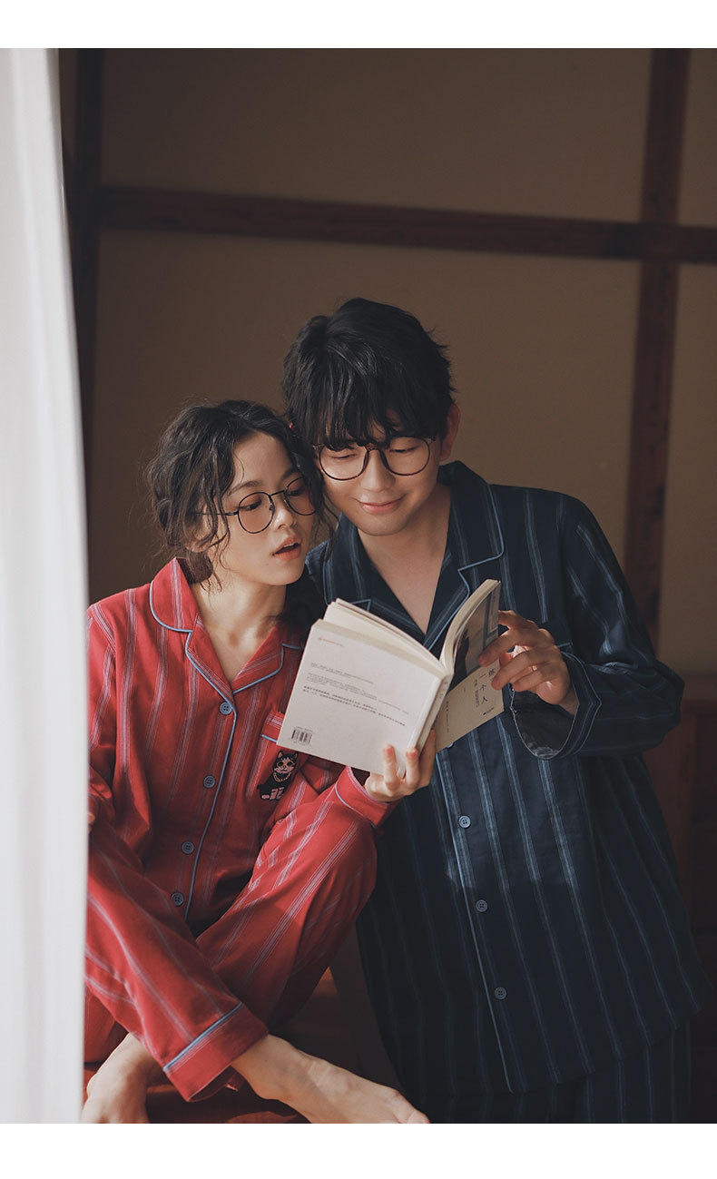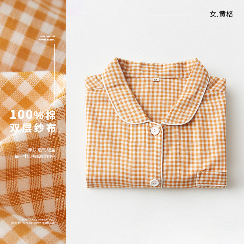 특가-커플 잠옷 여성용 봄, 가을 순면 거즈 남성용 면 긴팔 홈웨어 커플 세트 대형 사이즈스토어 가기