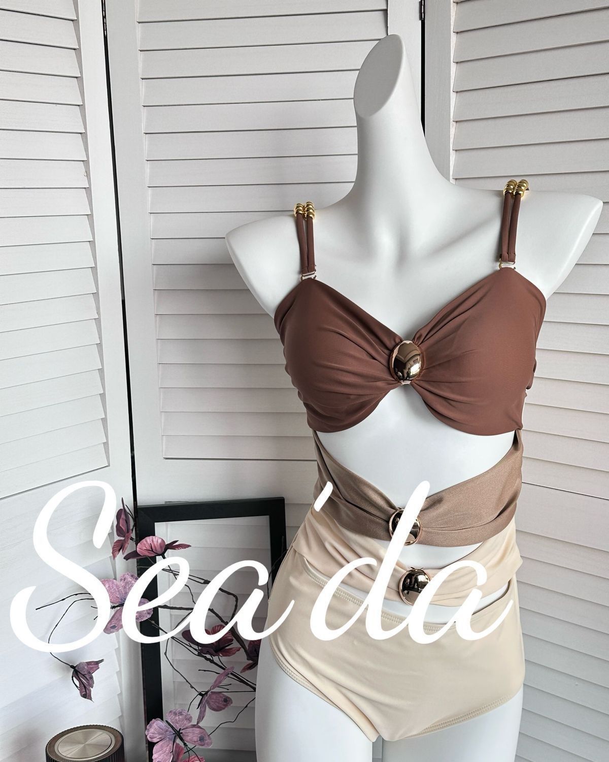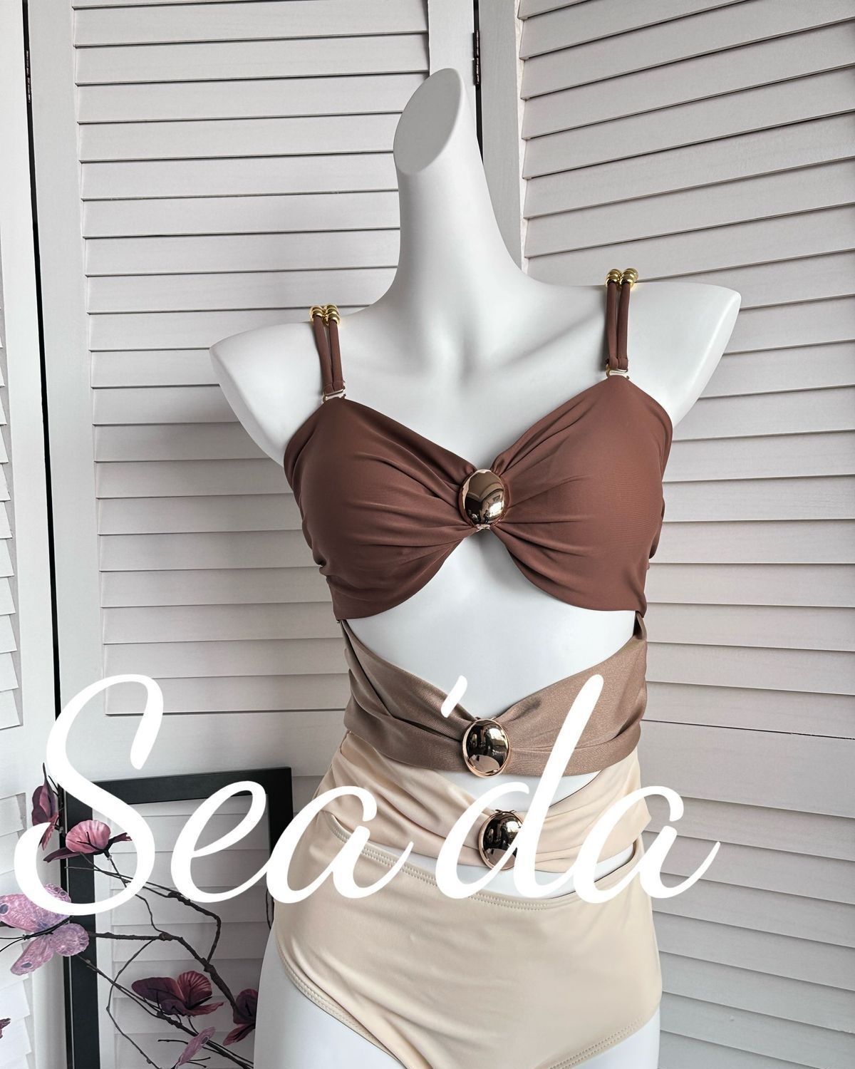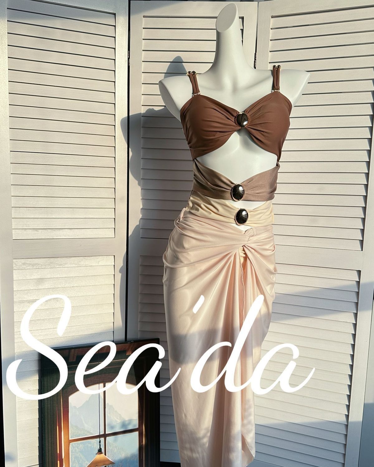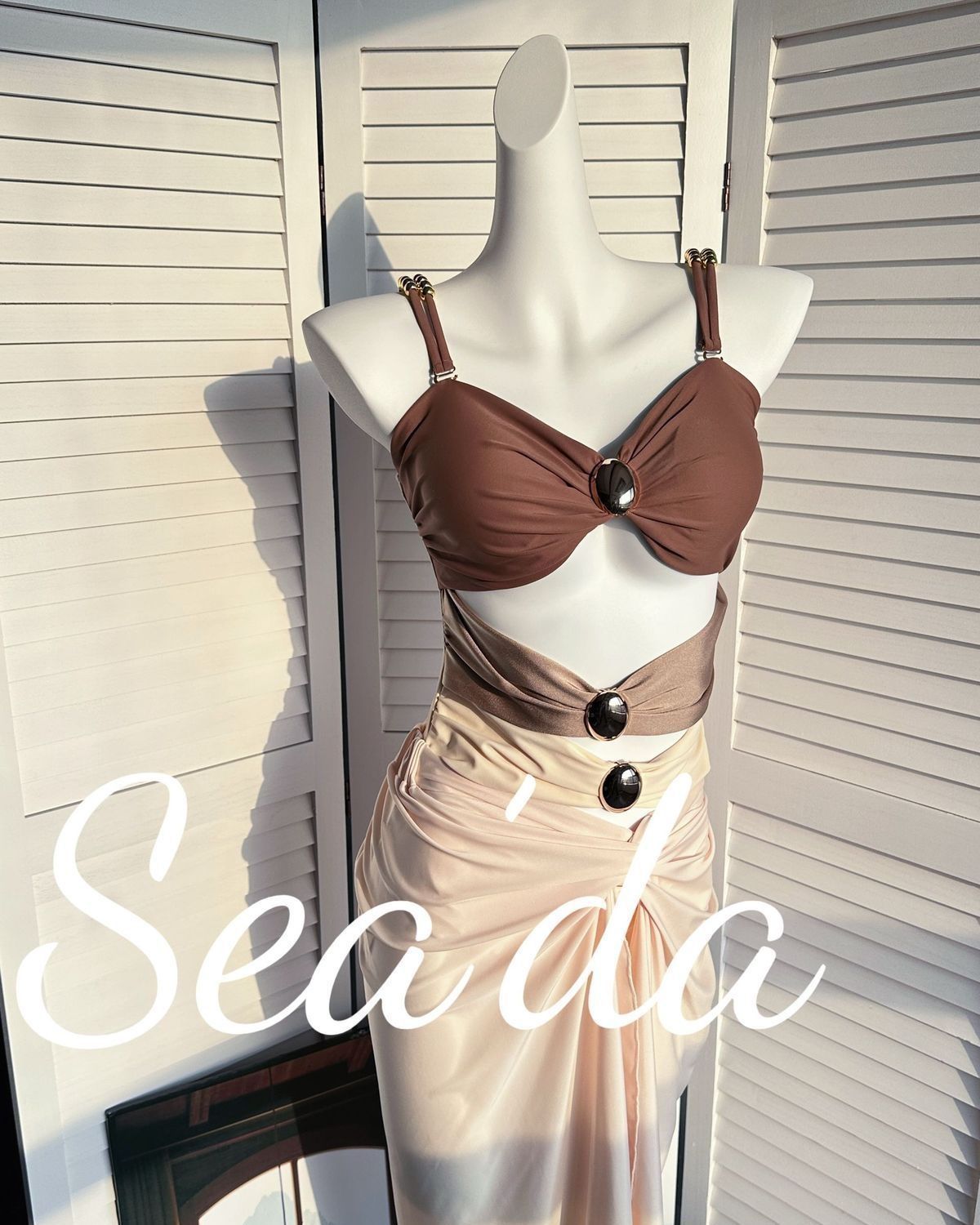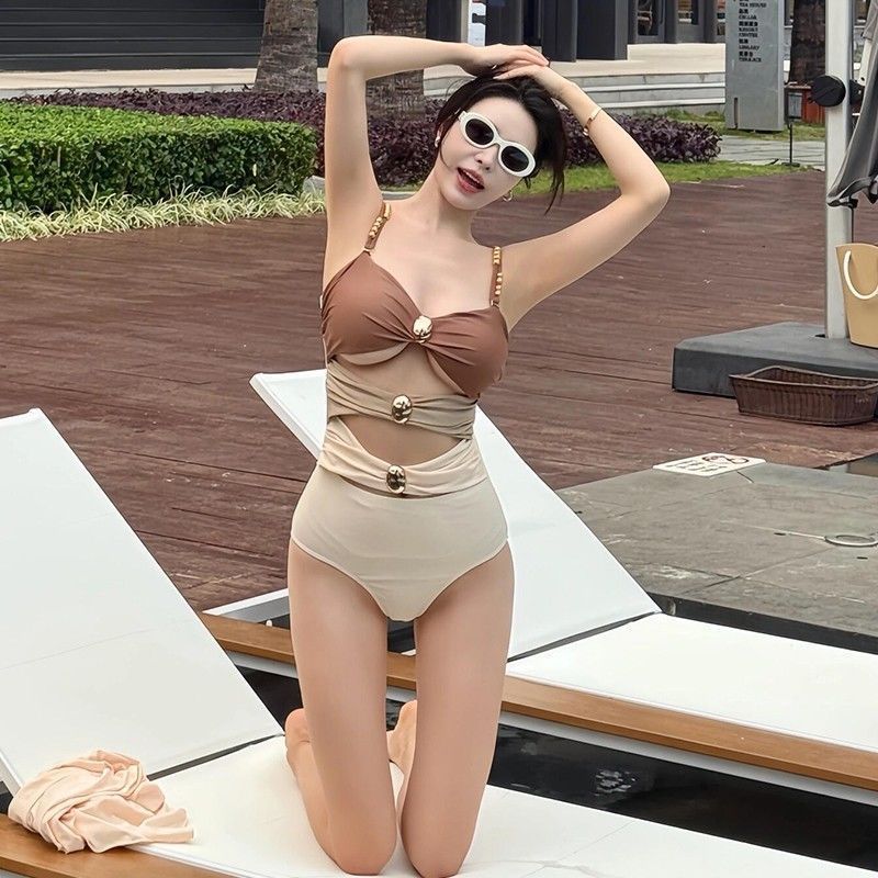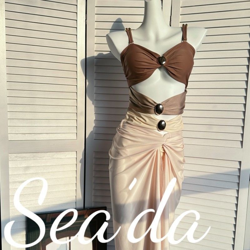 [진한 베이지 코코아] 섬 홀리데이 비치 스커트 투피스 수영복 여성 섹시한 살포 덮음