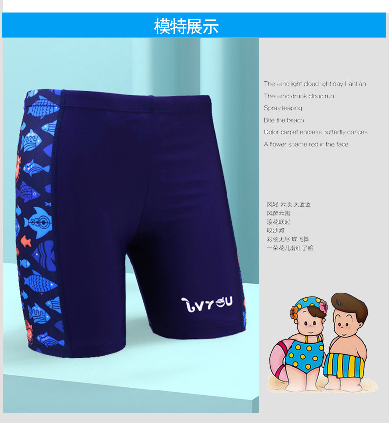 새로운 어린이 수영 트렁크 소년의 수영 트렁크 만화 인쇄 통기성 학생의 플랫 코너 중소 및 대형 어린이 온천 바지