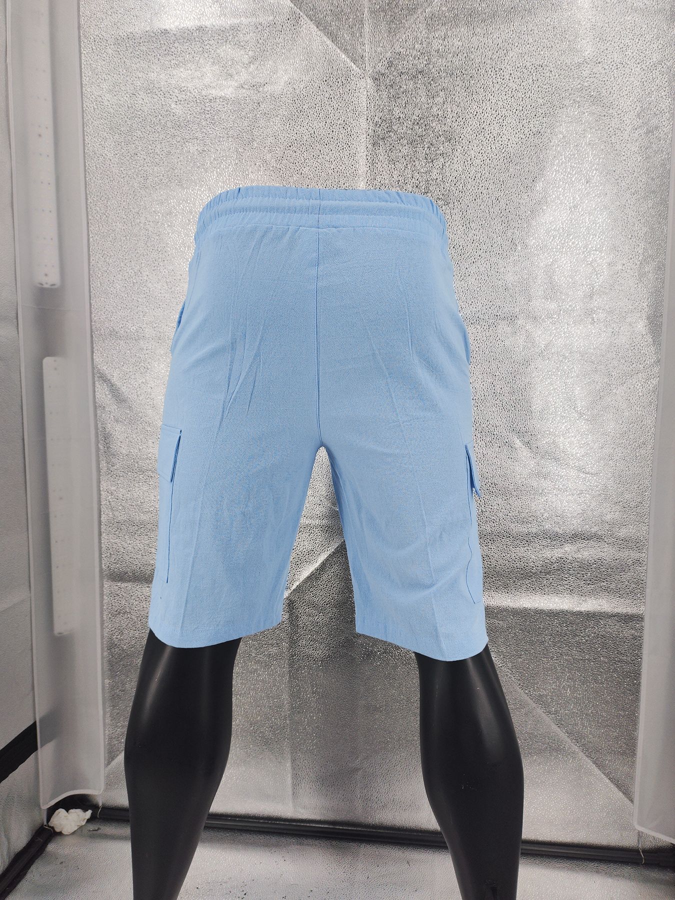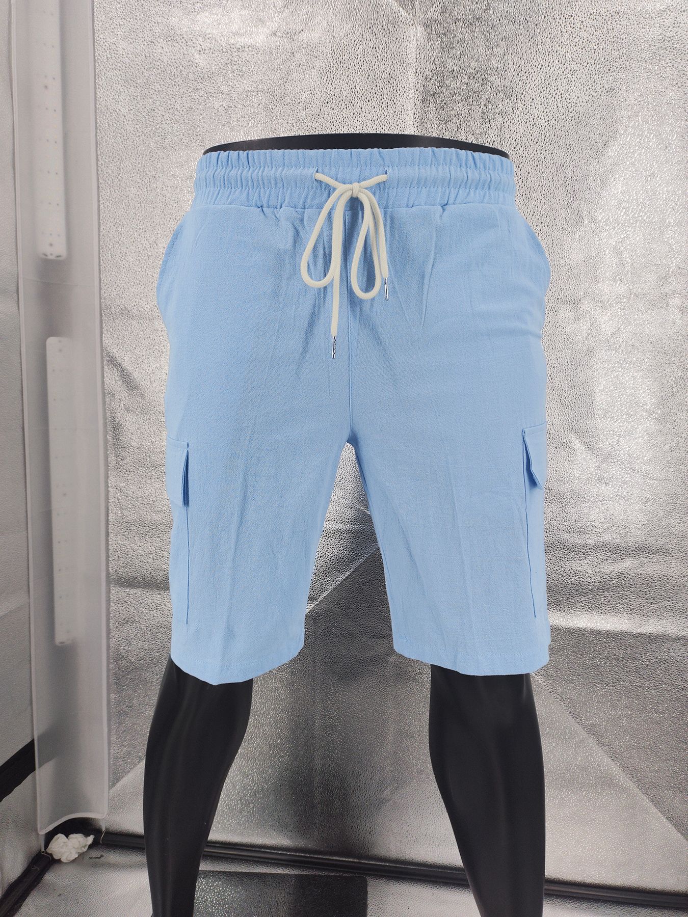 국경 간 미국식 멀티 포켓 툴링 반바지 남자 아마존 스포츠 캐주얼 느슨한 솔리드 컬러 리넨 드로우 스트링 바지