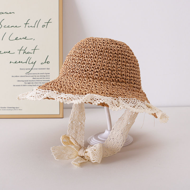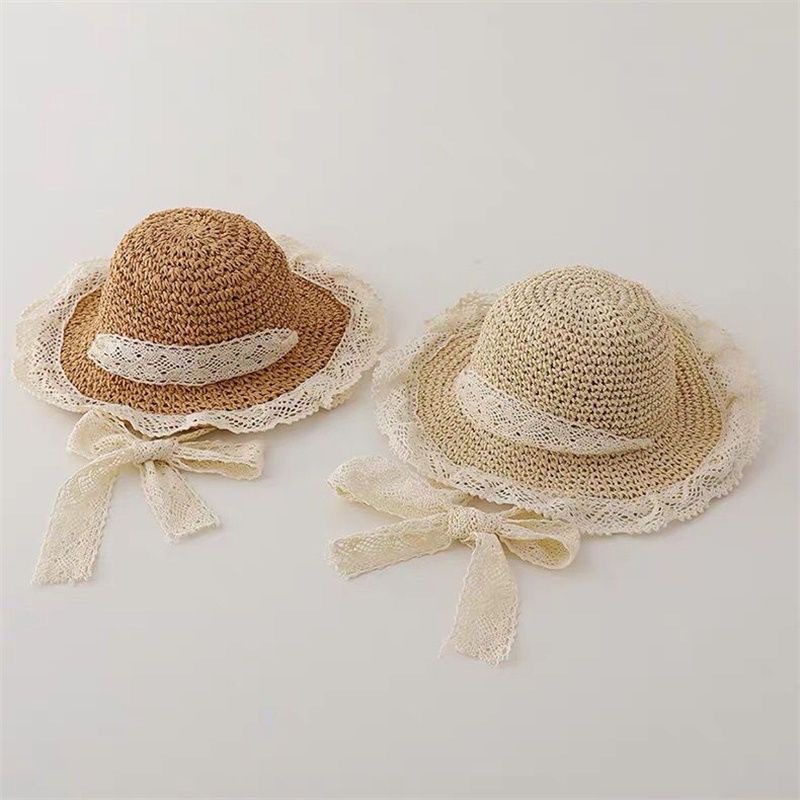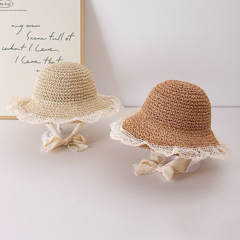 어린이 모자 밀짚 모자 소녀 여름 레이스 공주 모자 태양 모자 선 스크린 모자 달콤한 레이디 아기 태양 모자