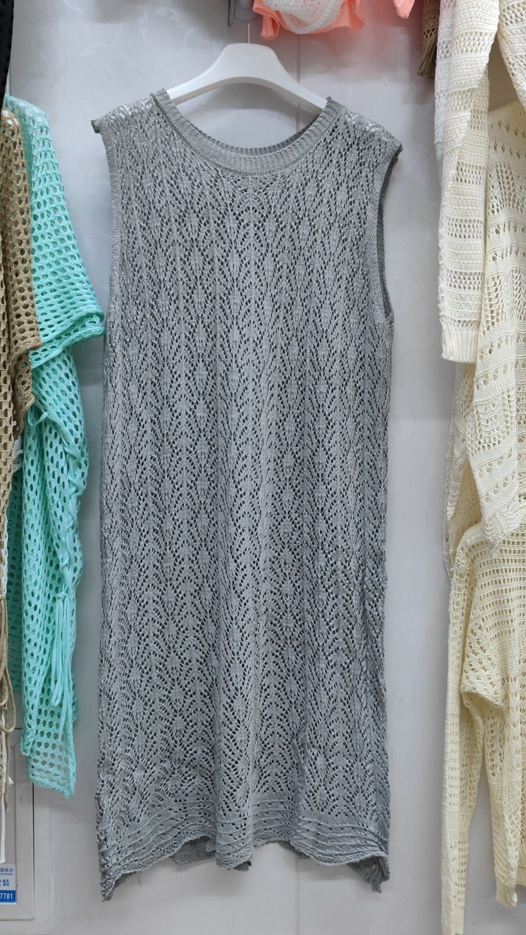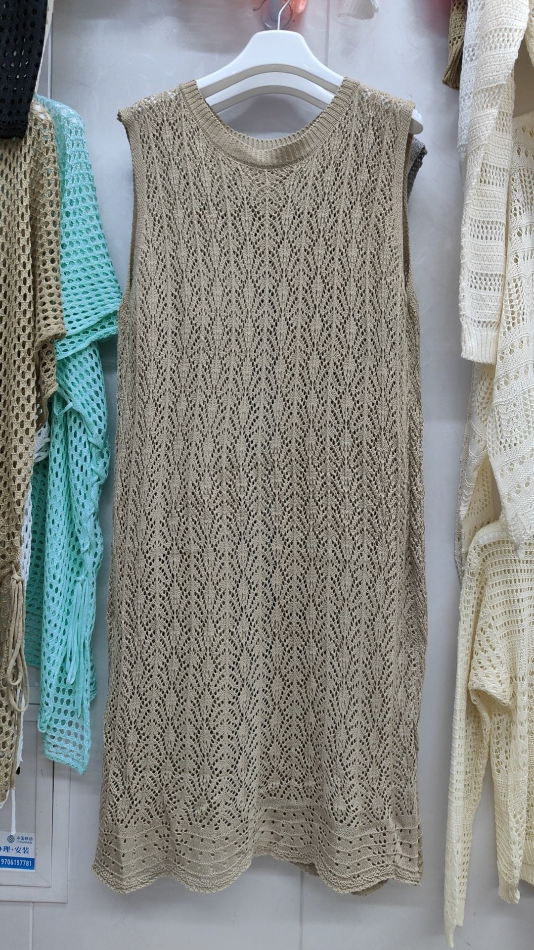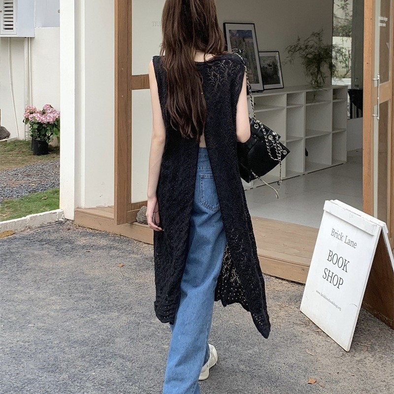 뜨거운 여자 착용 원피스 여름 프랑스 중공 베스파 스커트 니트 스웨터 여성용 얇은 외부 블라우스스토어 가기