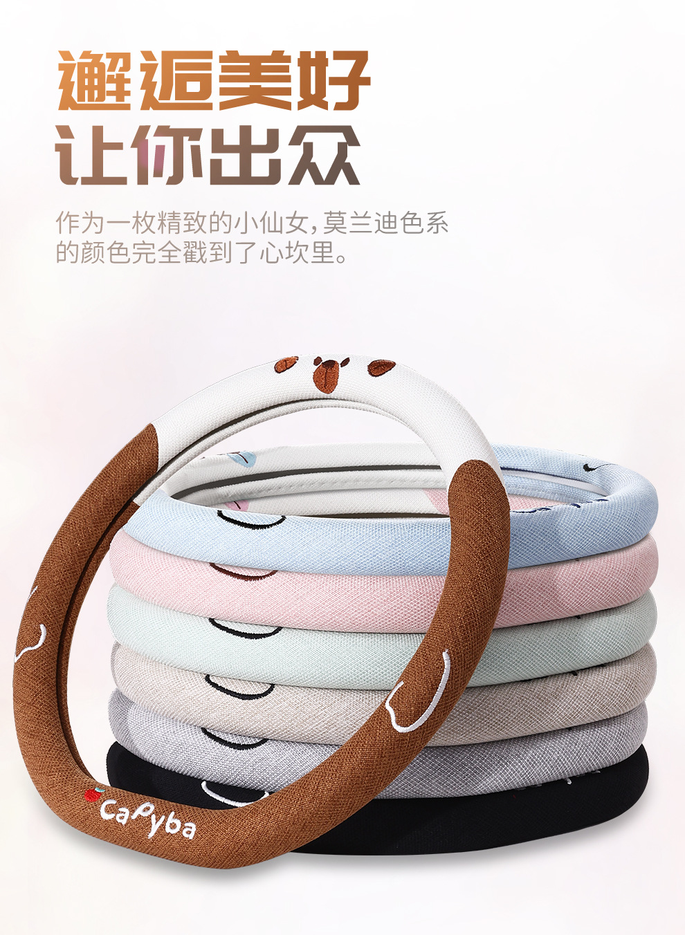 자동차 스티어링 휠 커버 2025 새로운 4 시즌 보편적 인 미끄럼 통기성 자동차 핸들 커버 만화 귀여운 인터넷 유명 인사 보호 커버