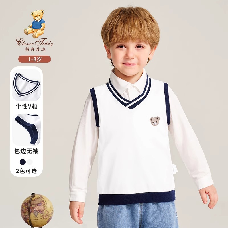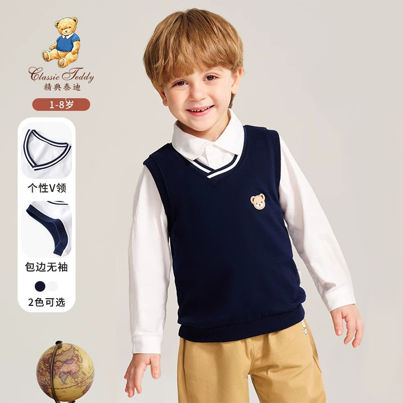클래식 테디 봄 새로운 어린이 니트 조끼 소년 영국 아카데미 스타일 민소매 조끼 여자 스웨터