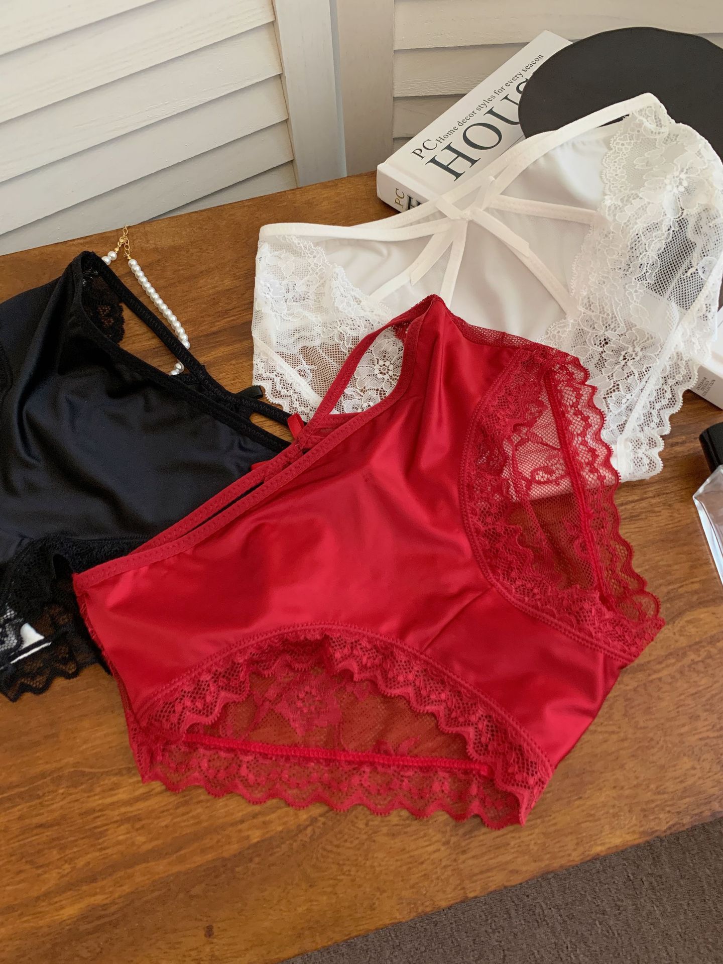 [인카운터 버닝로베] 프랑스 속옷 여성 섹시 레이스 금욕 레드 속옷 여성 숨가쁨