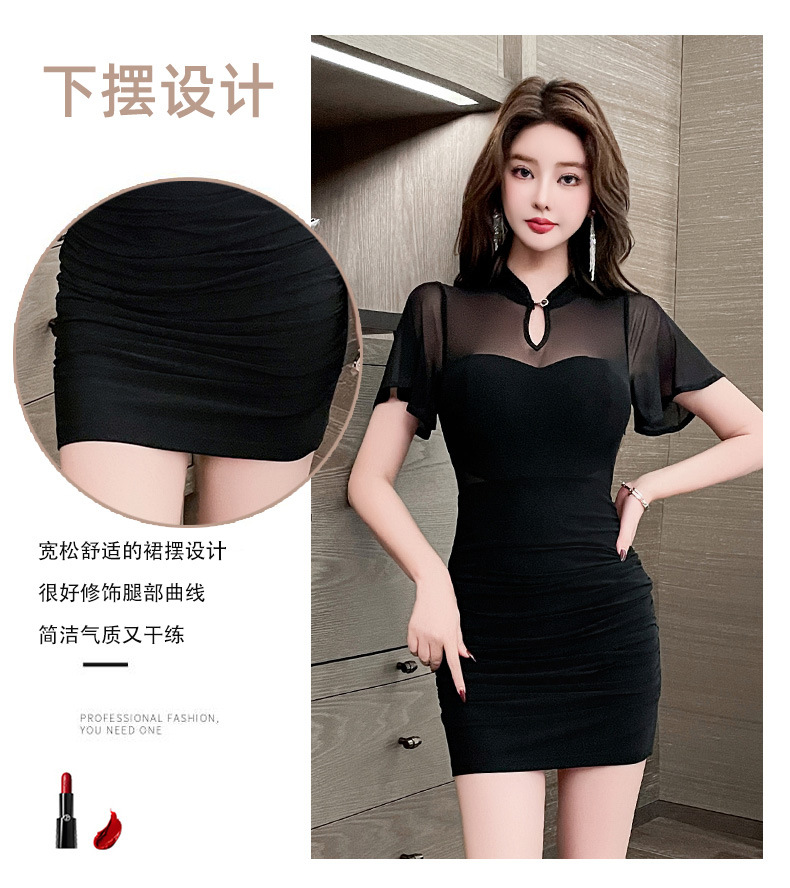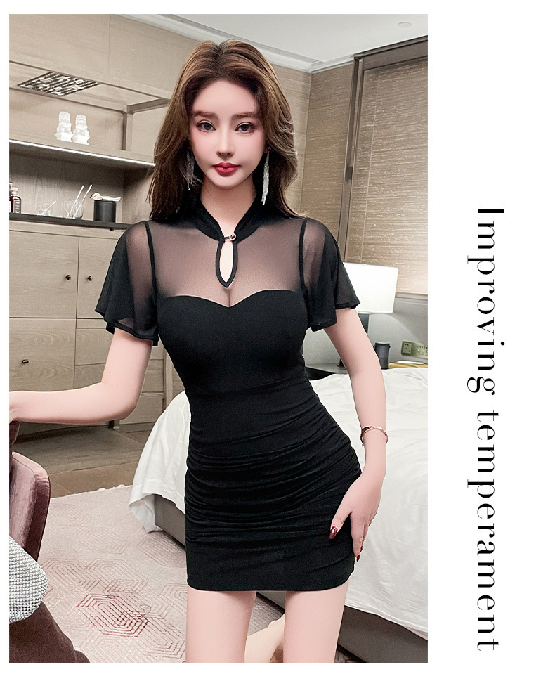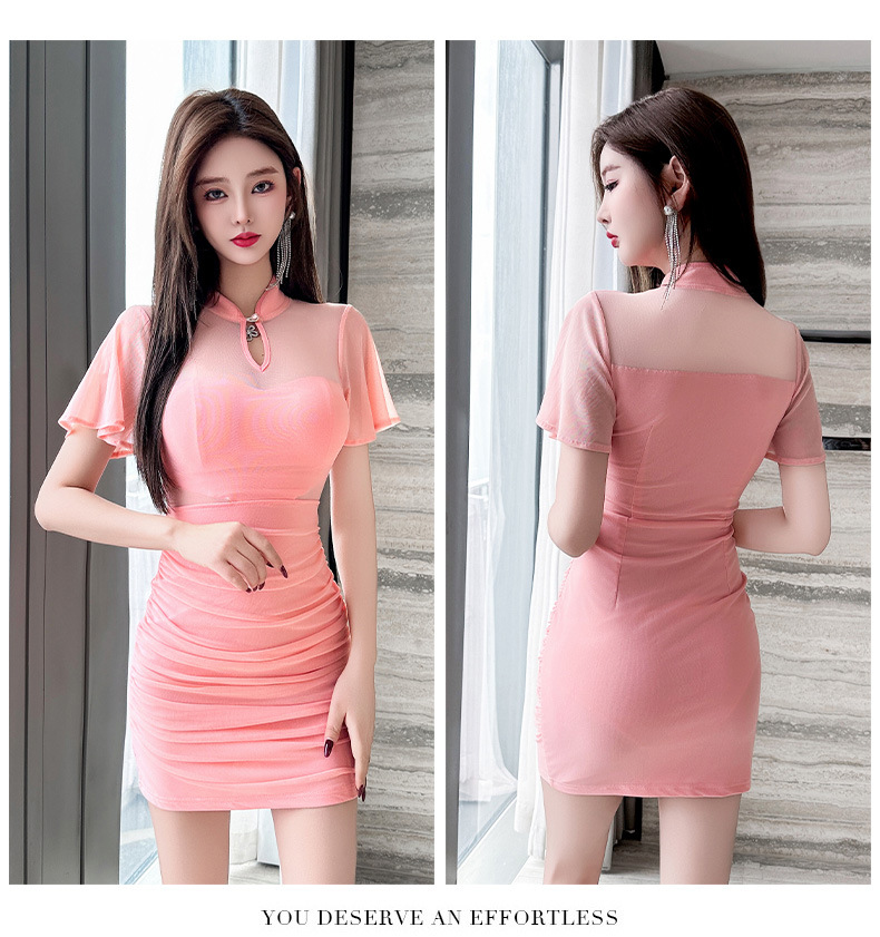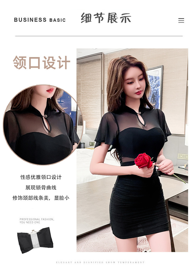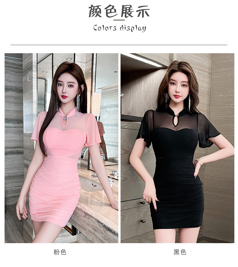수정 된 청삼 순수한 욕망 윈드 바 힙합 나이트 클럽 원피스 섹시한 여성복 슬리밍 가슴 노출 스커트 발 치료 작업복스토어 가기