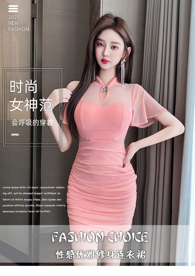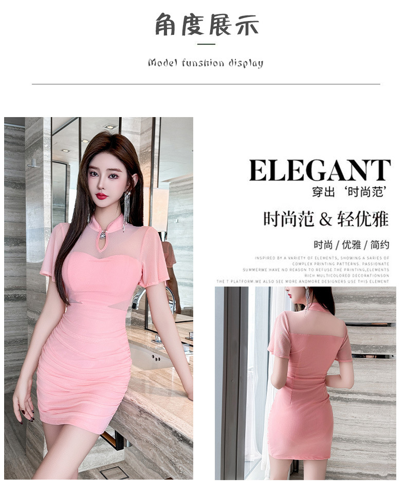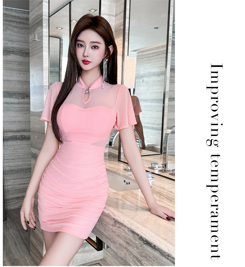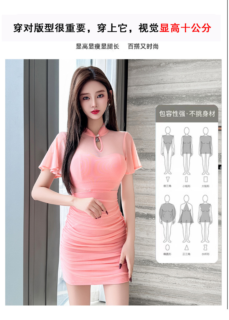 수정 된 청삼 순수한 욕망 윈드 바 힙합 나이트 클럽 원피스 섹시한 여성복 슬리밍 가슴 노출 스커트 발 치료 작업복스토어 가기