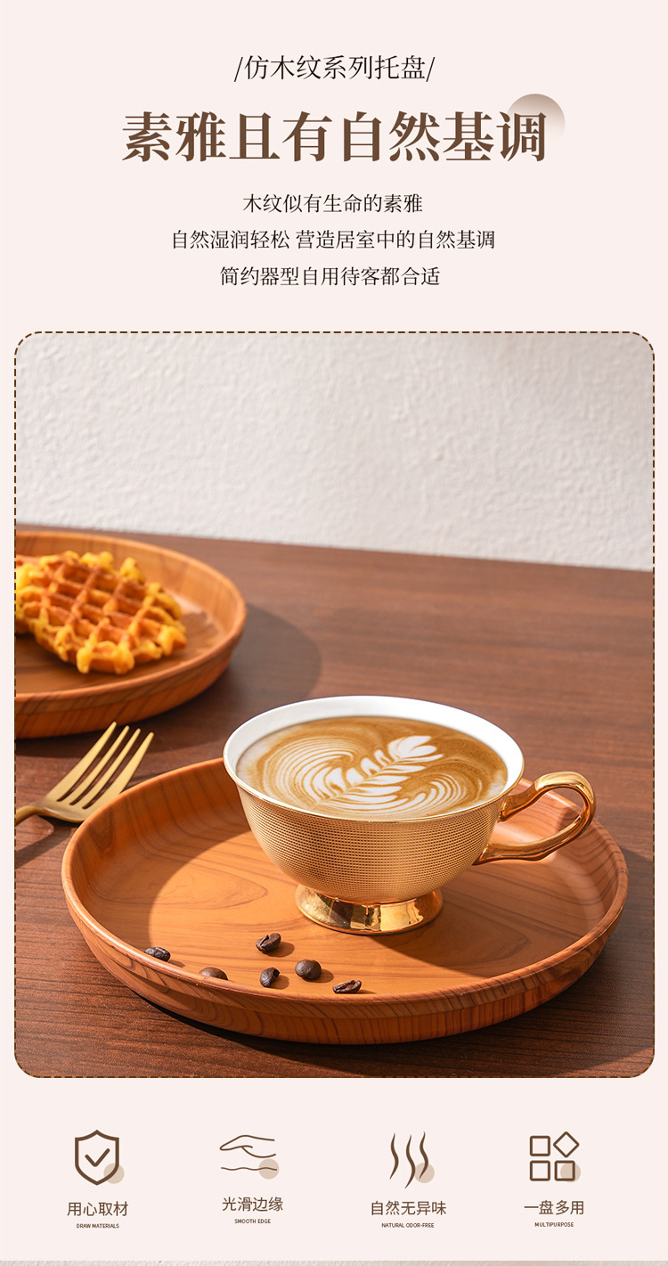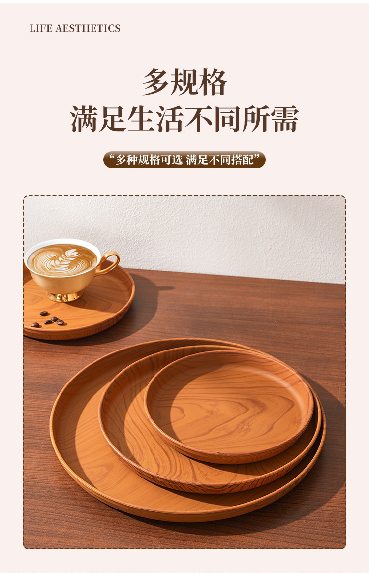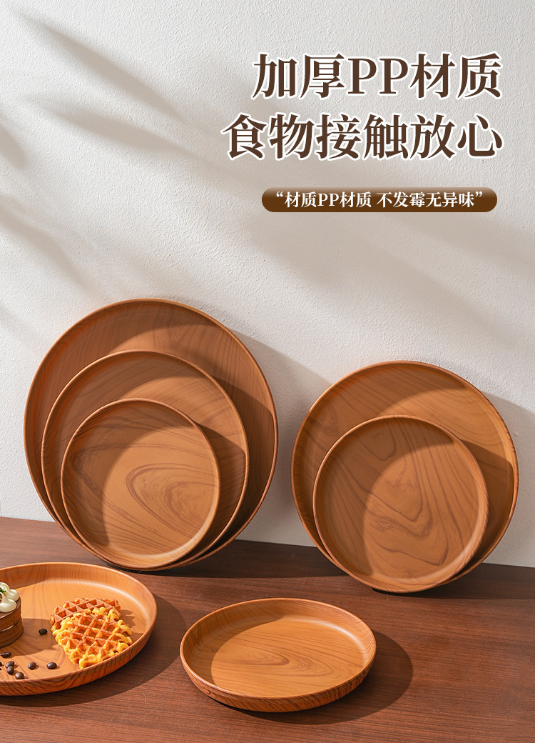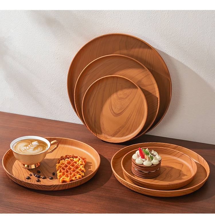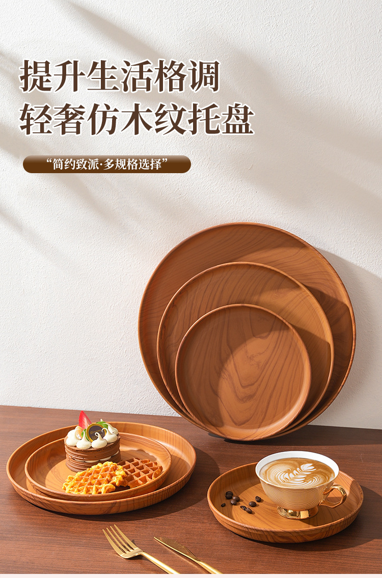 일본식 차 세트, 나무 무늬를 모방한 차 트레이, 가정용 물컵 트레이, 원형 트레이, 호텔 레스토랑 대형 트레이, 수납 트레이