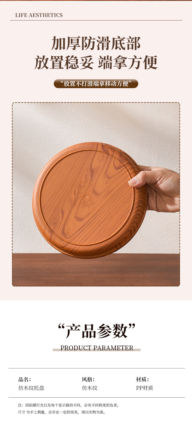 • 모조 나뭇결 대형 원형 트레이