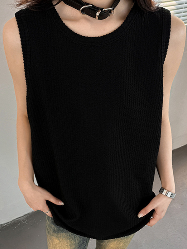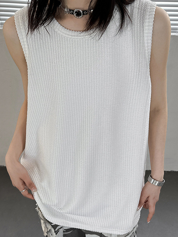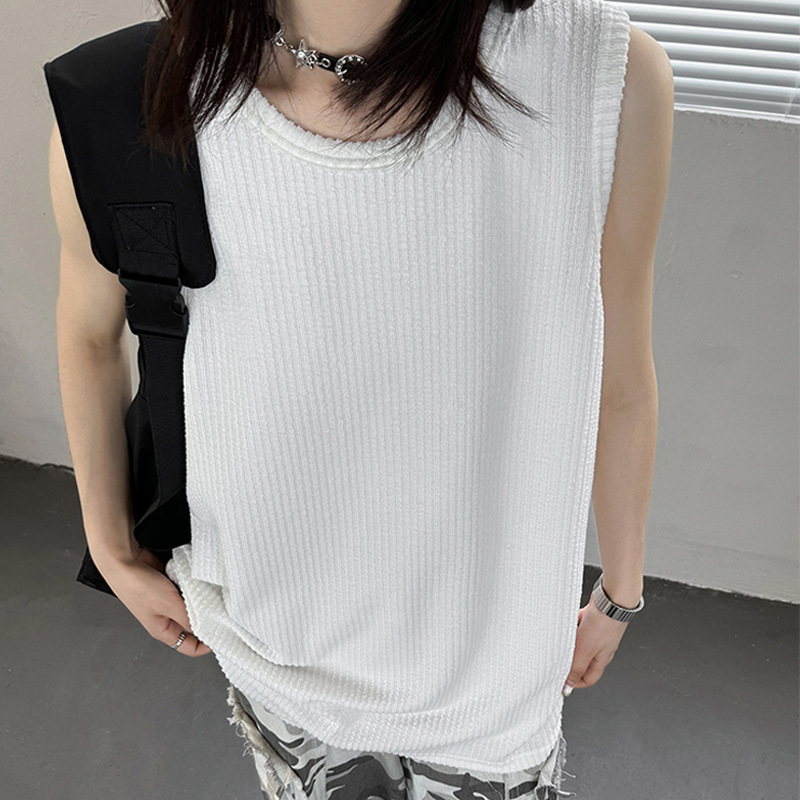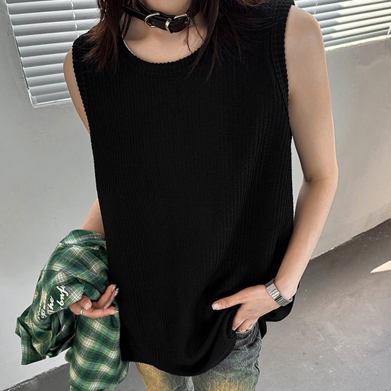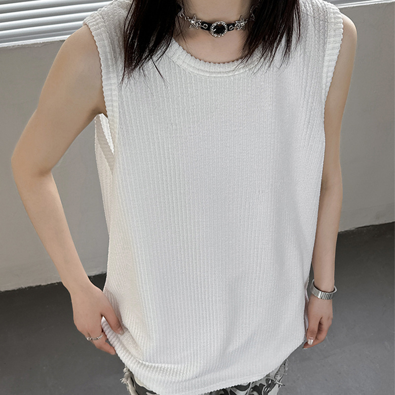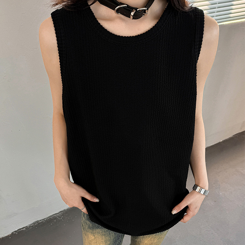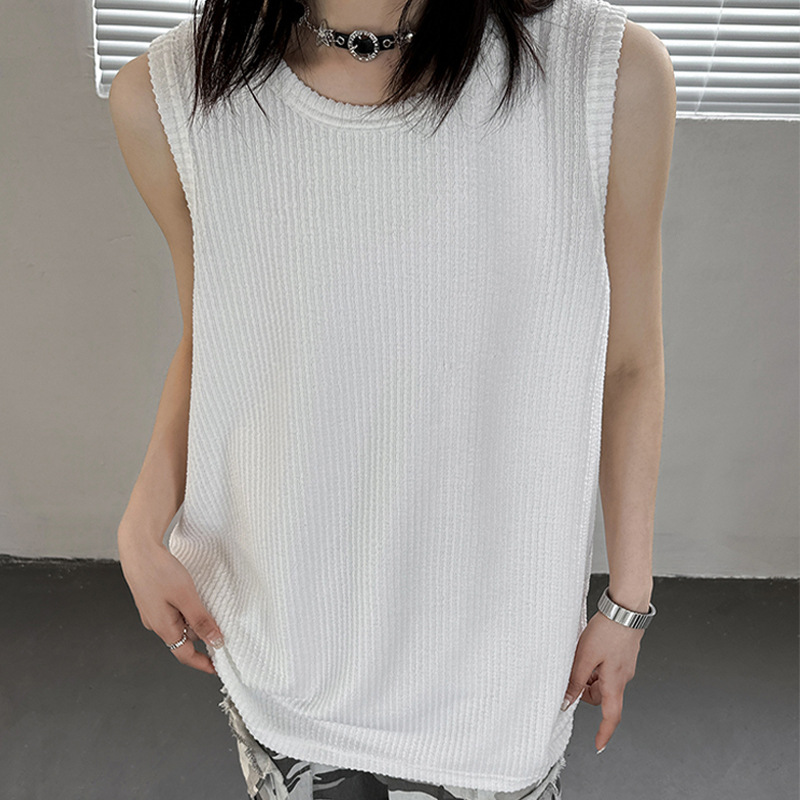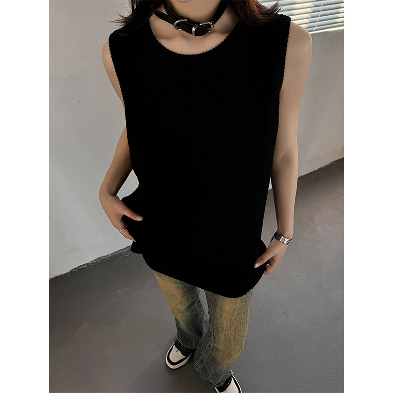 조끼 조끼 여자 2025 년 여름 새로운 유행 브랜드 올 매치 캐주얼 게으른 스타일 느슨한 구덩이 소매 어깨