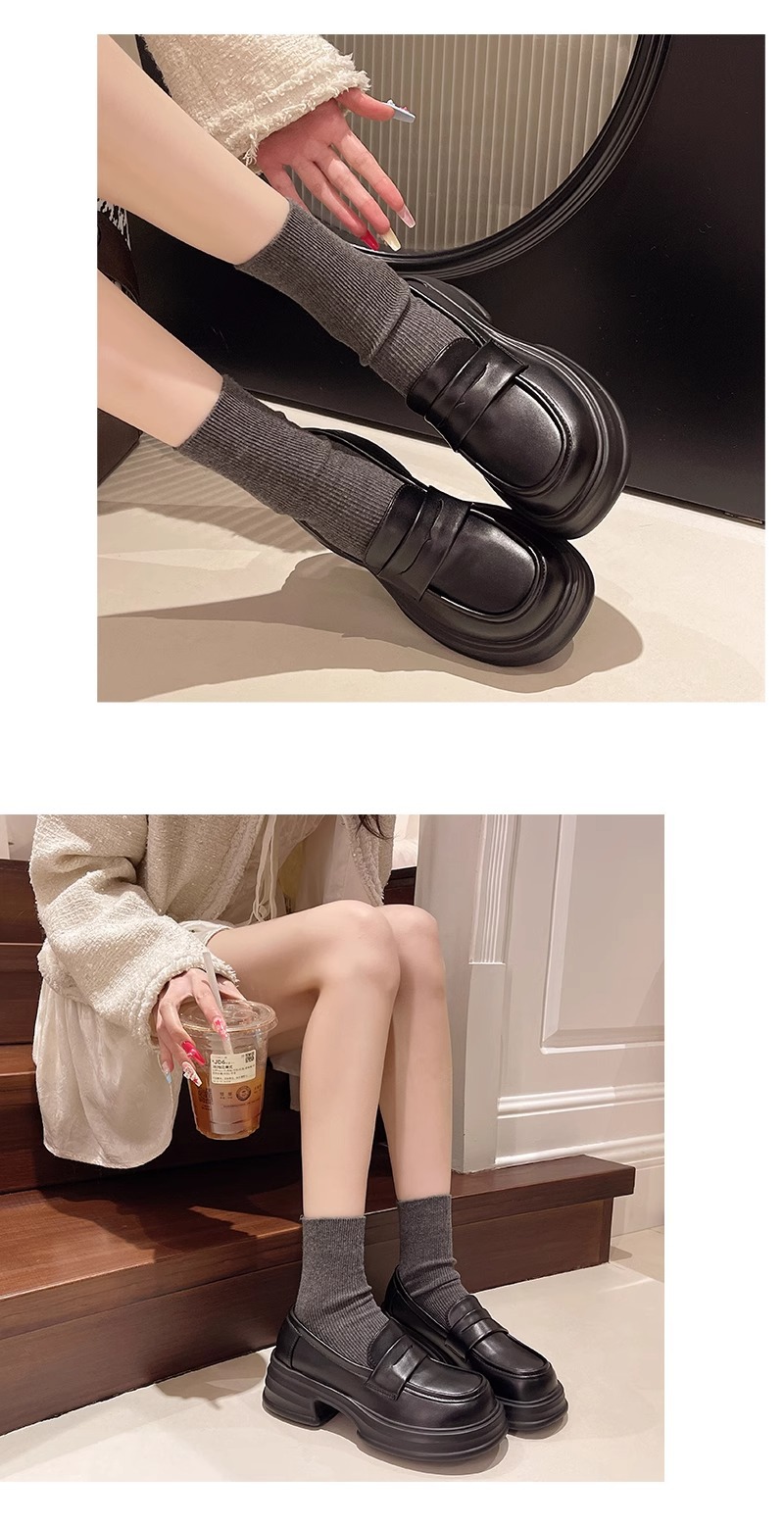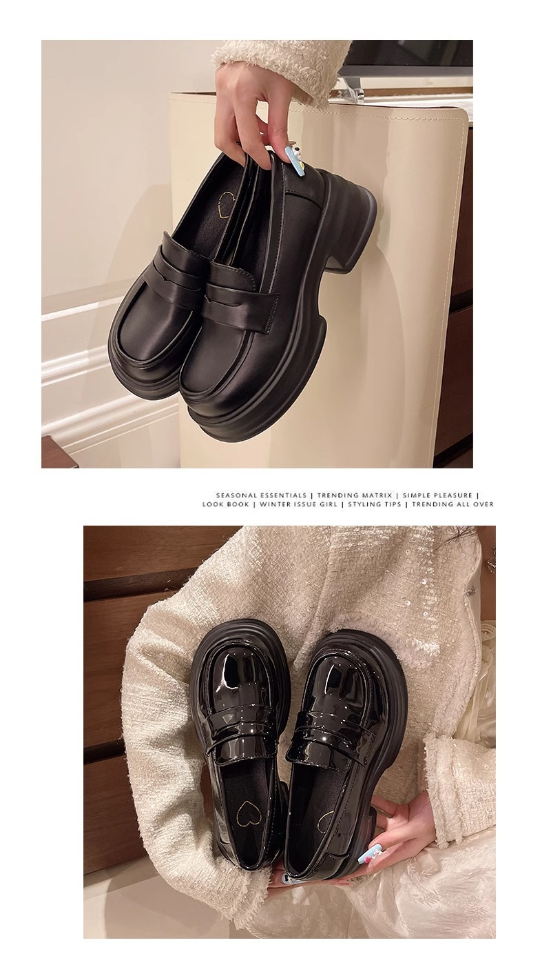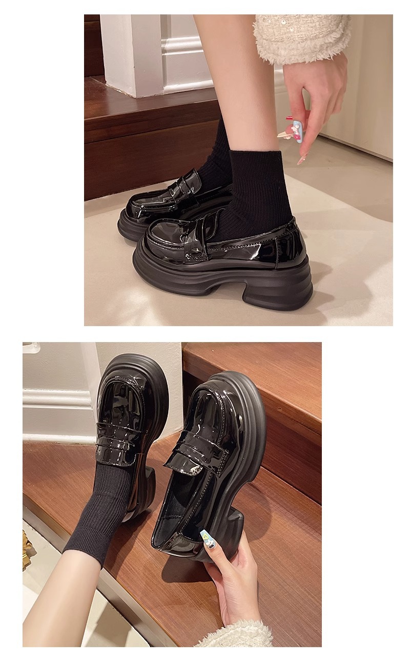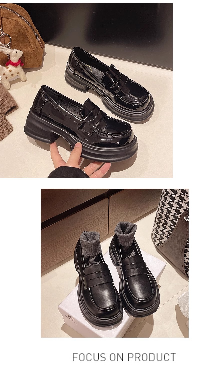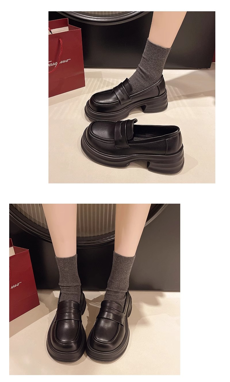 두꺼운 밑창 작은 가죽 신발 여성의 2025 년 봄과 여름 새로운 빈티지 영국 스타일은 검은 대학 jk 신발 머핀 로퍼를 증가 시켰습니다.스토어 가기