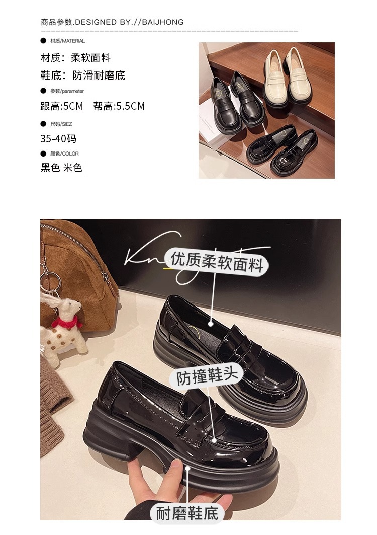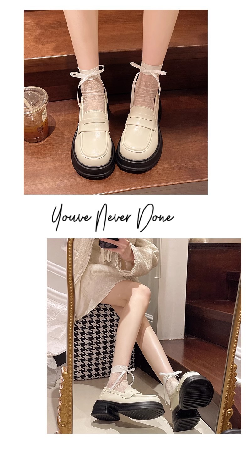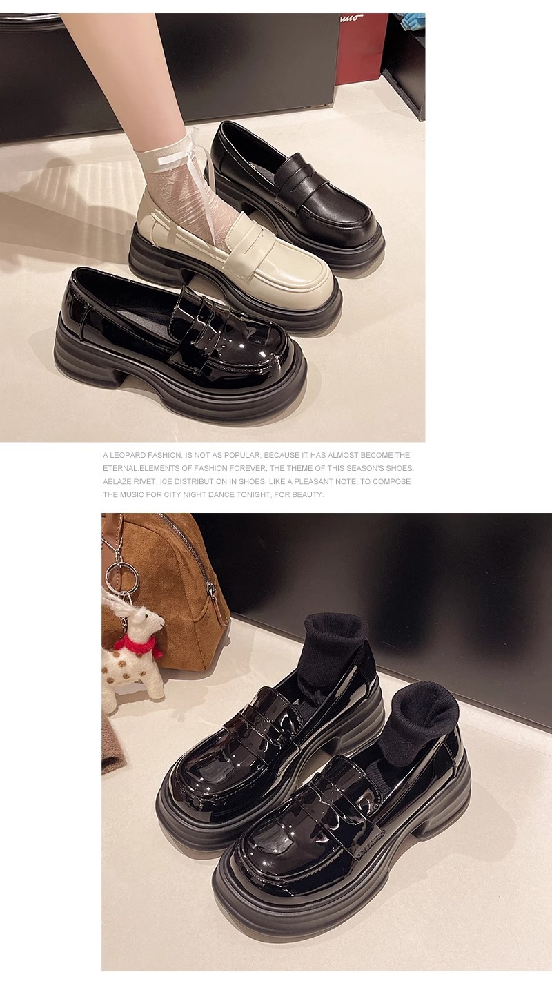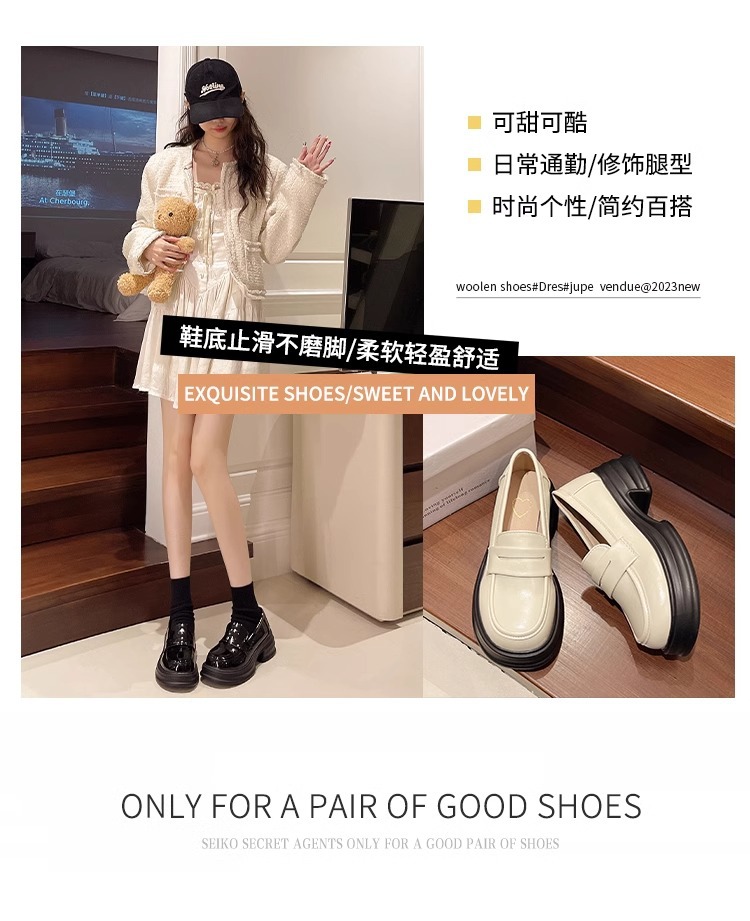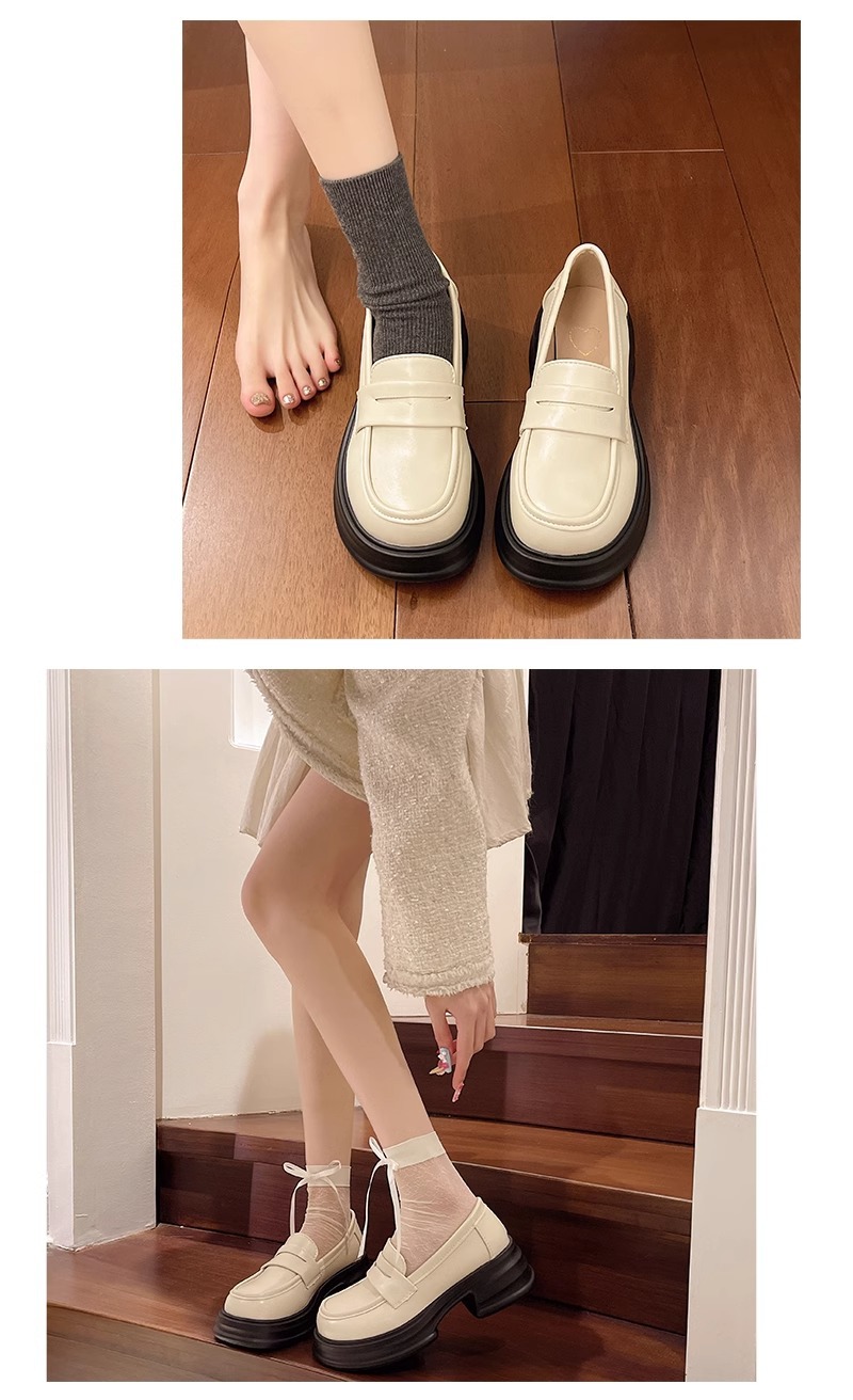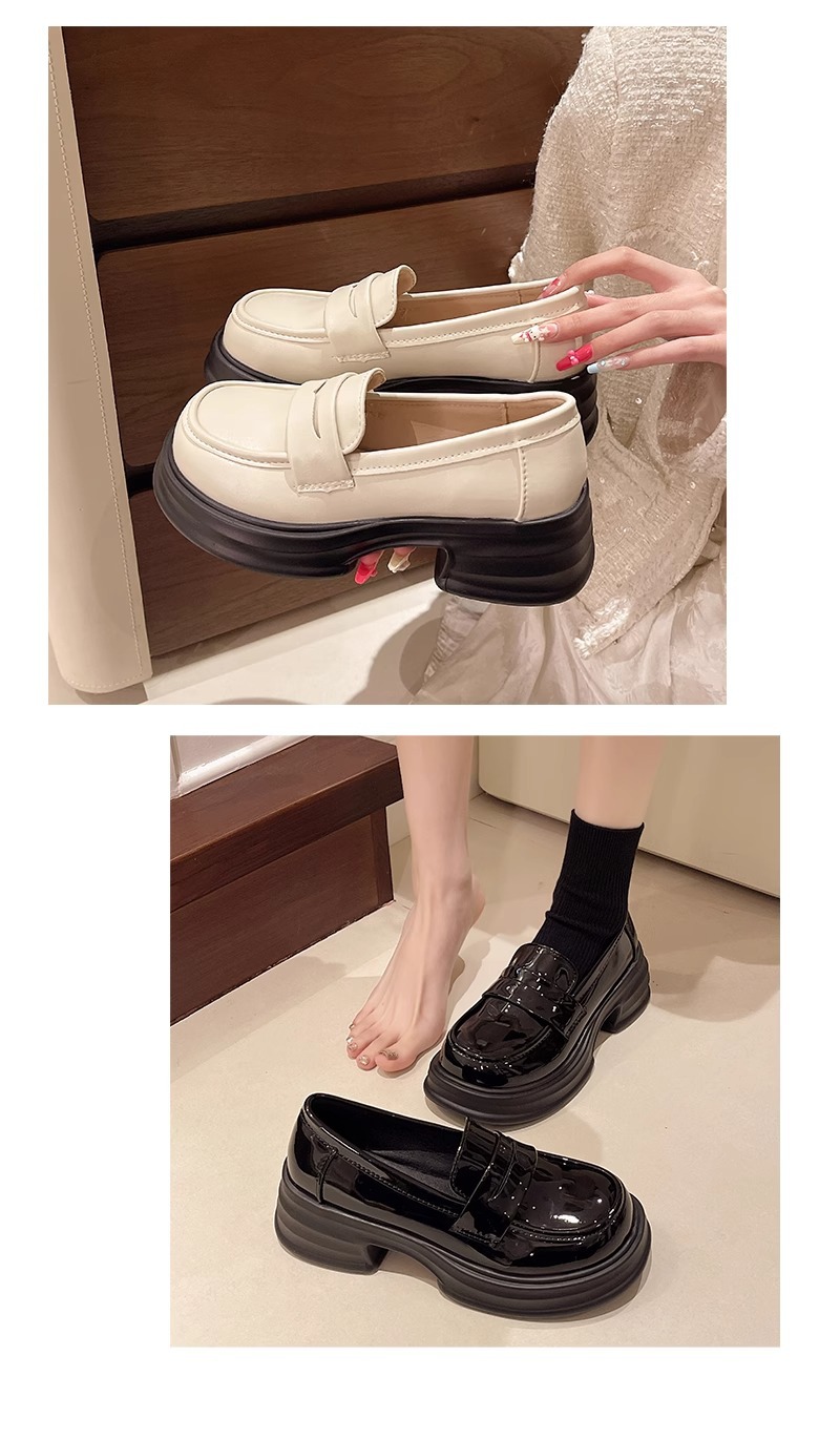 두꺼운 밑창 작은 가죽 신발 여성의 2025 년 봄과 여름 새로운 빈티지 영국 스타일은 검은 대학 jk 신발 머핀 로퍼를 증가 시켰습니다.스토어 가기