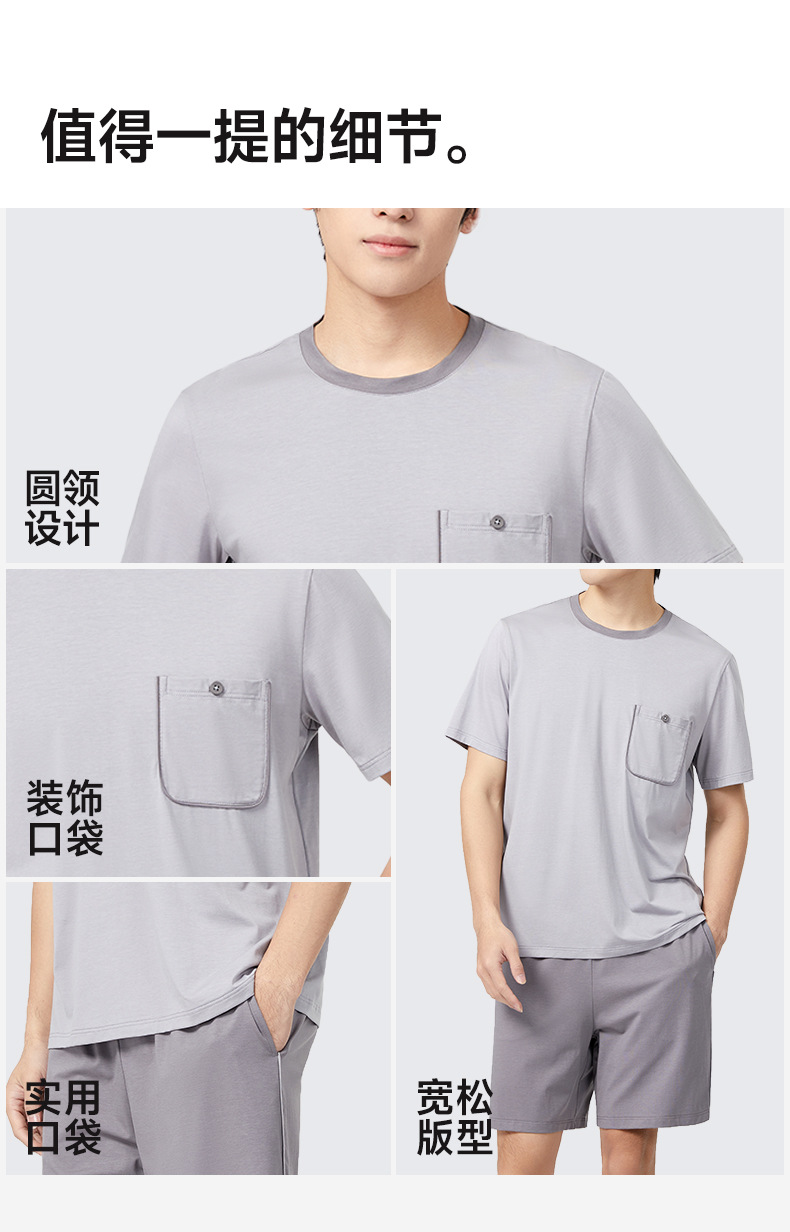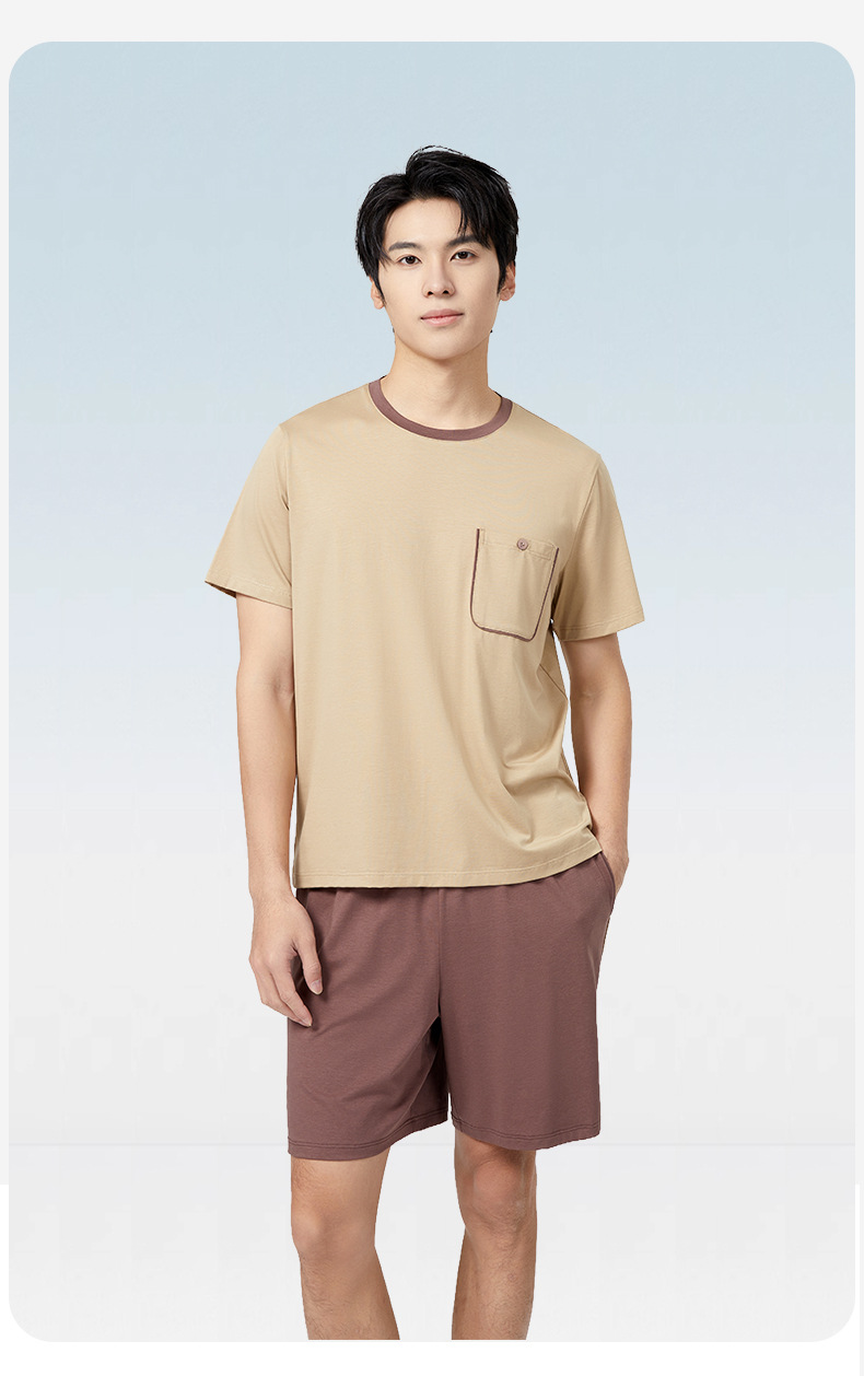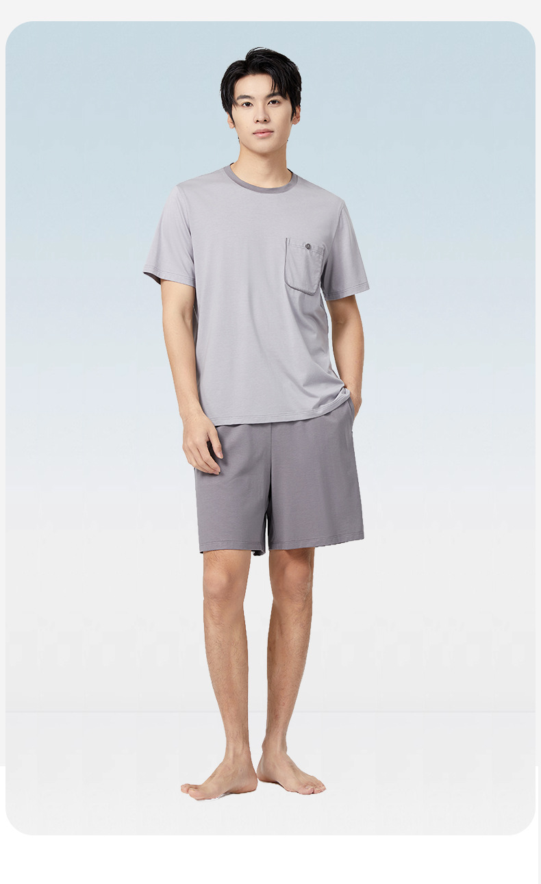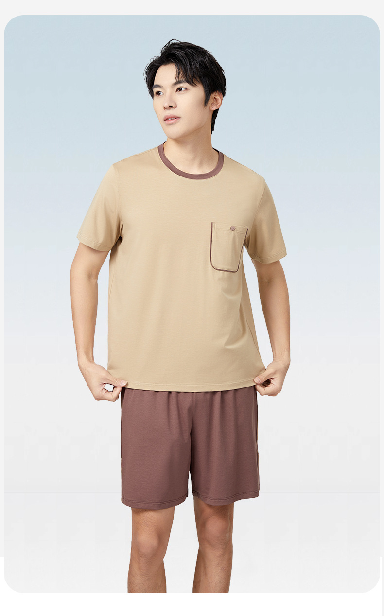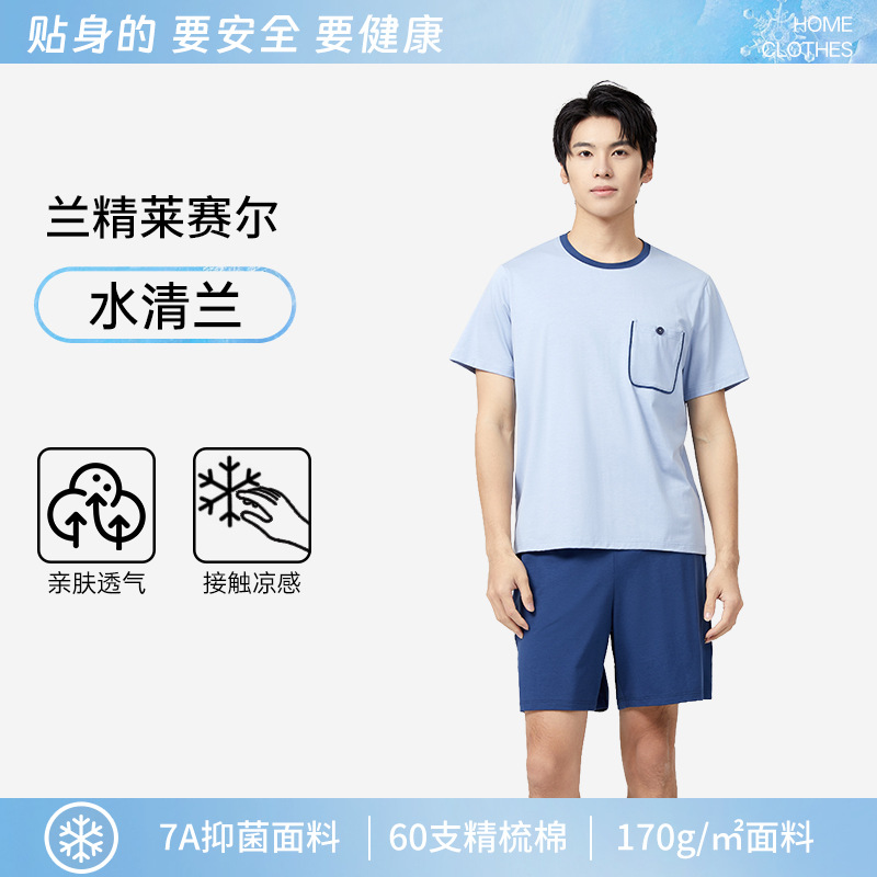 [항균 Lyocell Cotton] 남성용 잠옷 여름 세트 시원한 반팔 반바지 컬러 매칭 포켓 홈 의류스토어 가기