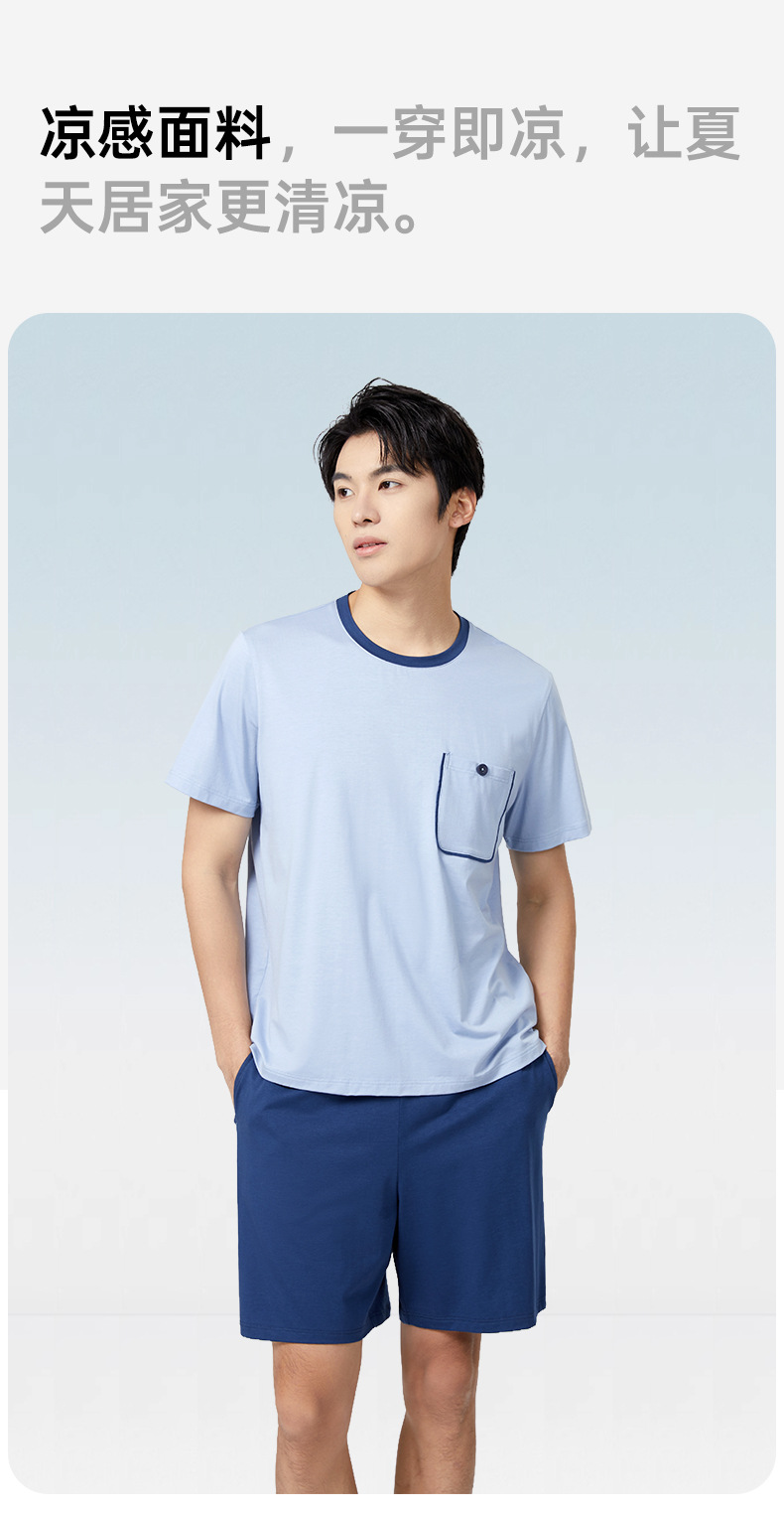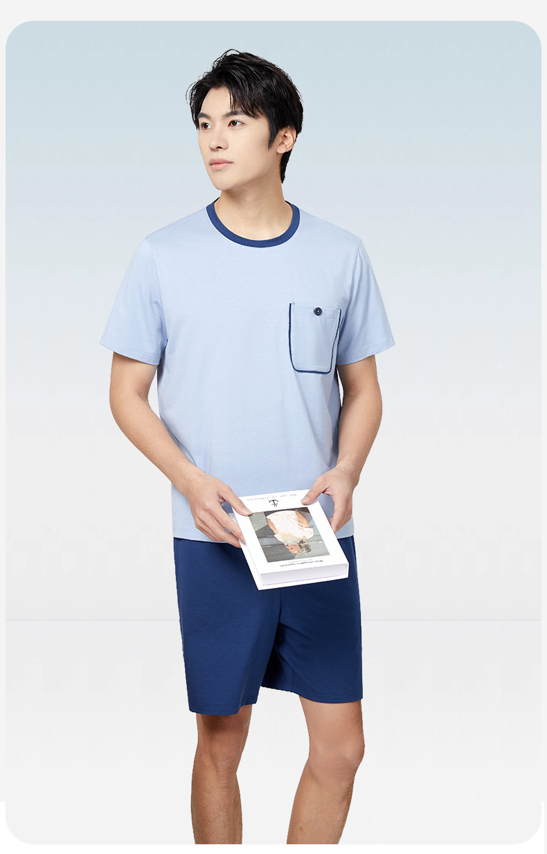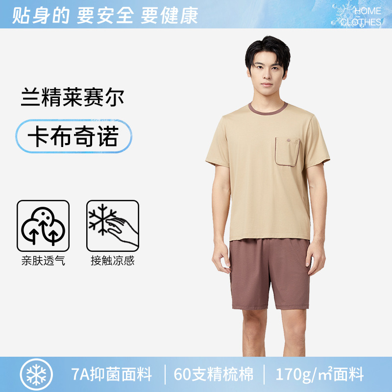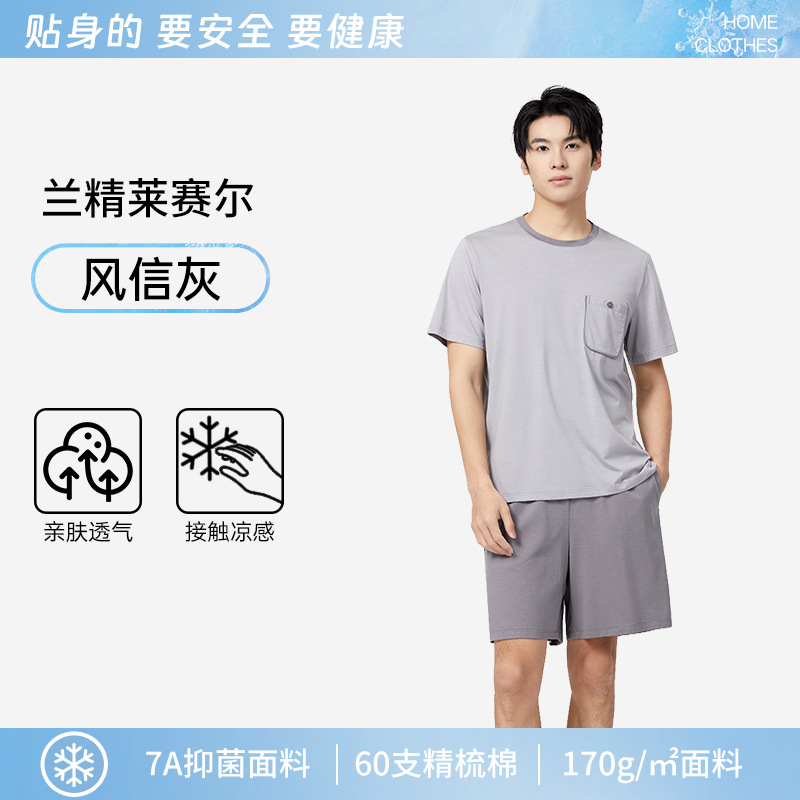 [항균 Lyocell Cotton] 남성용 잠옷 여름 세트 시원한 반팔 반바지 컬러 매칭 포켓 홈 의류스토어 가기