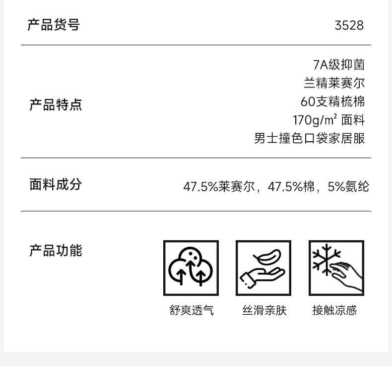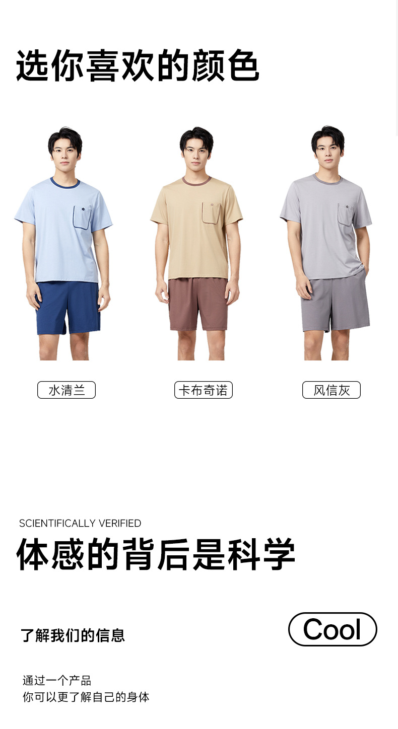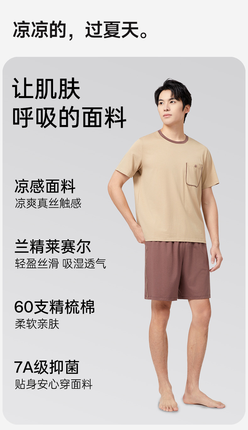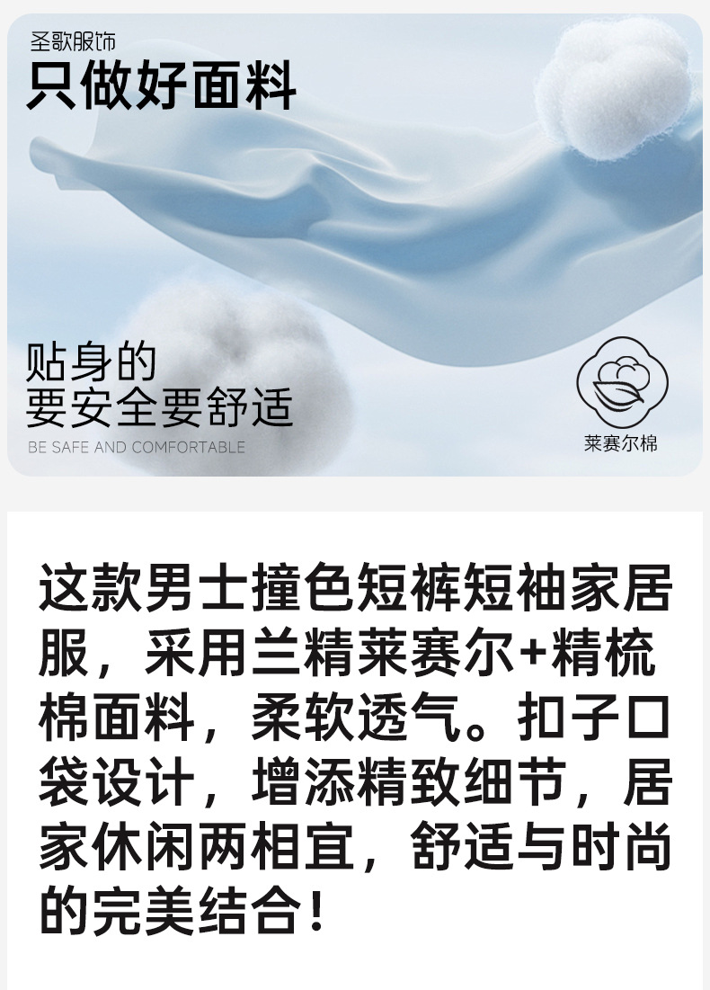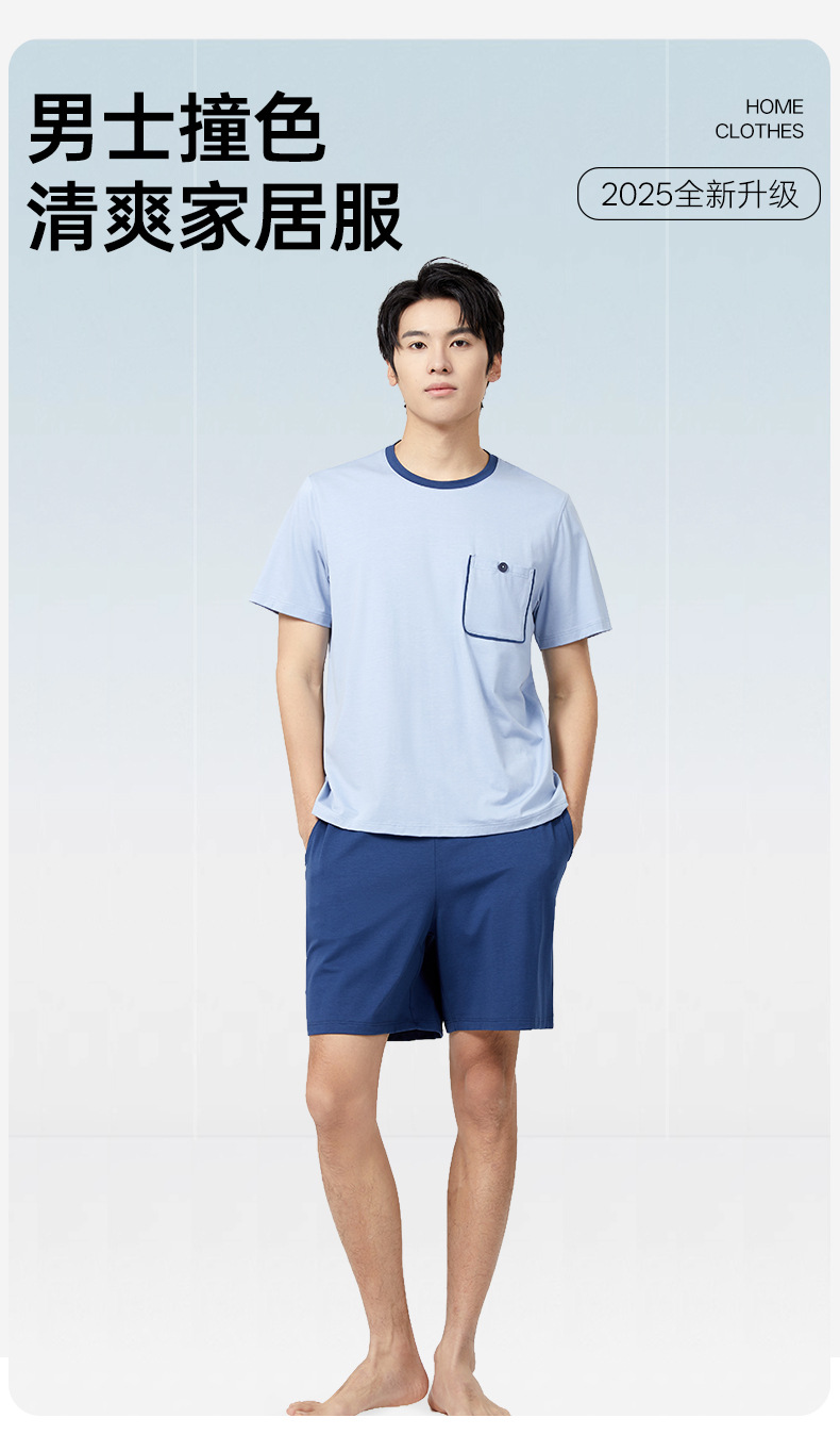 [항균 Lyocell Cotton] 남성용 잠옷 여름 세트 시원한 반팔 반바지 컬러 매칭 포켓 홈 의류스토어 가기