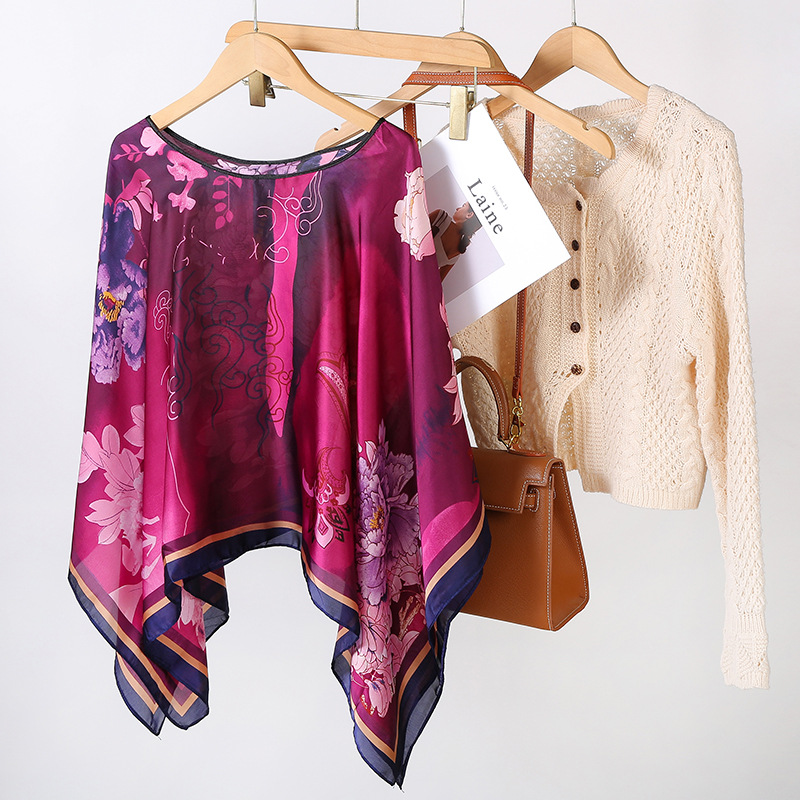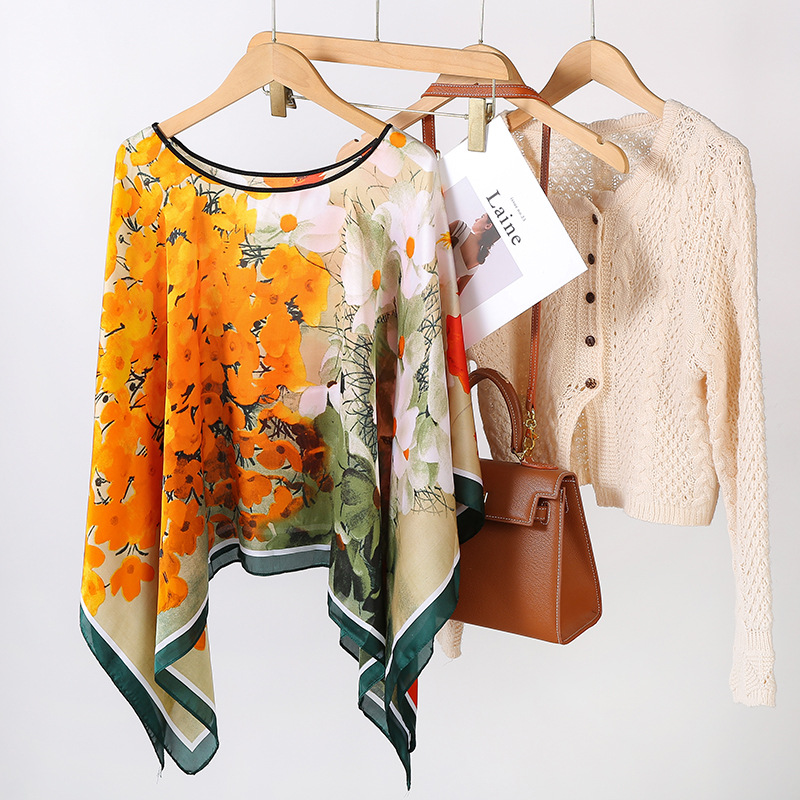 국경 간 새로운 리 브로케이드 새틴 선 스크린 스카프 여성 하이 엔드 올 매치 인쇄 풀오버 목도리 스카프 비치 타월 도매