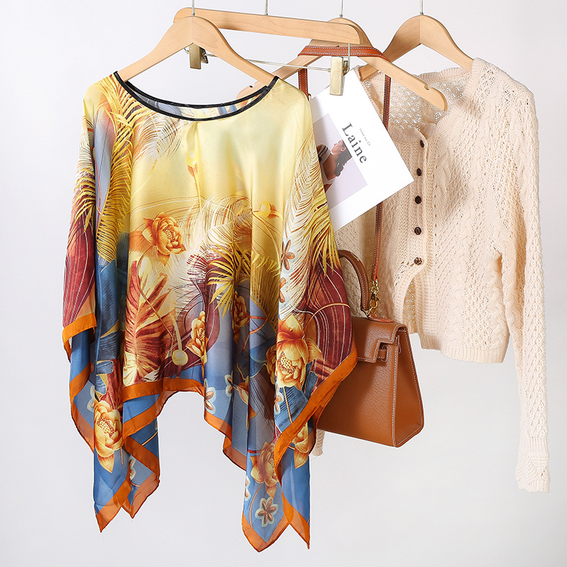 국경 간 새로운 리 브로케이드 새틴 선 스크린 스카프 여성 하이 엔드 올 매치 인쇄 풀오버 목도리 스카프 비치 타월 도매스토어 가기