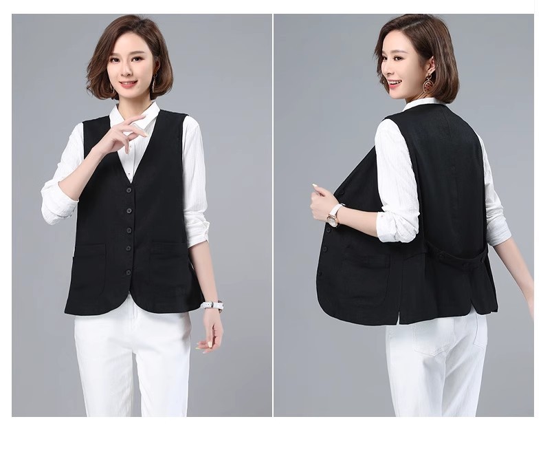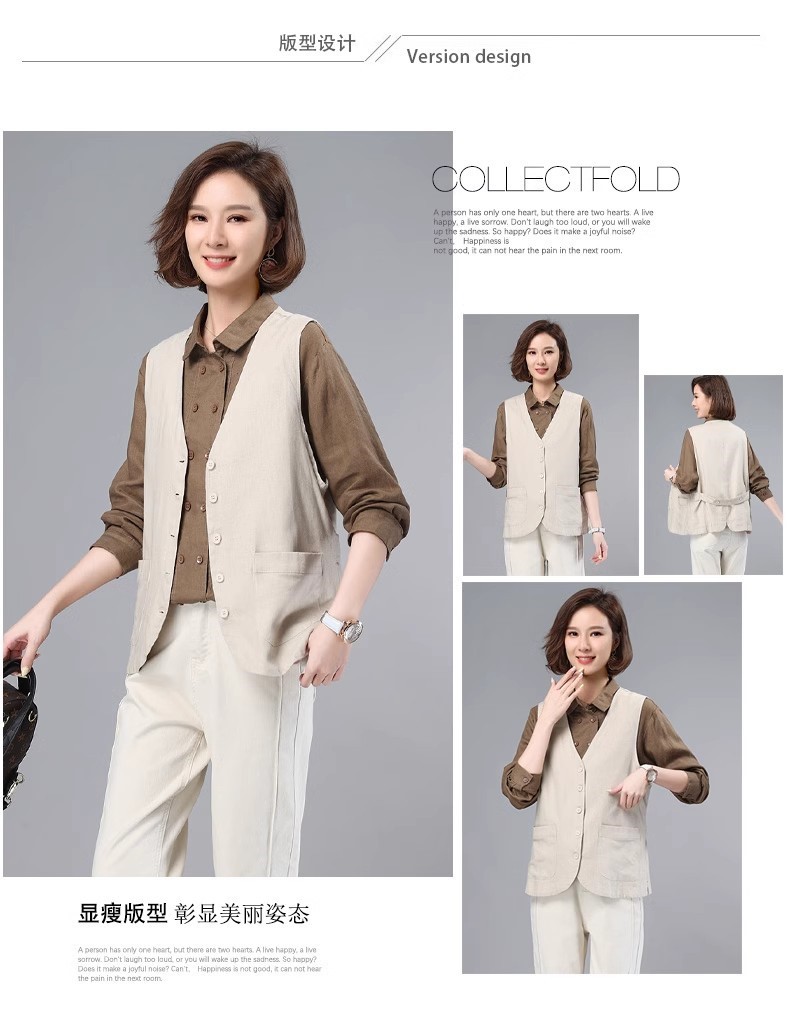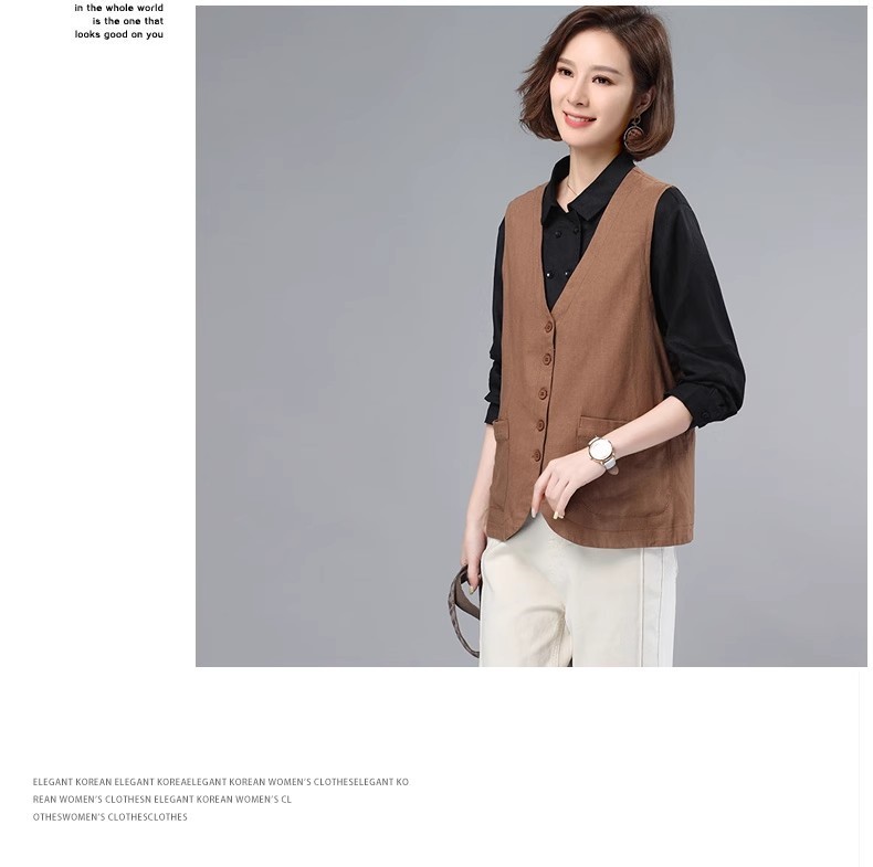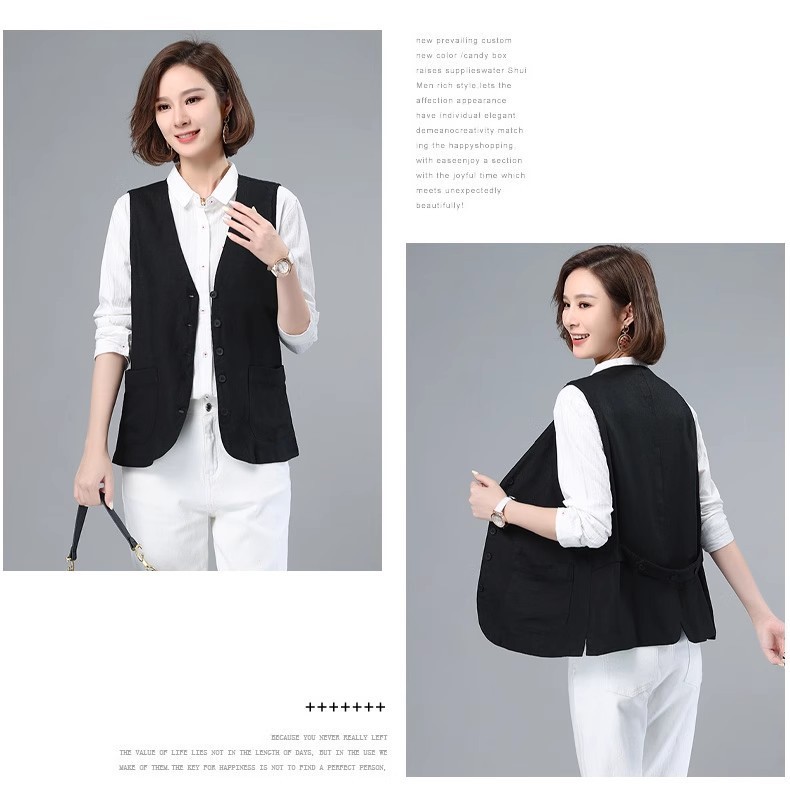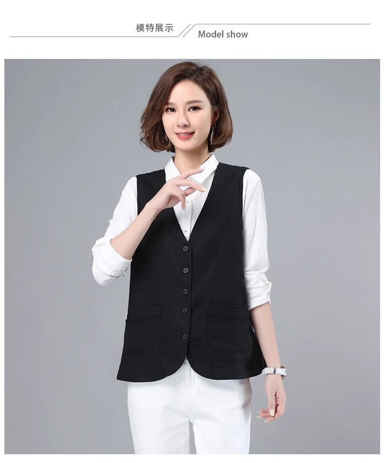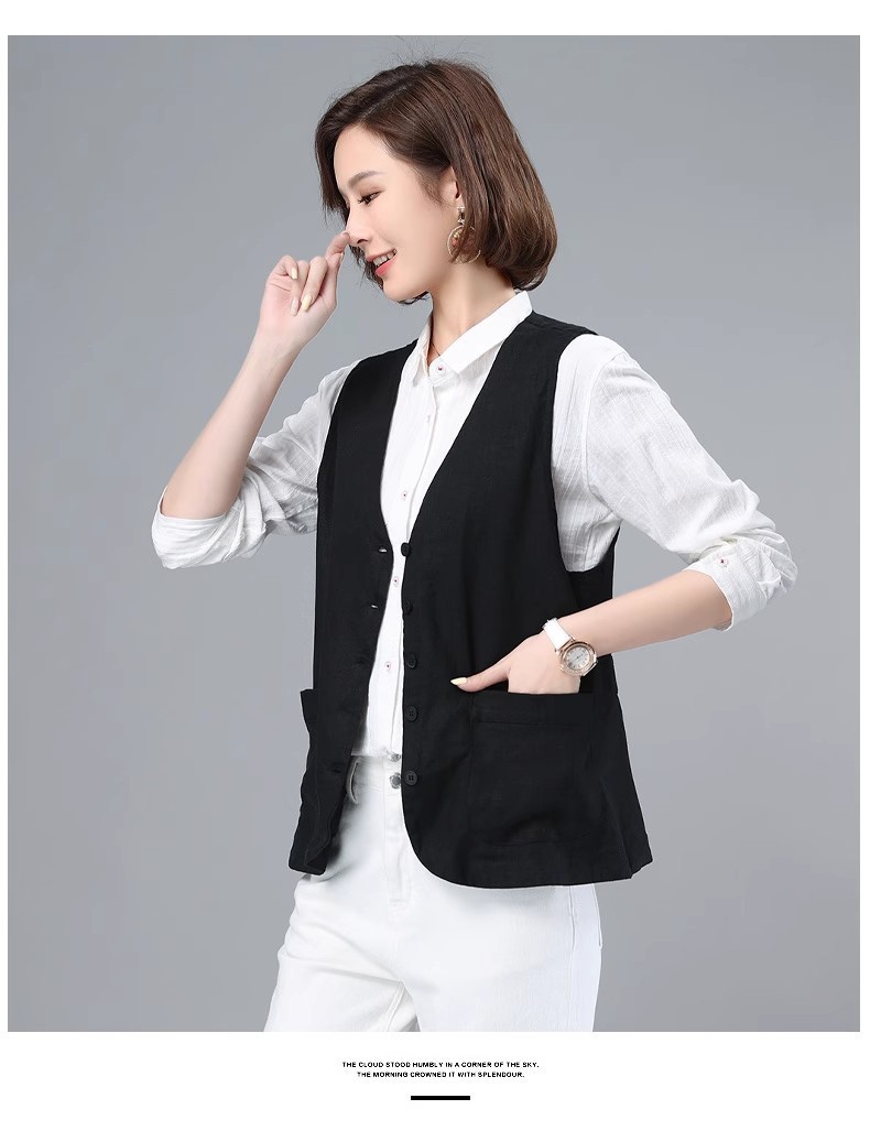 공식 피겨 코튼 및 리넨 조끼 여성 쇼트 2025 봄 여름 한국 스타일 중년 어머니 레트로 웨이스트 코트 외부 얇은 조끼 착용