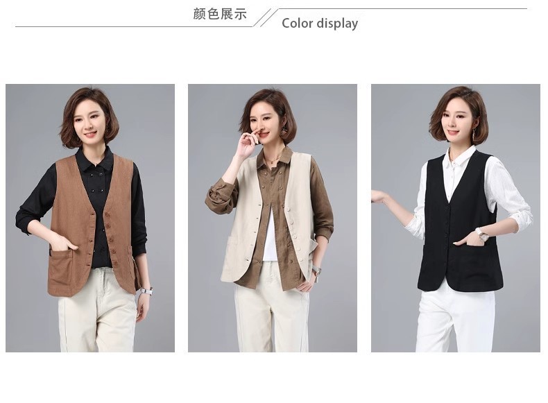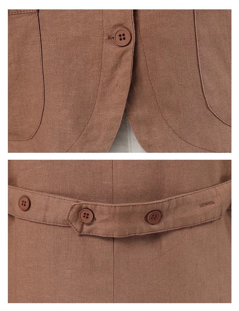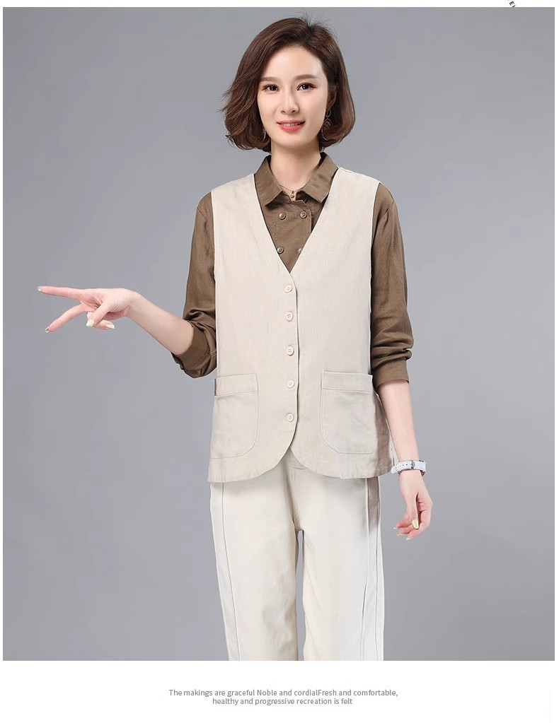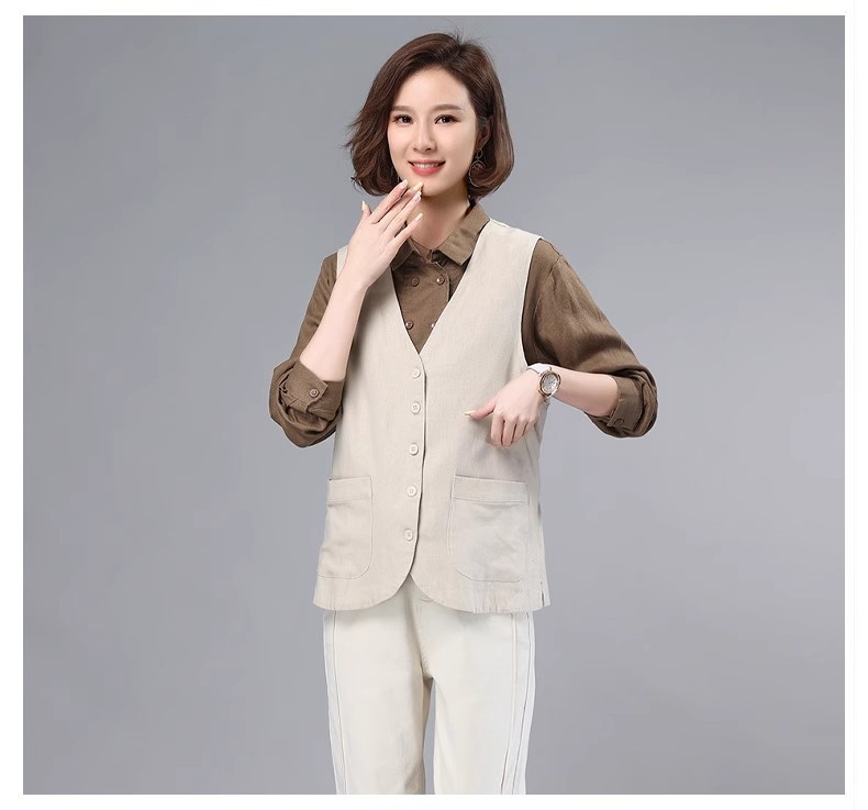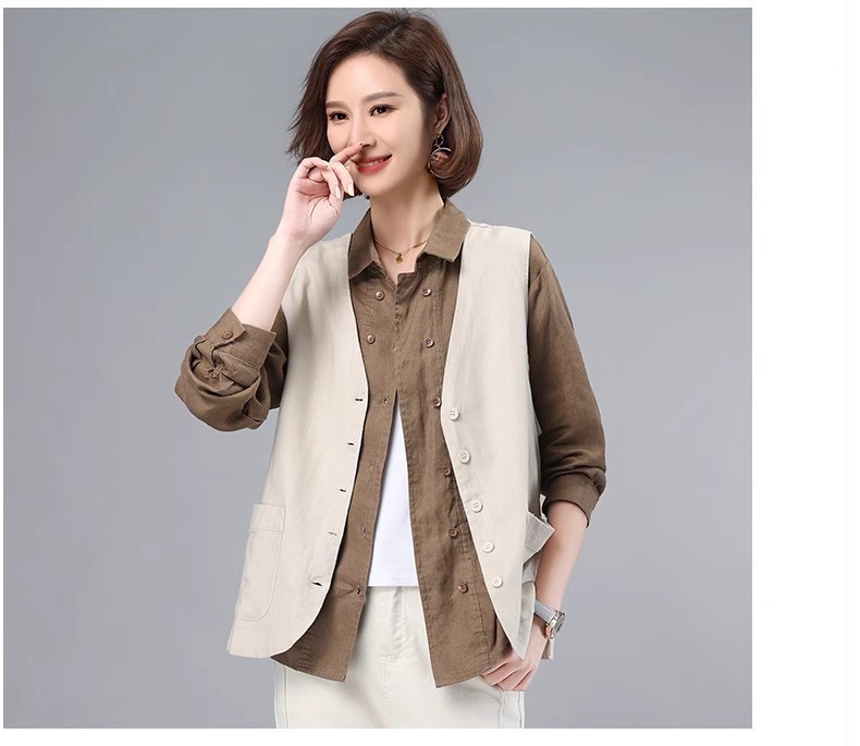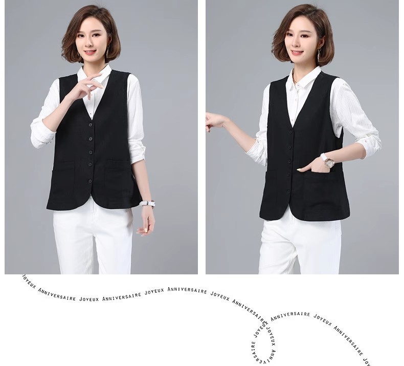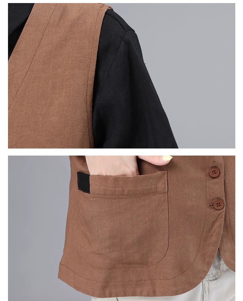 공식 피겨 코튼 및 리넨 조끼 여성 쇼트 2025 봄 여름 한국 스타일 중년 어머니 레트로 웨이스트 코트 외부 얇은 조끼 착용