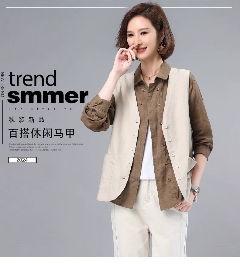 공식 피겨 코튼 및 리넨 조끼 여성 쇼트 2025 봄 여름 한국 스타일 중년 어머니 레트로 웨이스트 코트 외부 얇은 조끼 착용스토어 가기