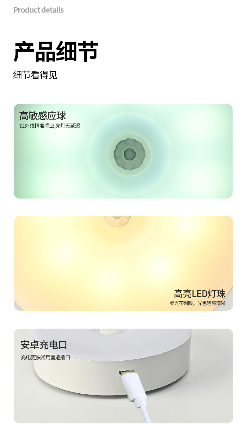 충전식 인체감지 야간등 침대 옆 스마트 센서등 옷장 복도 야간등