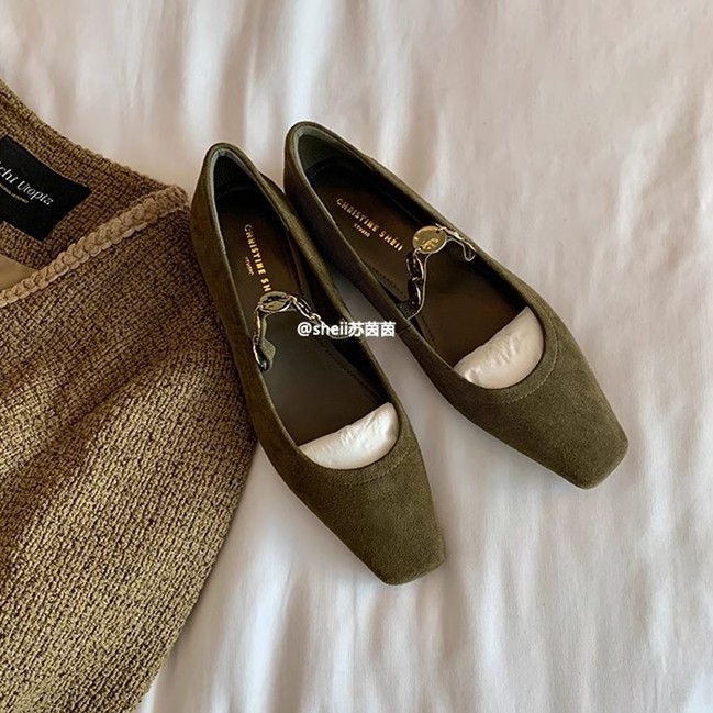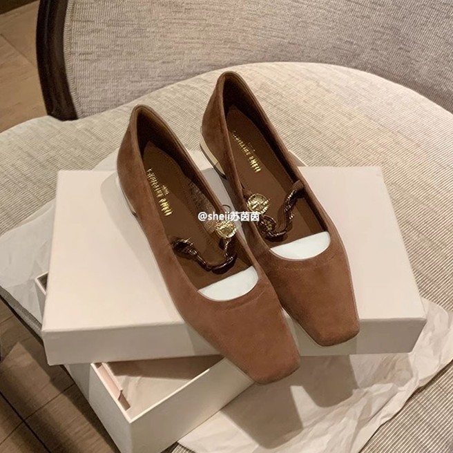 Su Yinyin의 같은 스타일 Jiangnan 소녀 ~ 가을 광장 헤드 작은 금화 플랫 바닥 메리 제인 싱글 신발 여성 Duobao 신발 통근