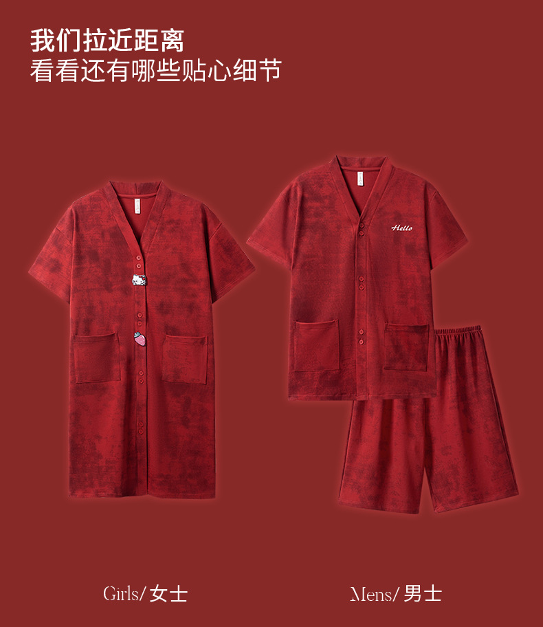 빨간 커플 잠옷 여름 결혼식 신혼 여성 반팔 면화 잠옷 얇은 남자 생활 년 홈 의류 세트스토어 가기