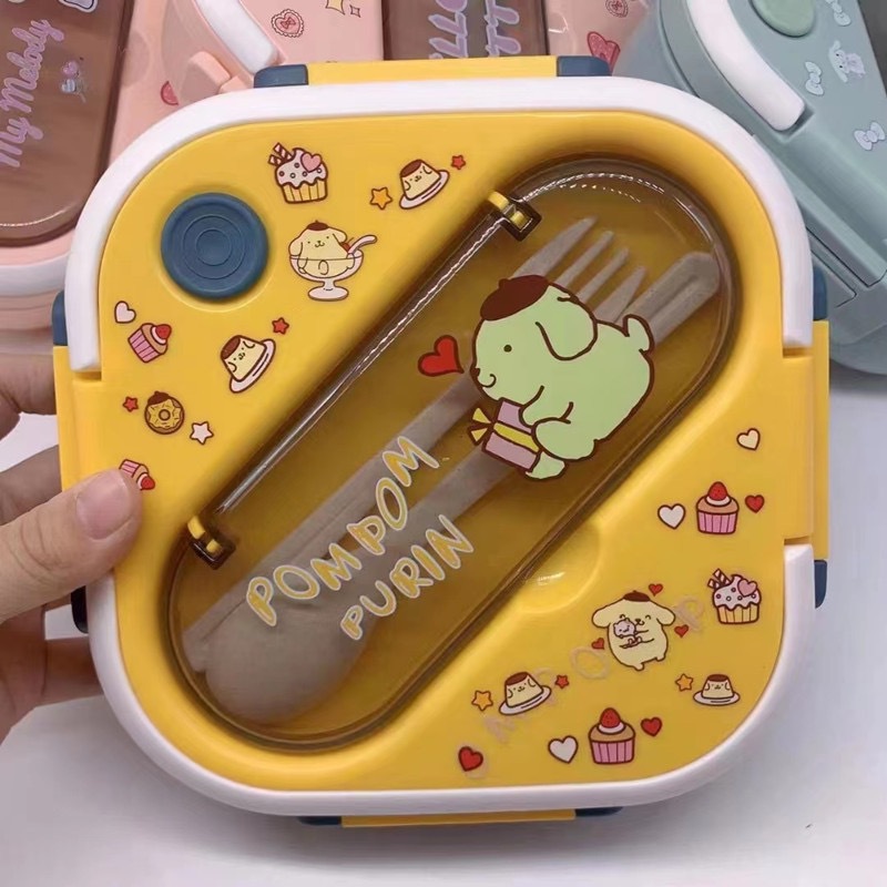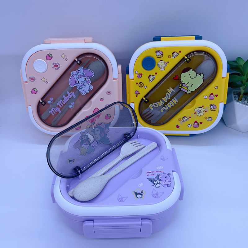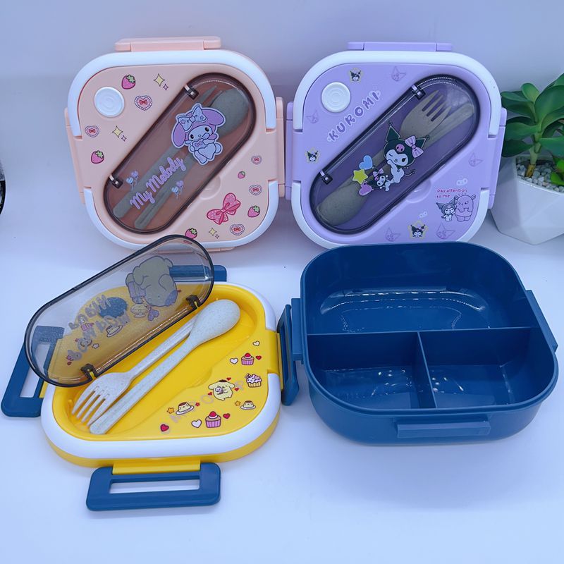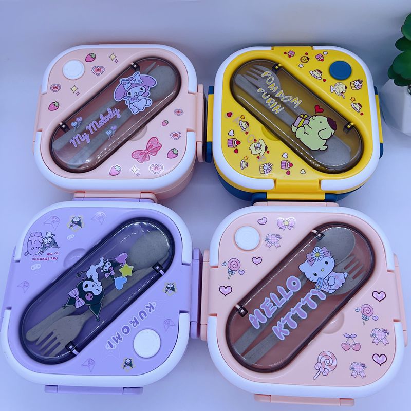 새로운 만화 광장 휴대용 도시락 상자 식기 분할 도시락 학생 휴대용 대용량 패스트 푸드 상자와 귀여운